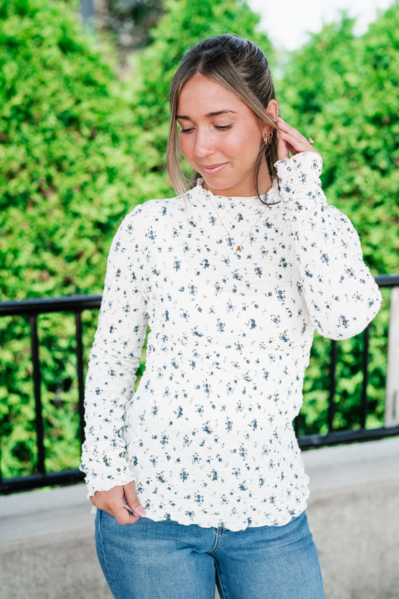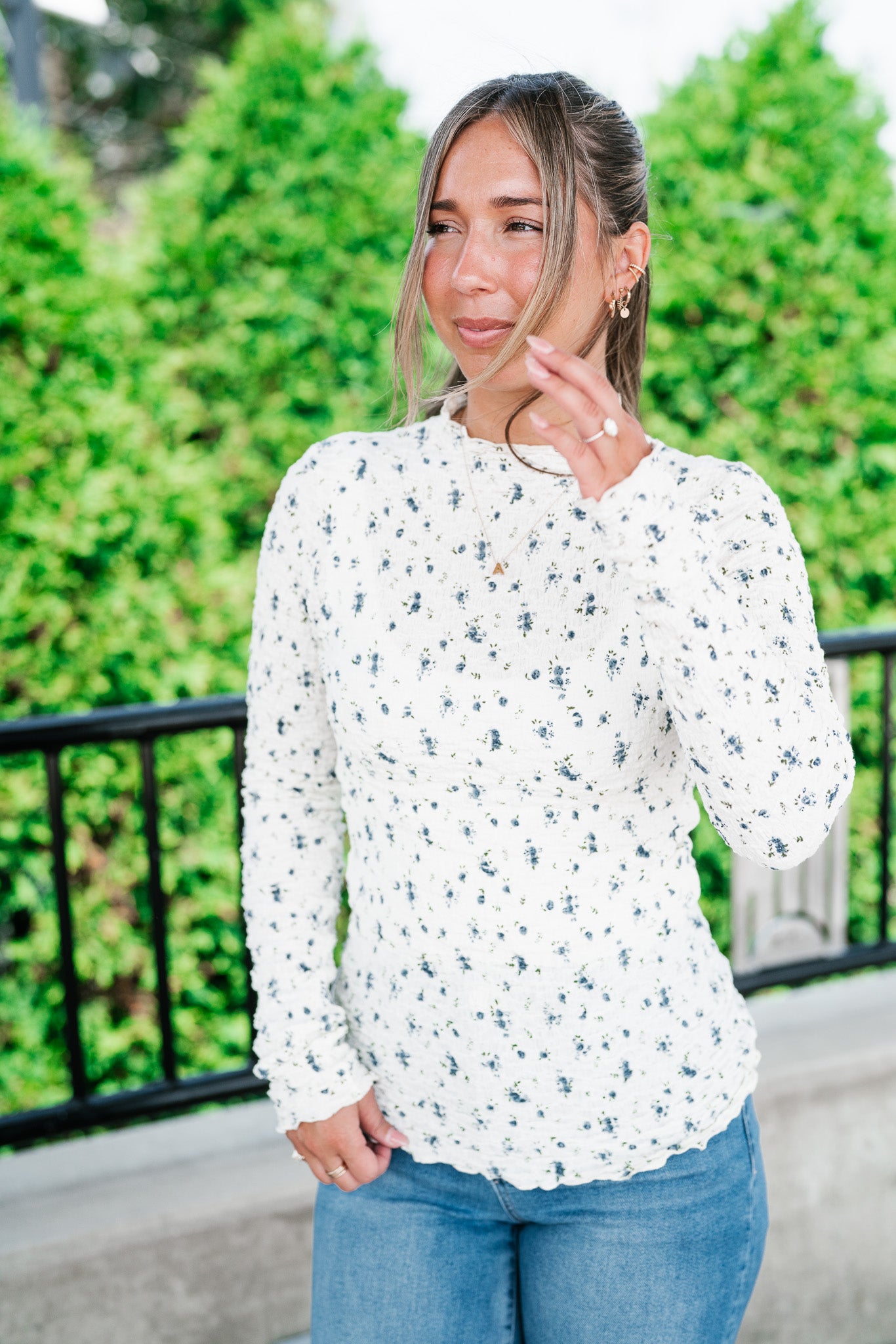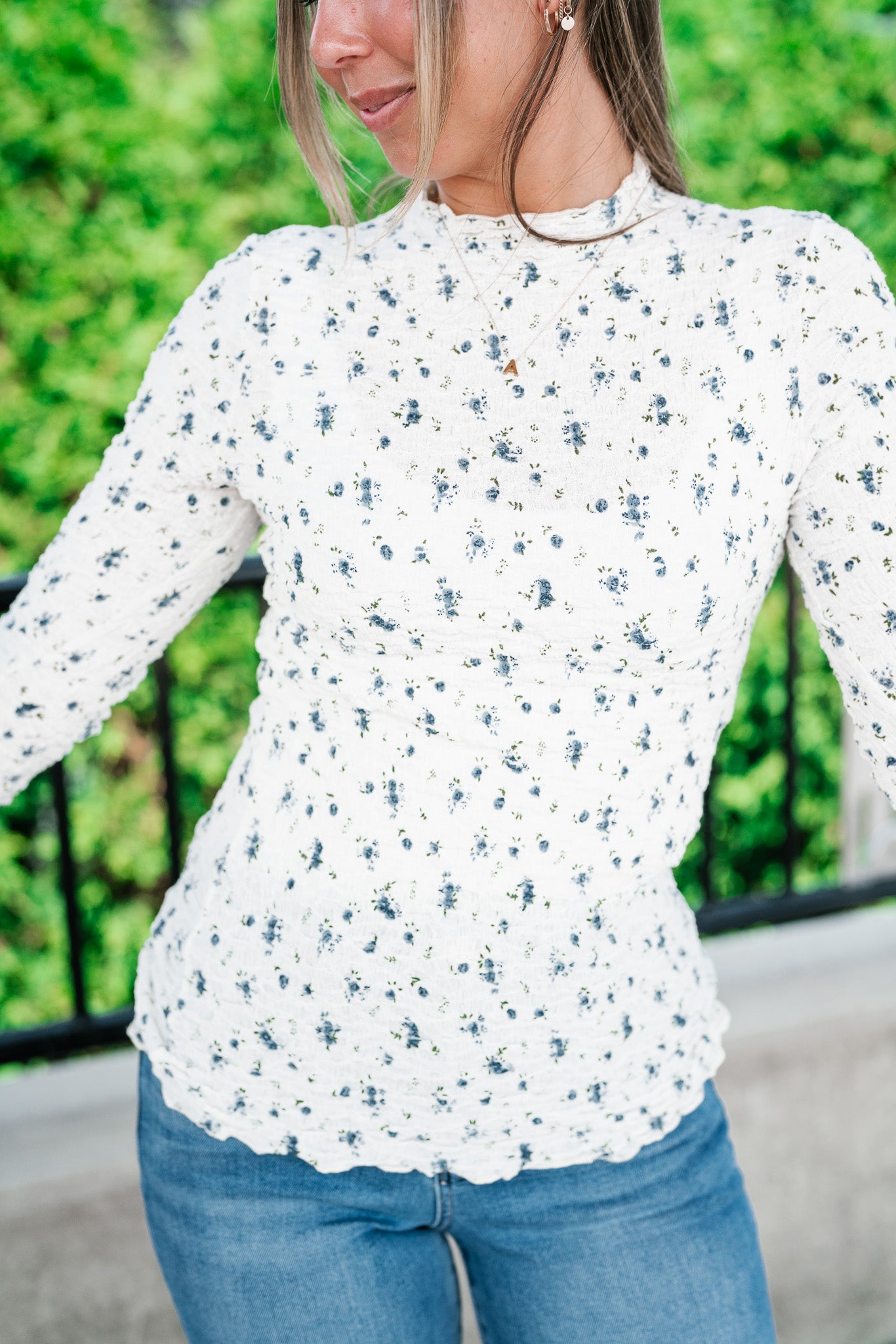 Delicate and dreamy, the Meadow Whisper Floral Top brings a touch of romance to your everyday wardrobe. Designed with a flattering tight fit and an elegant mock neck, this top features a soft floral print that feels like a breath of fresh air. The lightweight, stretchy fabric hugs in all the right places, making it perfect for layering under jackets or pairing with high-waisted jeans and skirts. Feminine yet modern, it’s the ideal piece to transition from day to night with ease and charm.