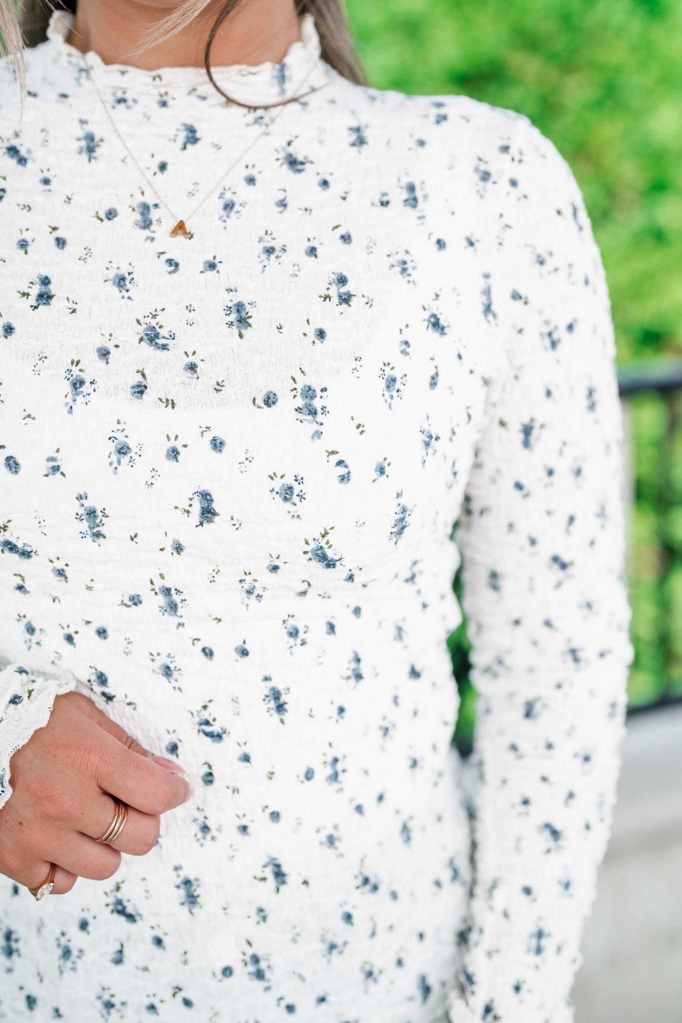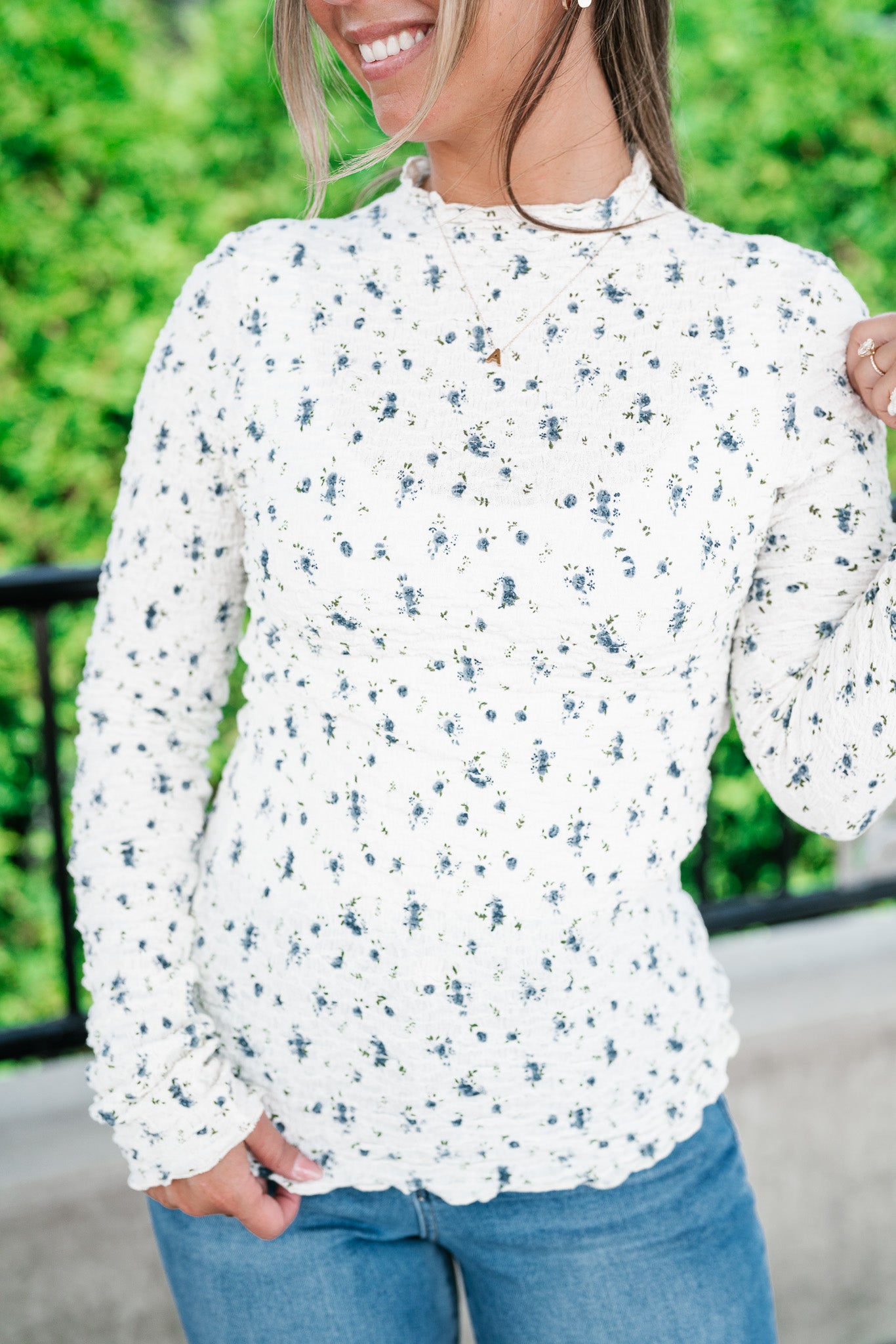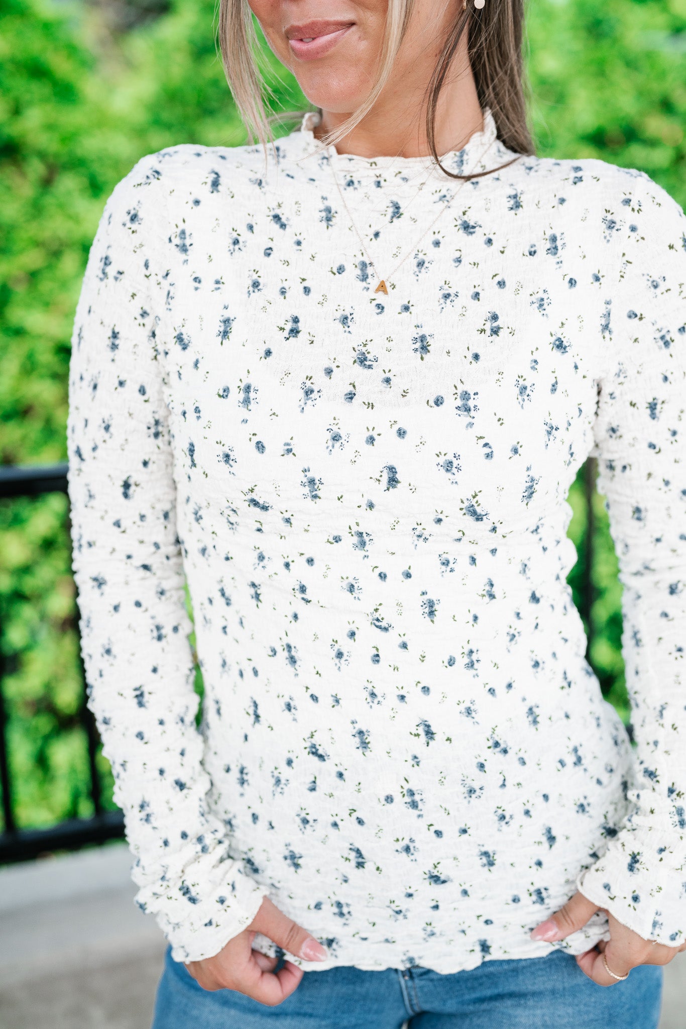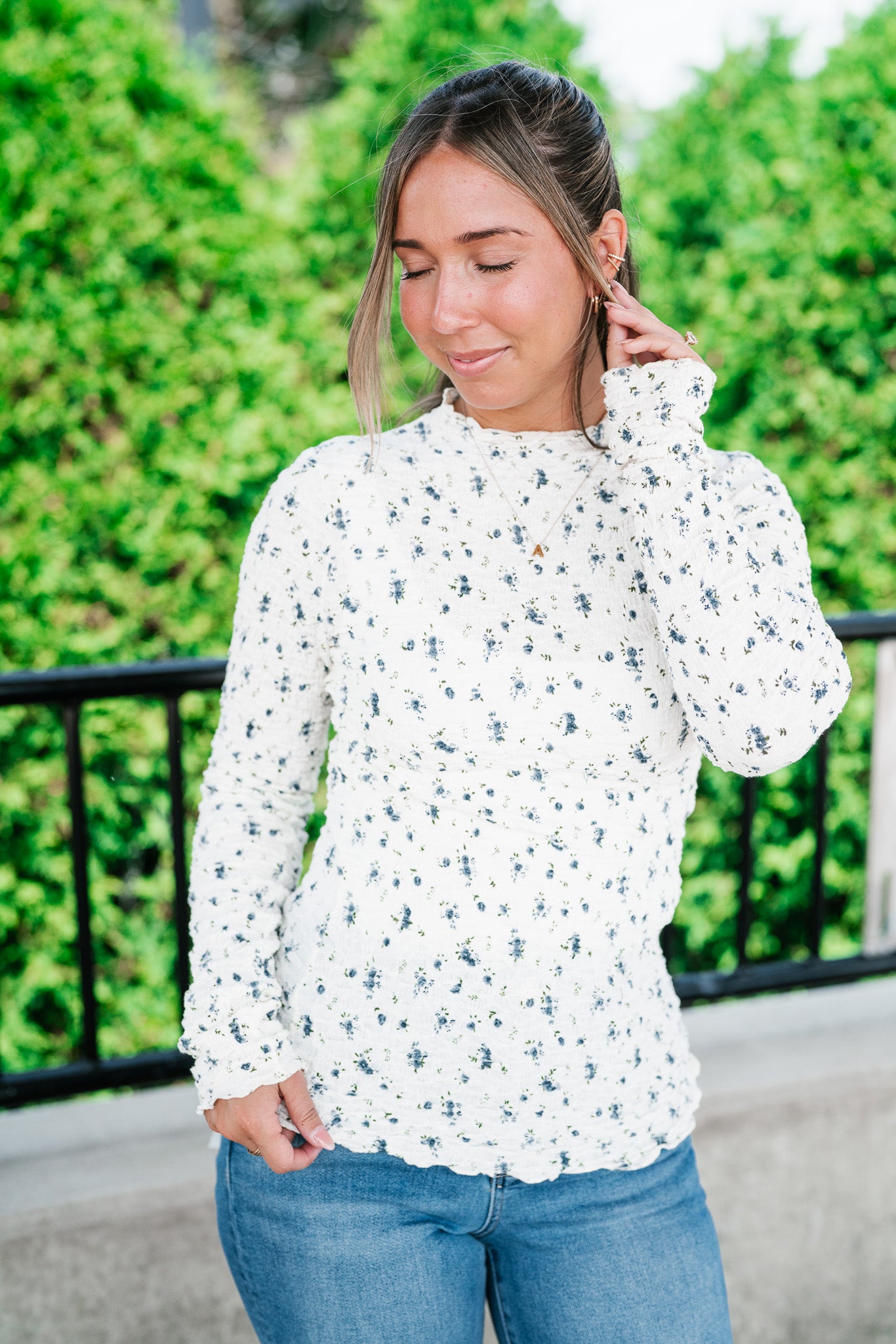 Delicate and dreamy, the Meadow Whisper Floral Top brings a touch of romance to your everyday wardrobe. Designed with a flattering tight fit and an elegant mock neck, this top features a soft floral print that feels like a breath of fresh air. The lightweight, stretchy fabric hugs in all the right places, making it perfect for layering under jackets or pairing with high-waisted jeans and skirts. Feminine yet modern, it’s the ideal piece to transition from day to night with ease and charm.