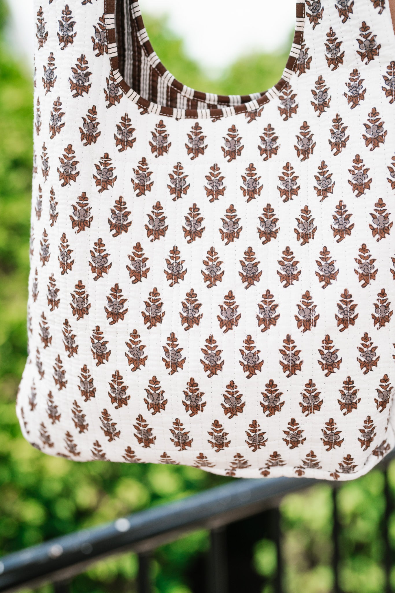 Each piece is crafted from 100% hand-printed fabric, so minor variations or subtle imperfections in the print are natural and part of its charm. Every bag will feature slightly different fabric patches, making each one truly unique while maintaining the same overall design as shown.