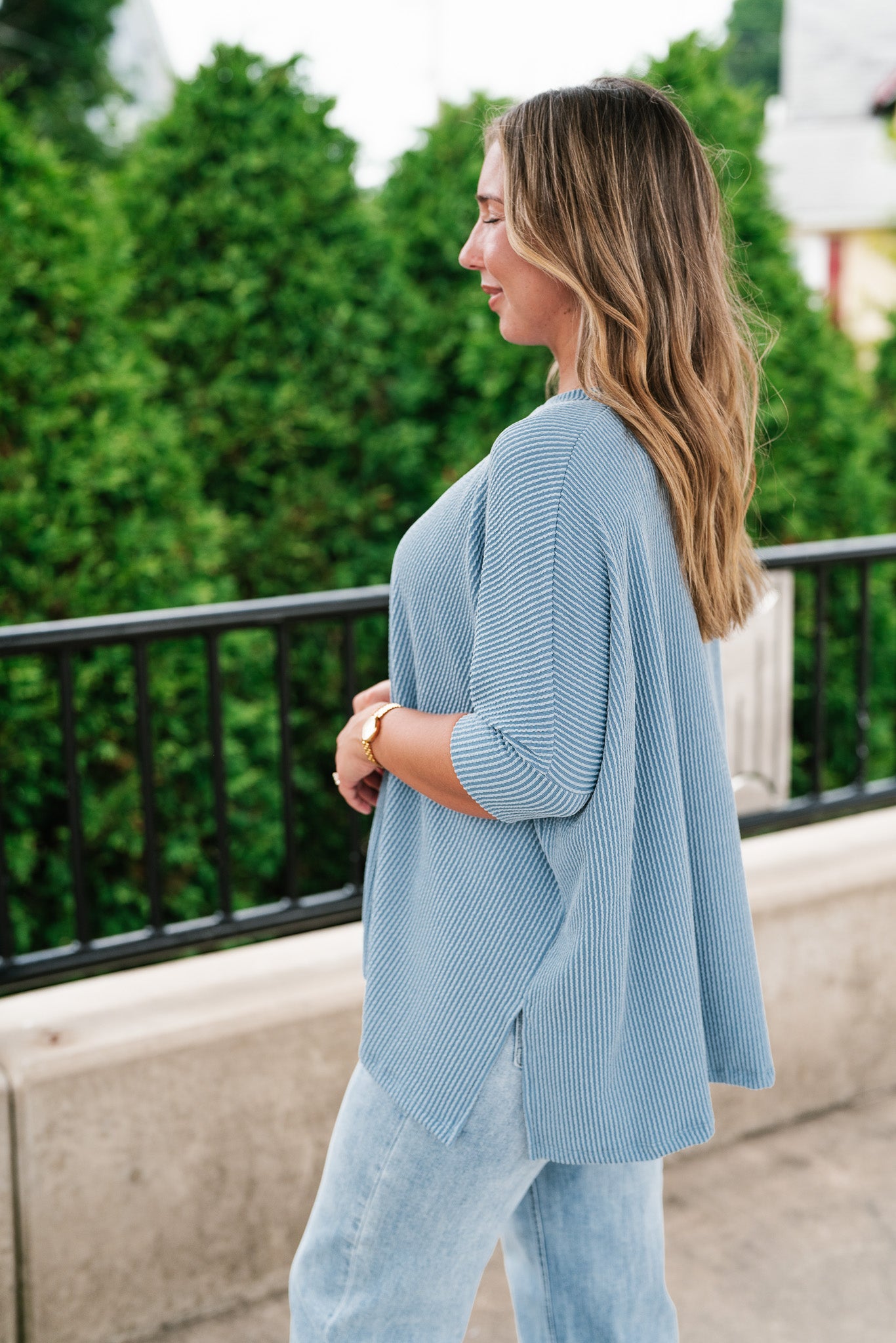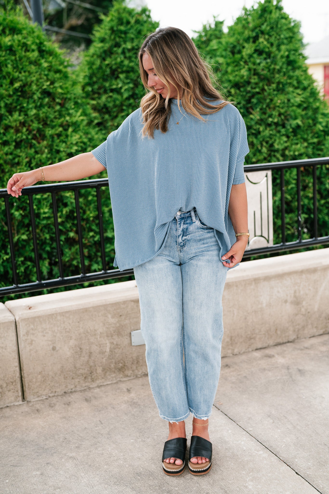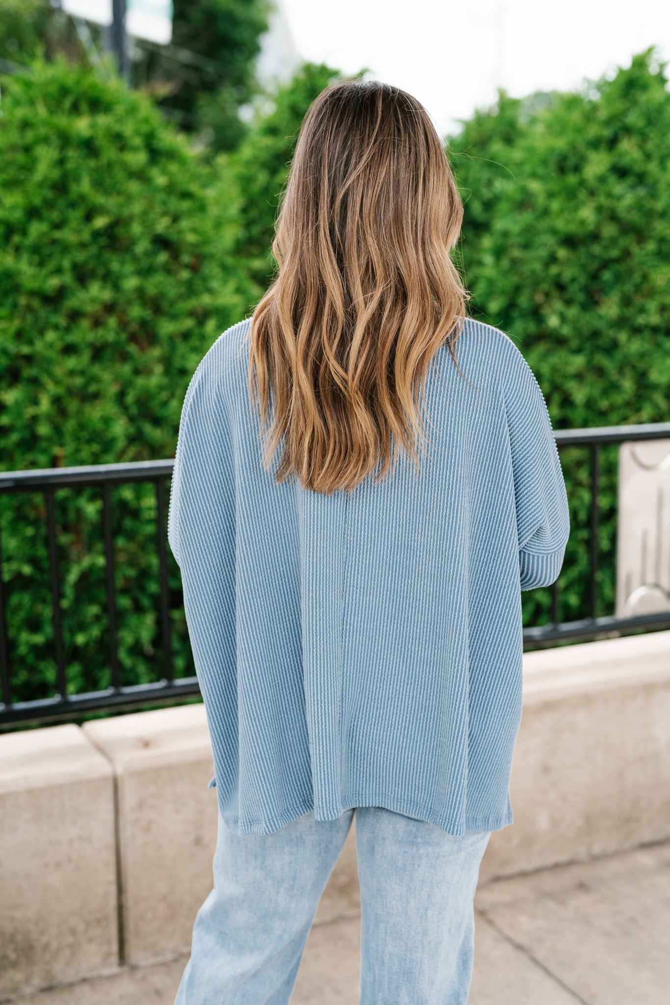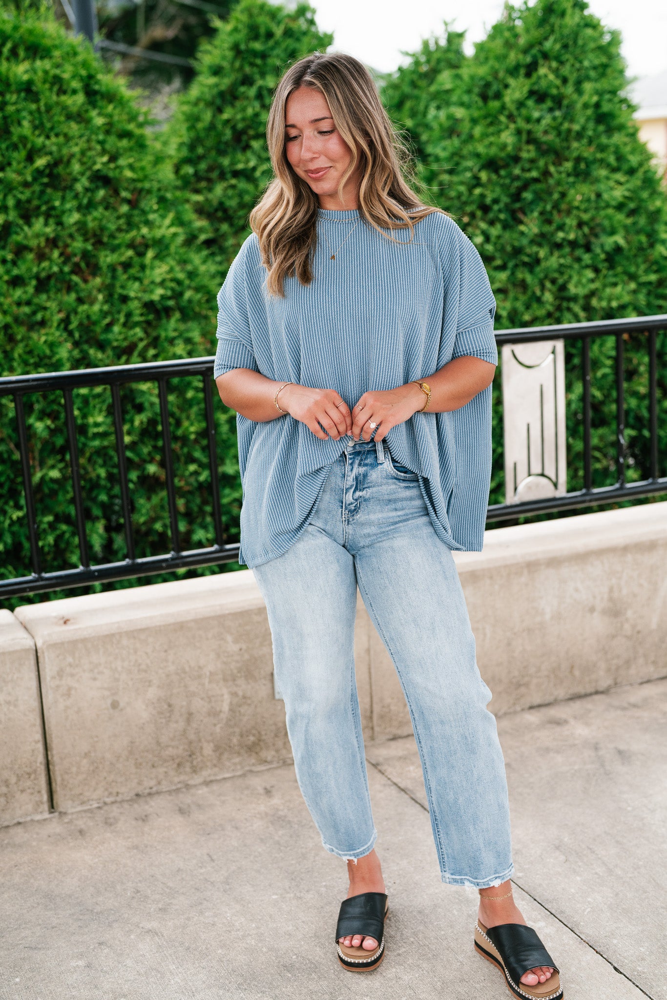 Effortlessly cozy and casually elevated, the Natalie Ribbed Oversized Tee brings that "easy like Sunday morning" vibe to your everyday wardrobe. With its oversized poncho silhouette, subtle drop sleeve, and soft ribbed texture, this dusty blue knit is perfect for layering over tanks, pairing with leggings, or styling with your favorite denim. A wide crew neckline and relaxed drape make this a go-to piece for transitional weather and laid-back days when comfort is key but style still matters. It’s that throw-on-and-go kind of essential your closet’s been waiting for.