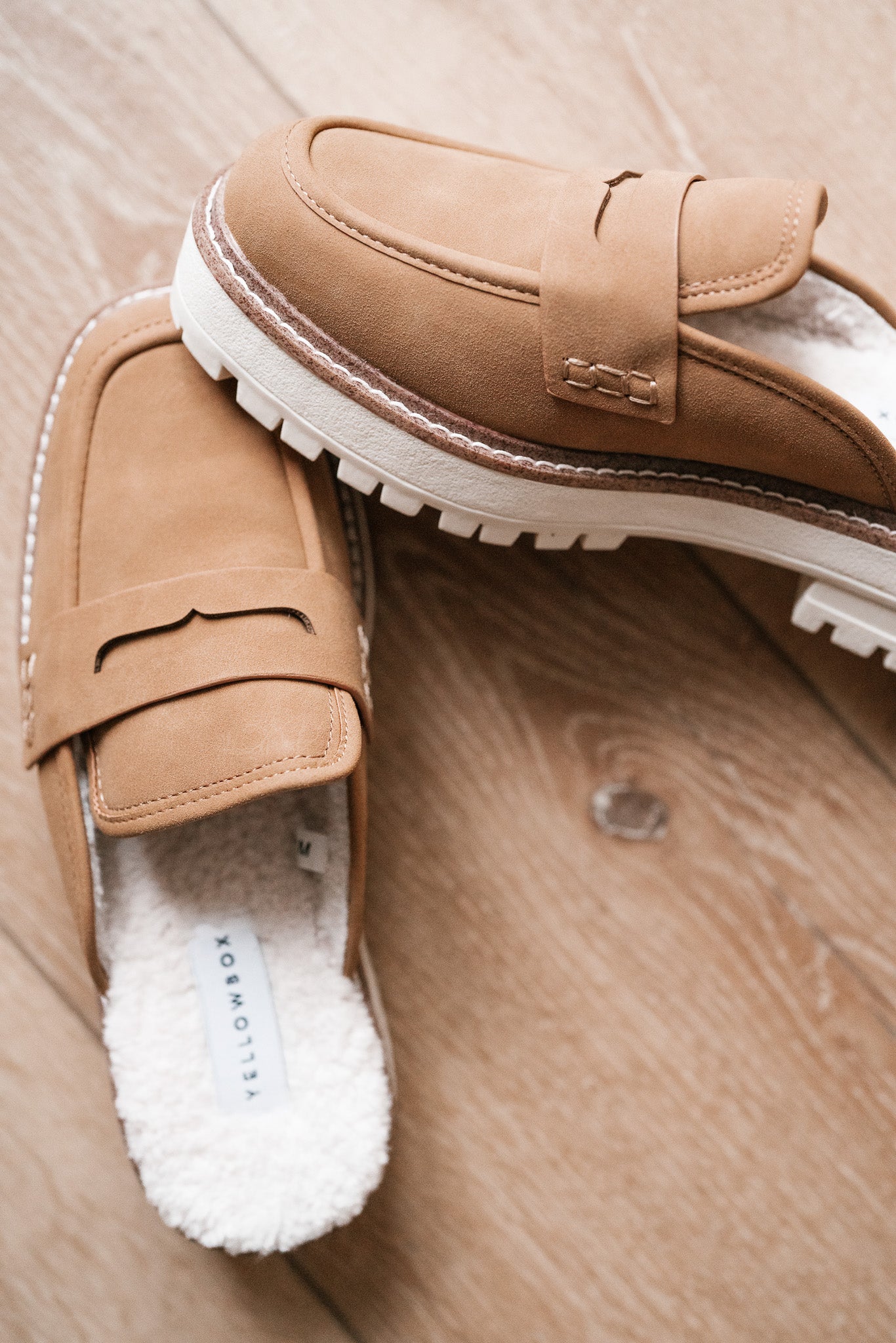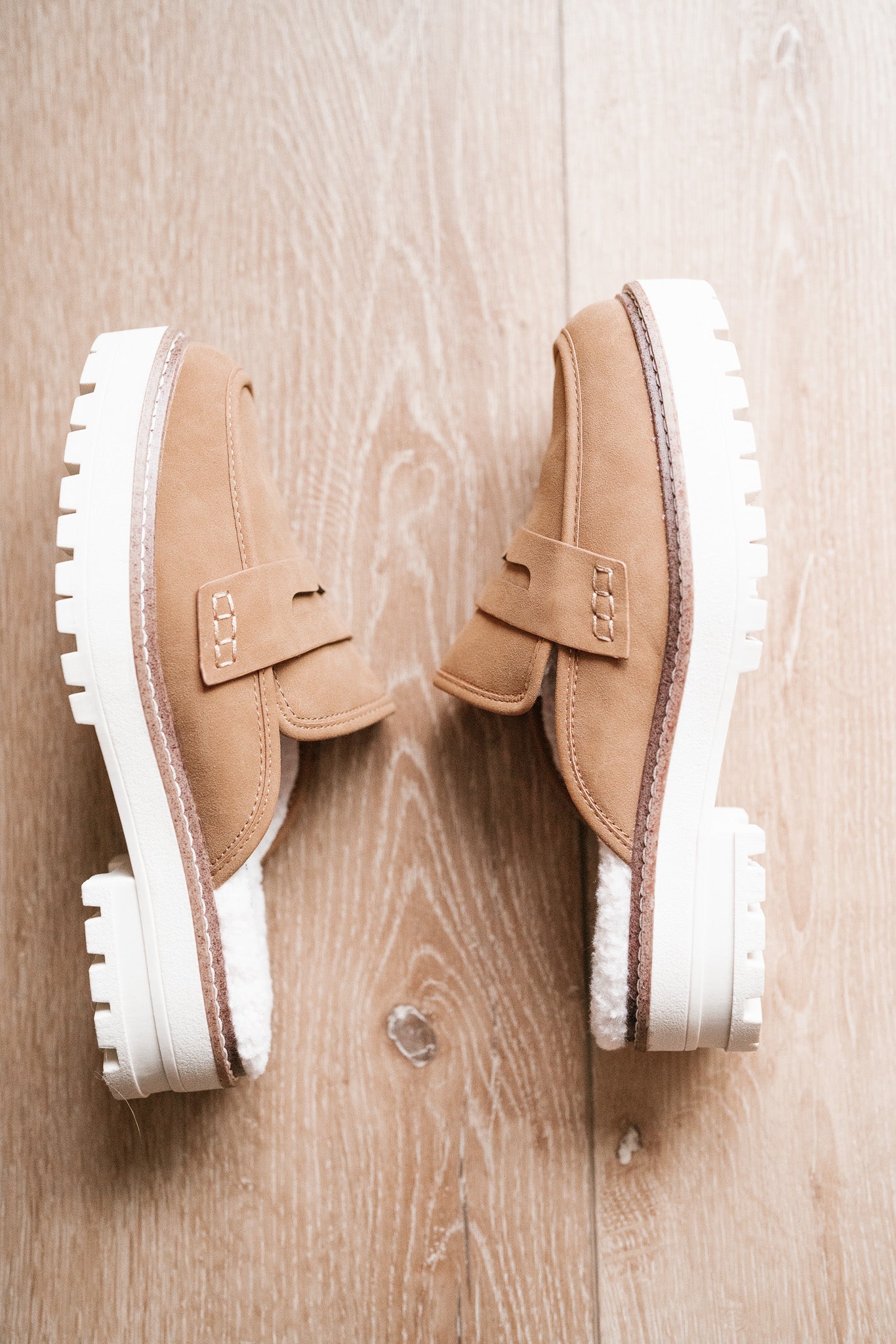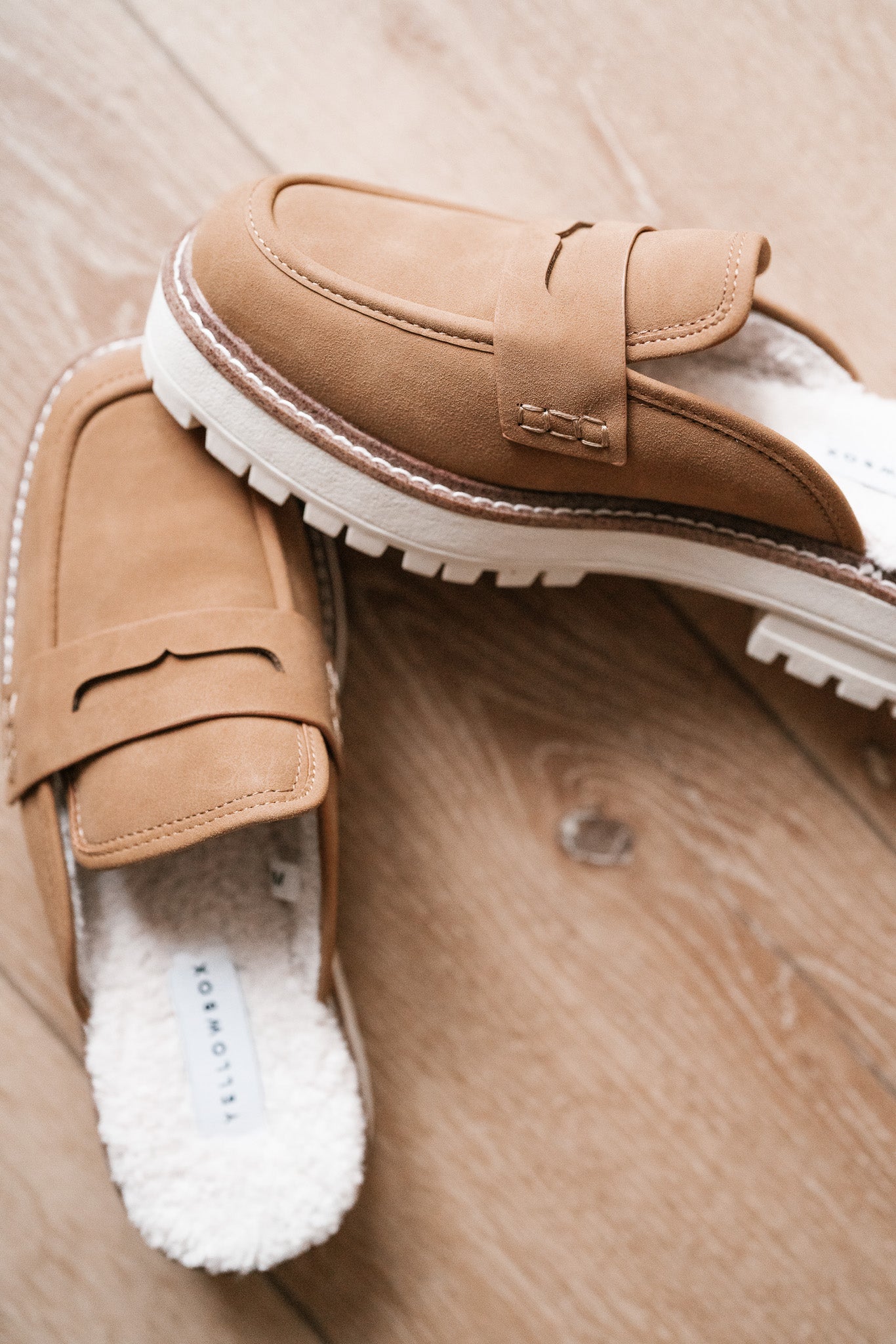 The Shareen Loafer blends classic loafer style with cozy comfort, making it a versatile option for both casual outings and relaxed days at home. Featuring a suede-like upper in a warm almond hue, this slip-on loafer is lined with plush faux fur for added warmth and softness. The chunky treaded sole provides both stability and a modern edge, while the timeless penny loafer design adds a polished touch. Perfect for layering with fall and winter outfits, the Shareen Loafer is a must-have for stylish comfort.