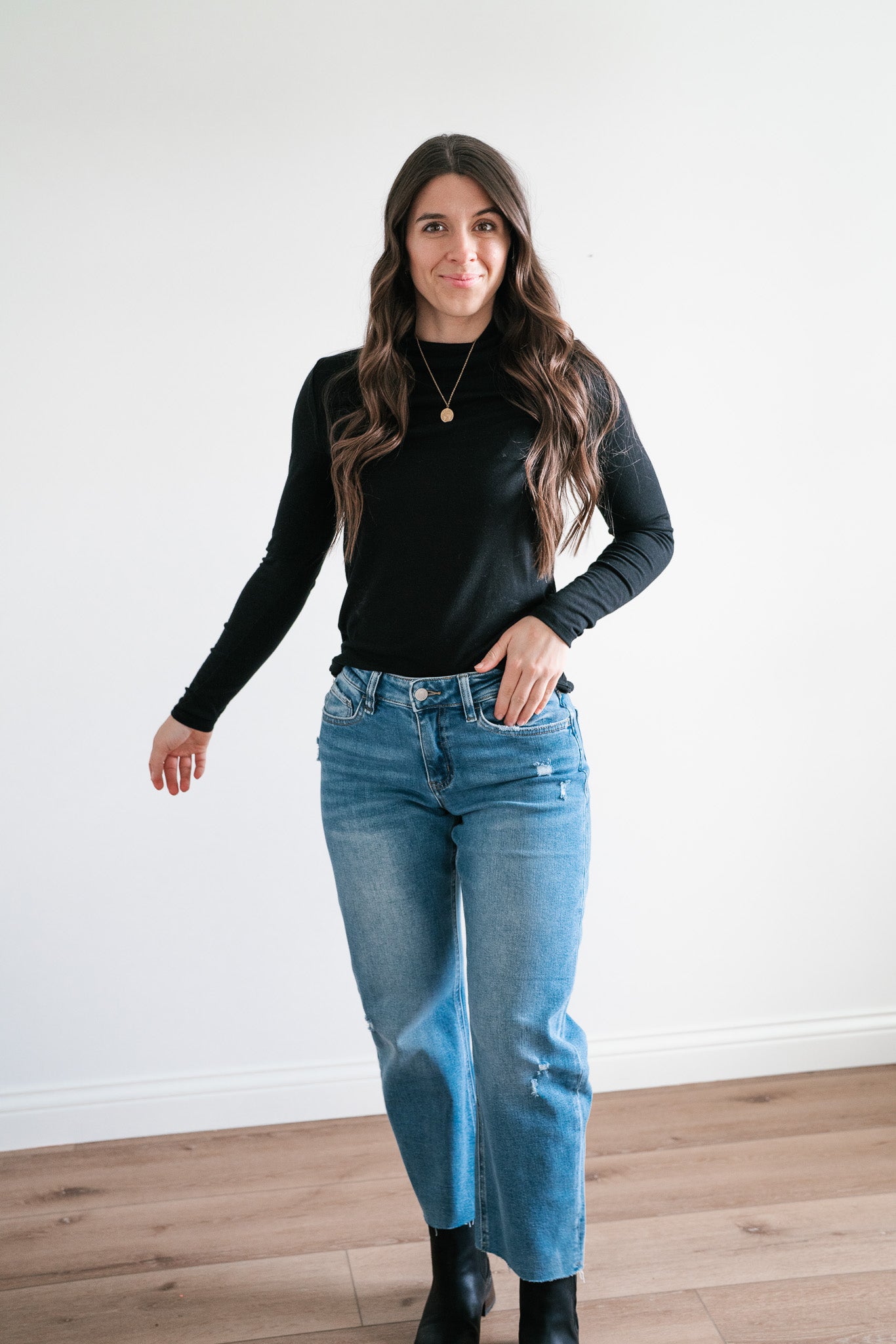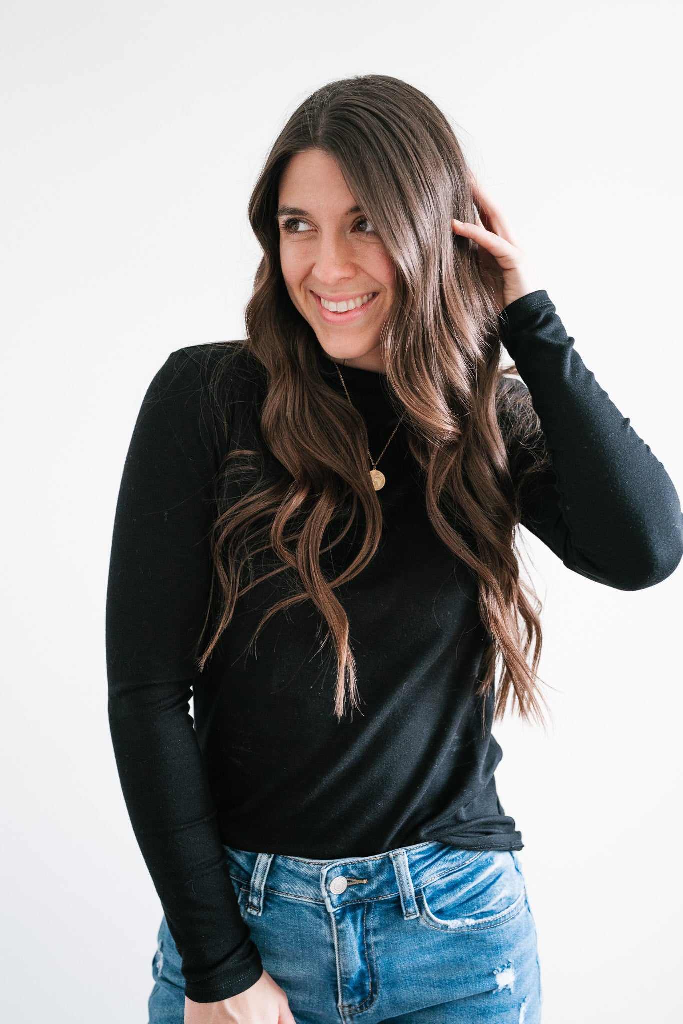 Introducing the Holiday Lights Mock Neck Top—a chic nod to the festive season with just the right amount of cozy flair. This top features a flattering mock neck that adds sophistication, while the soft, breathable fabric ensures comfort throughout the day or night. With a slightly relaxed fit and subtle sparkle woven into the design, it captures the warm glow of holiday lights, making it perfect for dressing up or keeping casual. Pair it with jeans for an elevated everyday look or tuck it into a skirt for a night out. Effortlessly stylish, this top is ideal for the modern woman on the go who wants to feel festive and polished all season long.