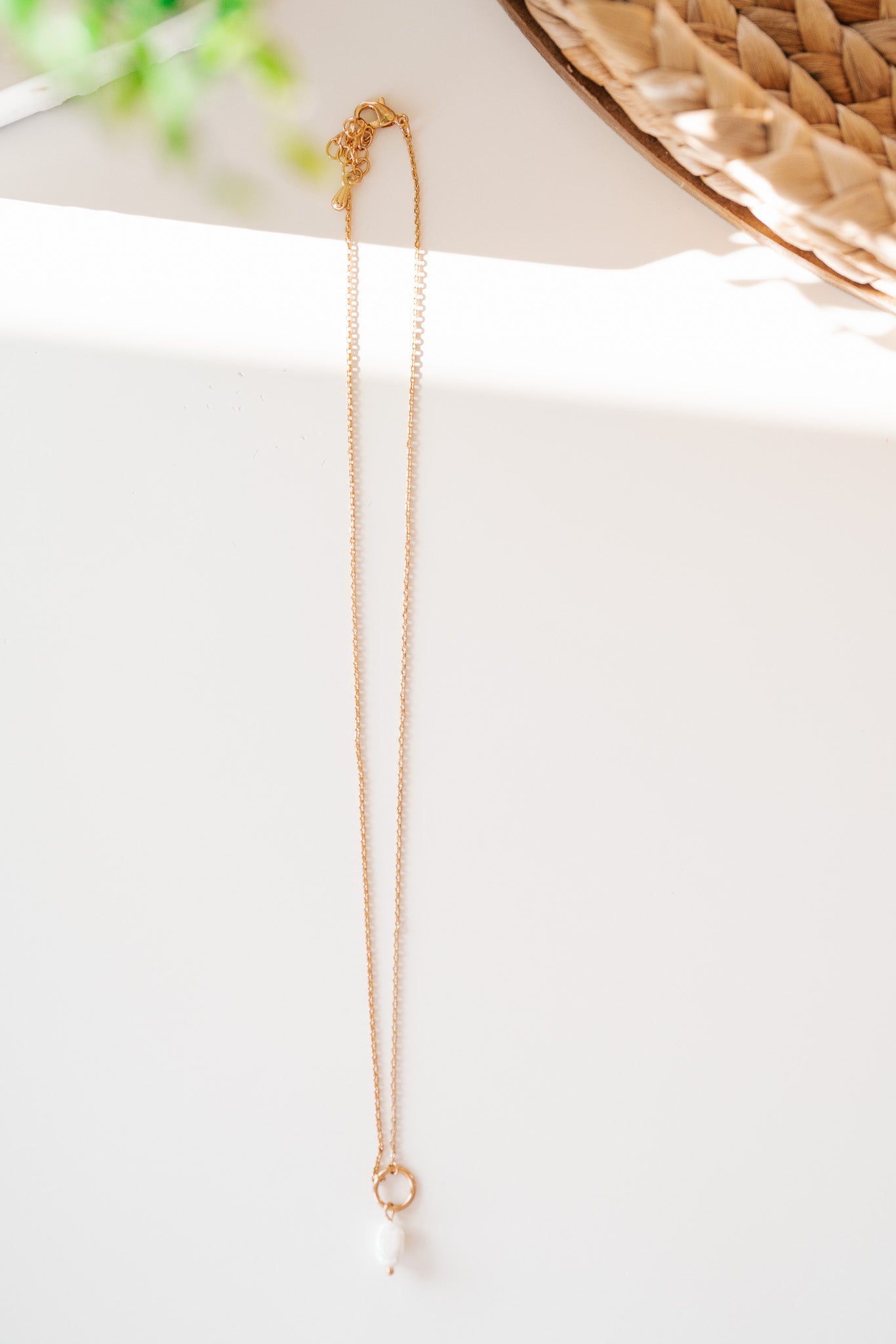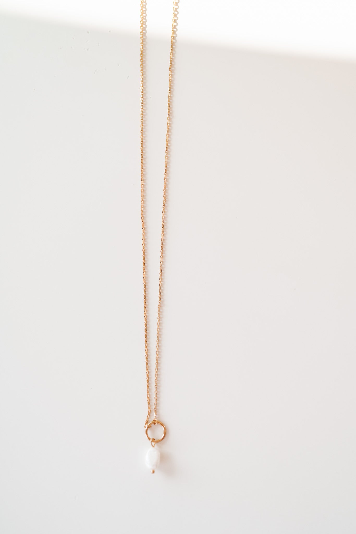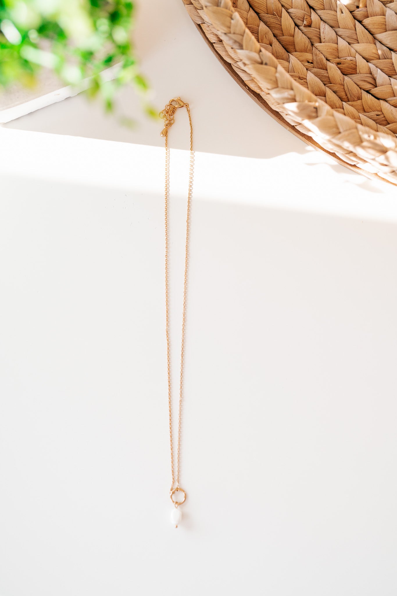 Looking for a simple yet elegant everyday necklace? This gold chain features a delicate circular charm paired with a single pearl drop for the perfect touch of softness and shine. Minimal, feminine, and easy to style, it layers beautifully with other pieces or stands alone as a subtle statement. A timeless piece you'll reach for again and again.