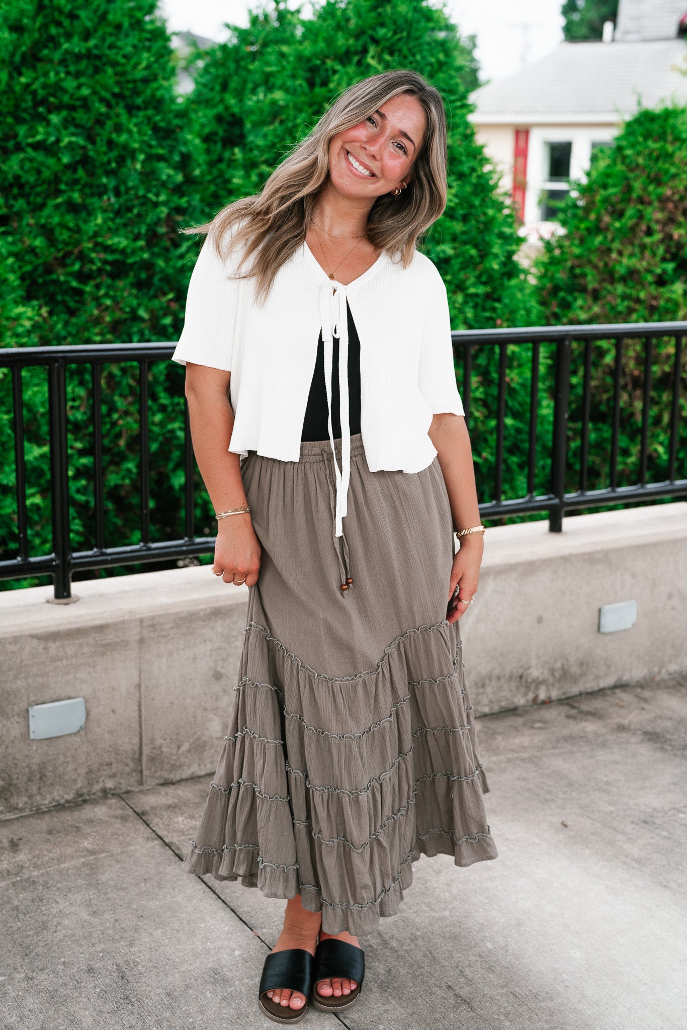 The Sweet Memory Ribbed Knit Tie Top brings effortless romance to your everyday wardrobe. Made from a soft, stretchy ribbed knit, this flattering top features a deep neckline with a functional front tie that adds a touch of charm. The fitted silhouette hugs just right, making it perfect for pairing with high-waisted denim, skirts, or layered under your favorite cardigan. Feminine yet casual, this piece is a sweet reminder that the little details make the biggest impact.