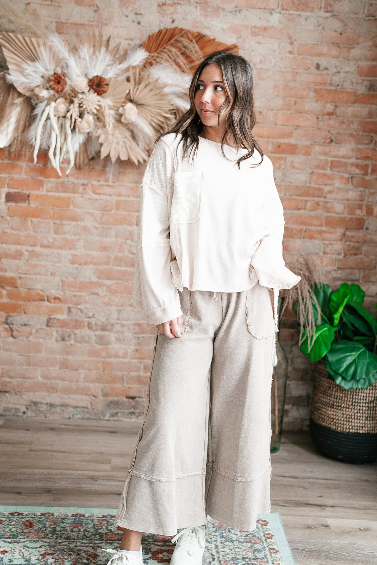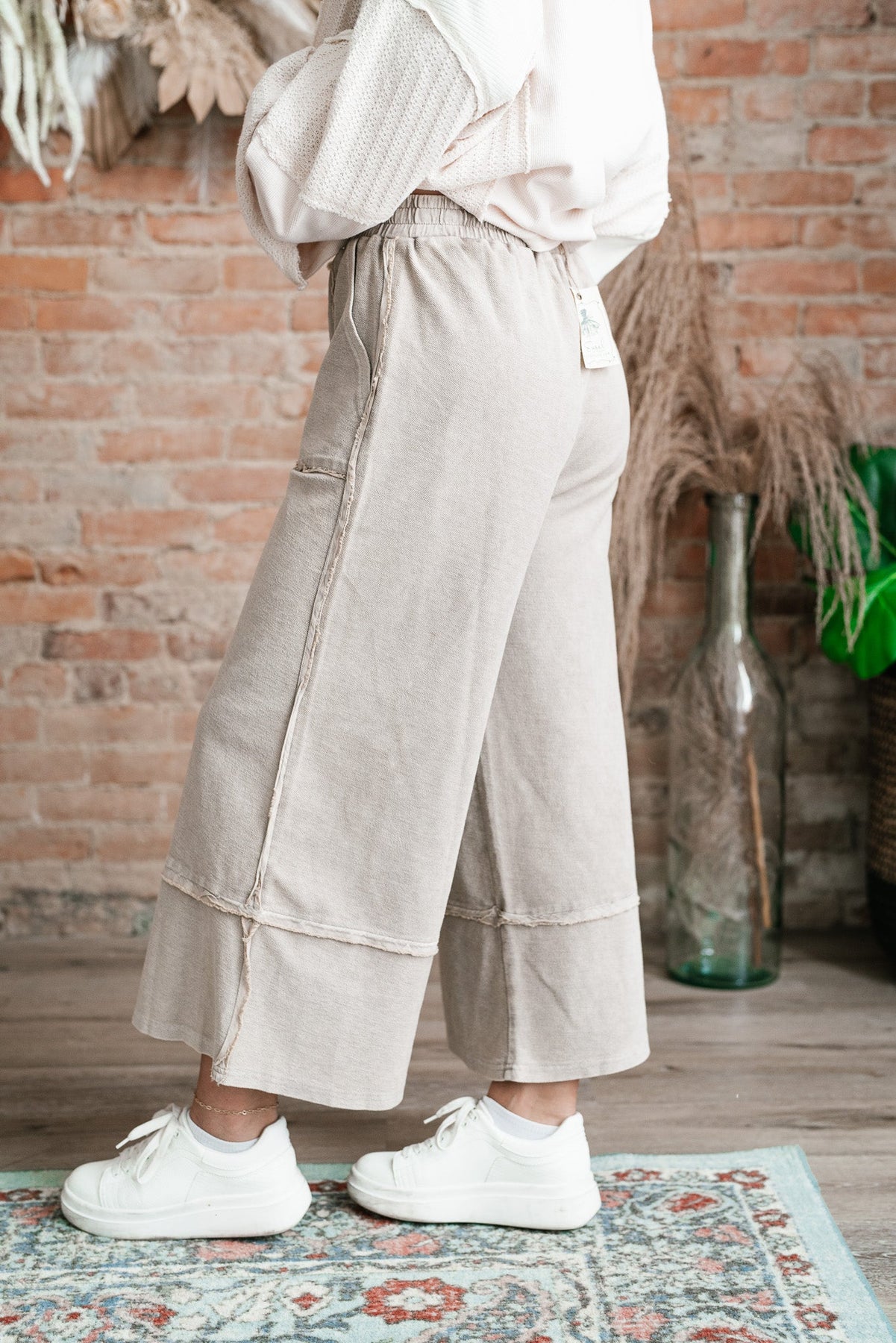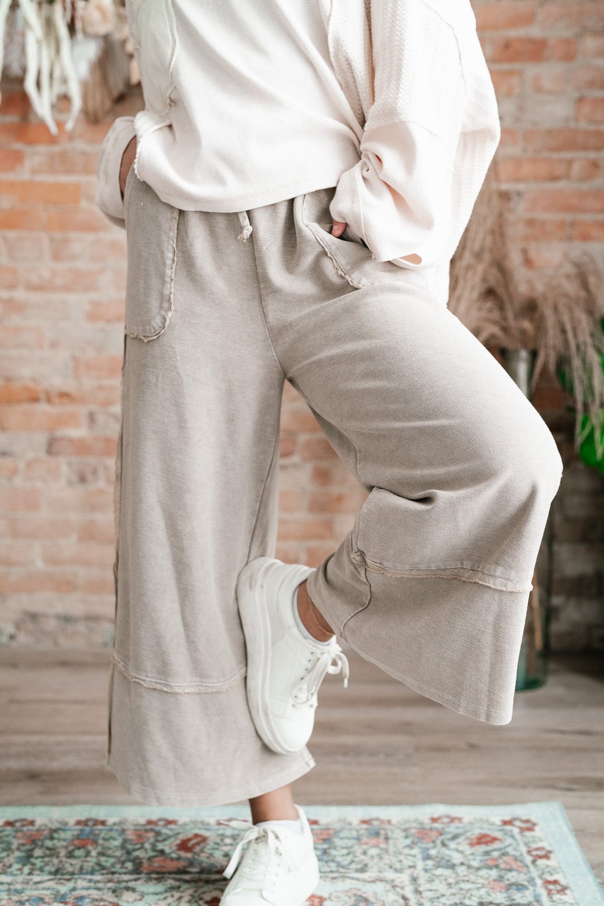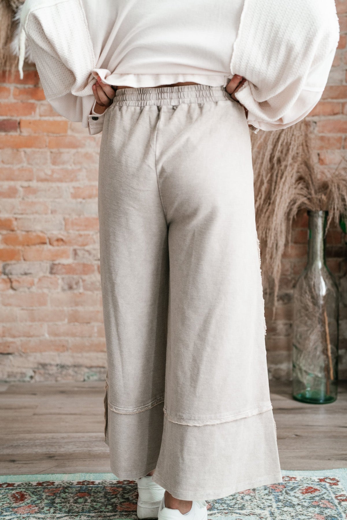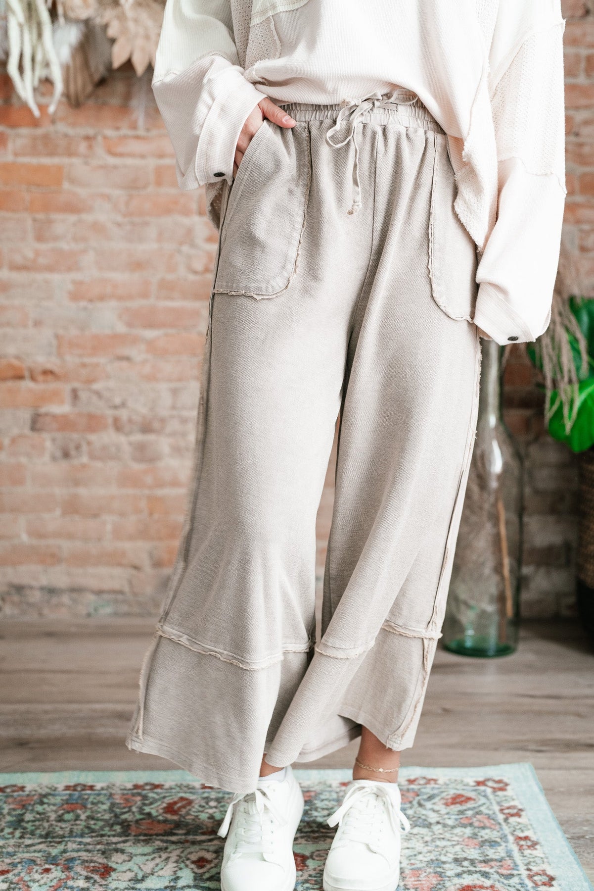 Who doesn't love a cute pair of pants?! The Can't Be Matched Mineral Wash Wide Leg Pants- Sand feature an adjustable draw-string waist, side pockets, a teal mineral washed fabric, and a relaxed wide leg fit. Style these pants with a fitted tank for a cute, complete look!