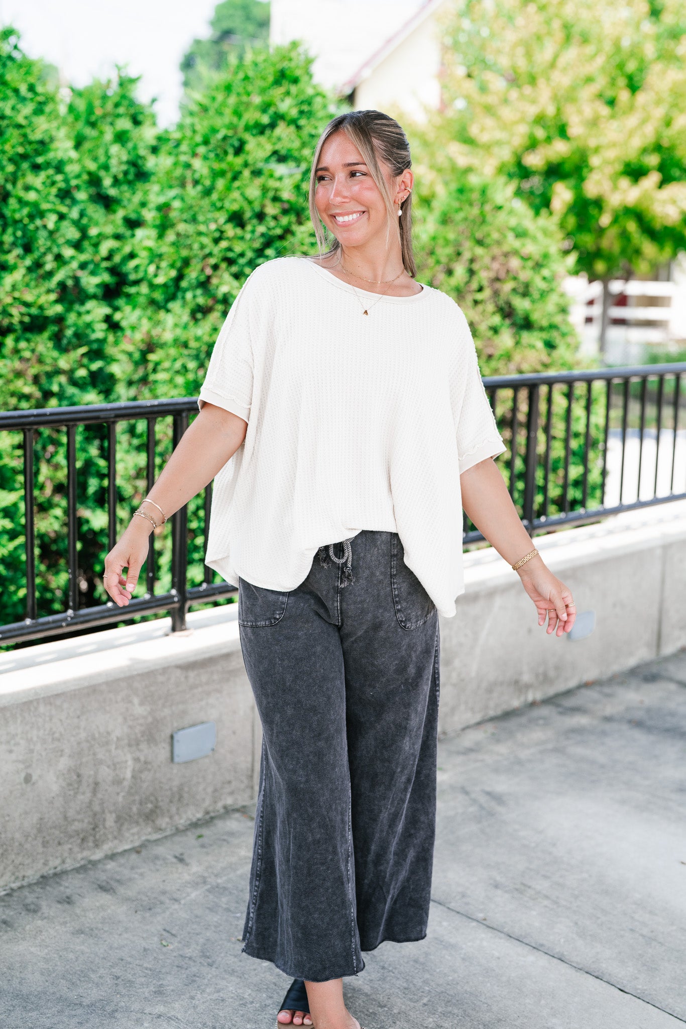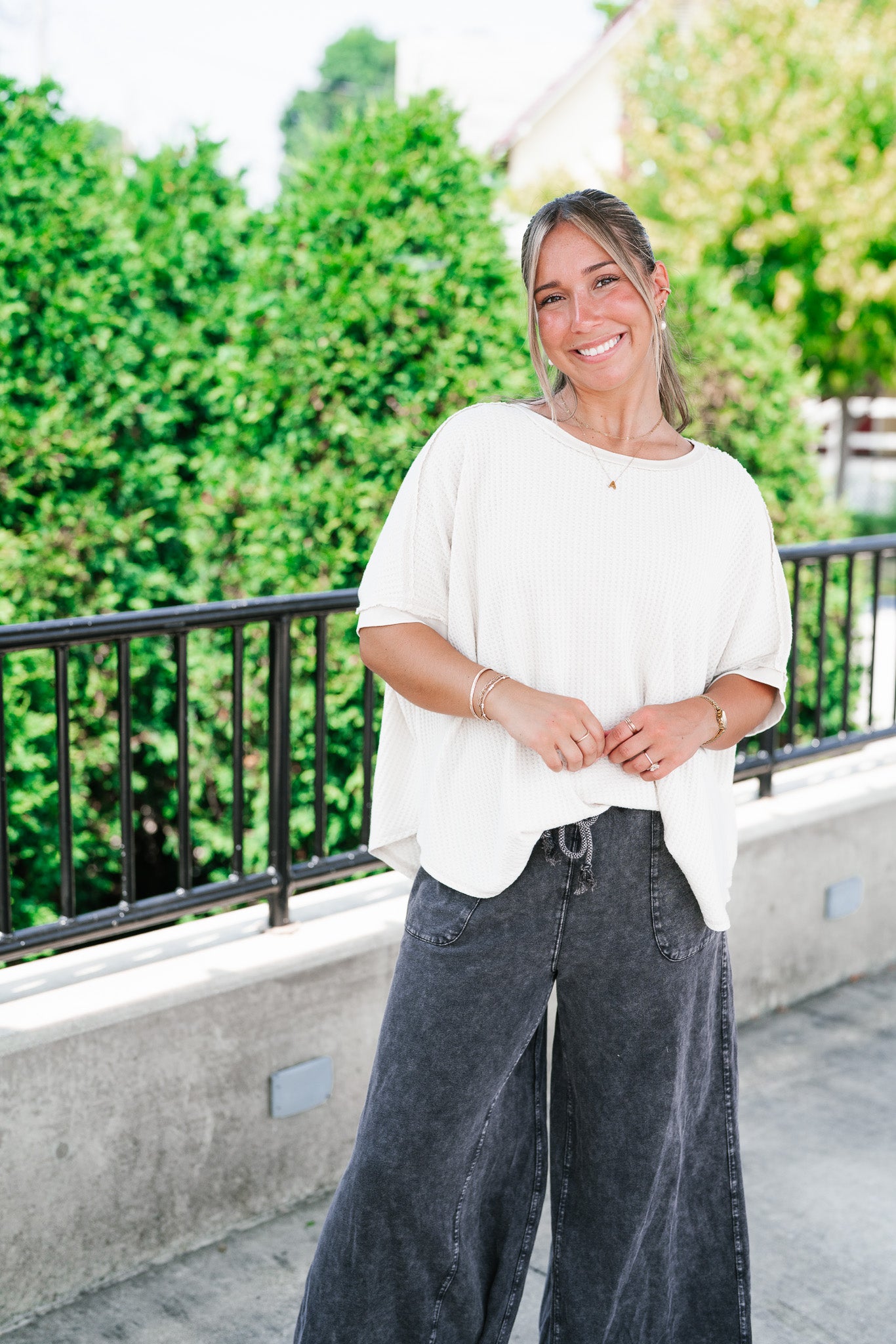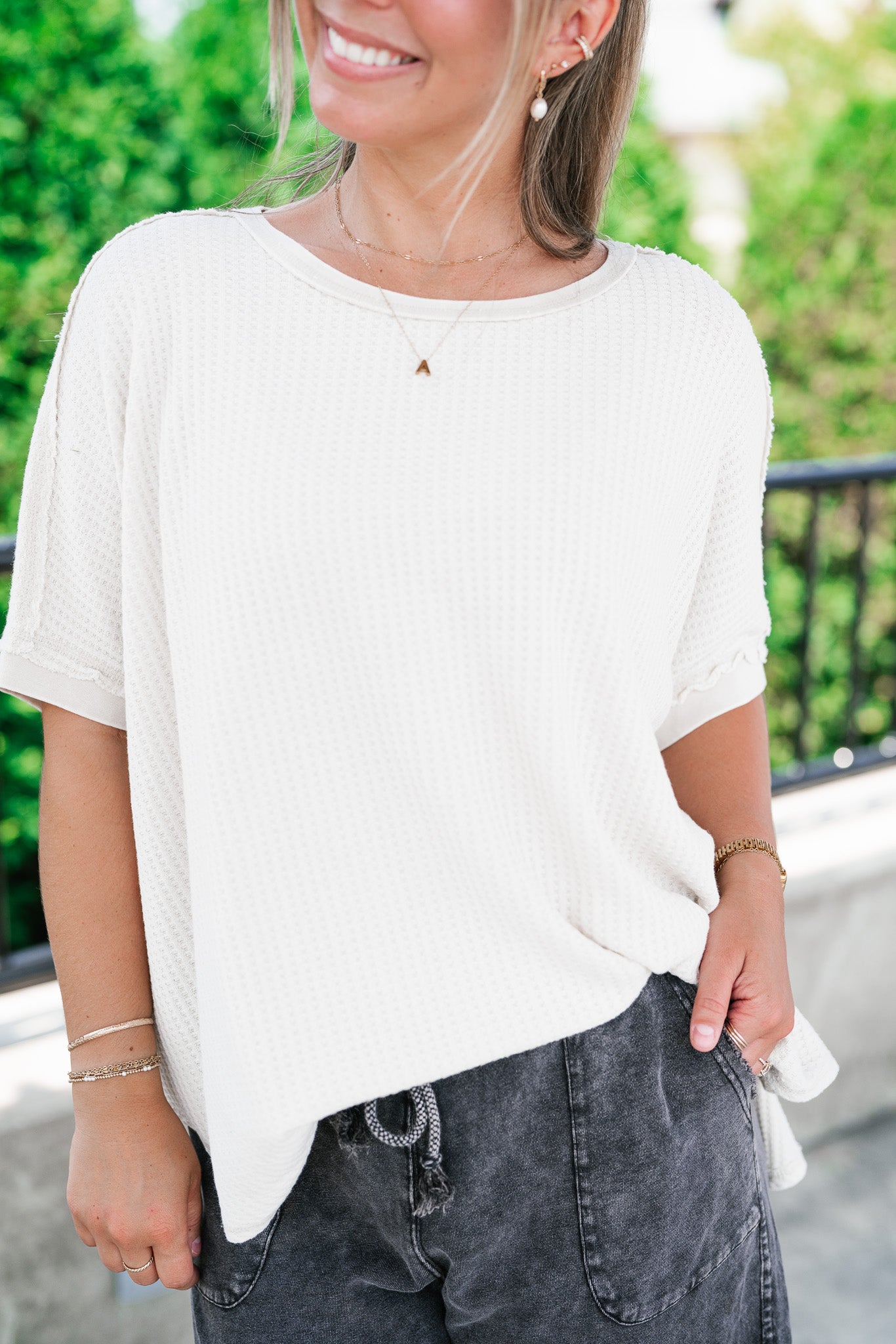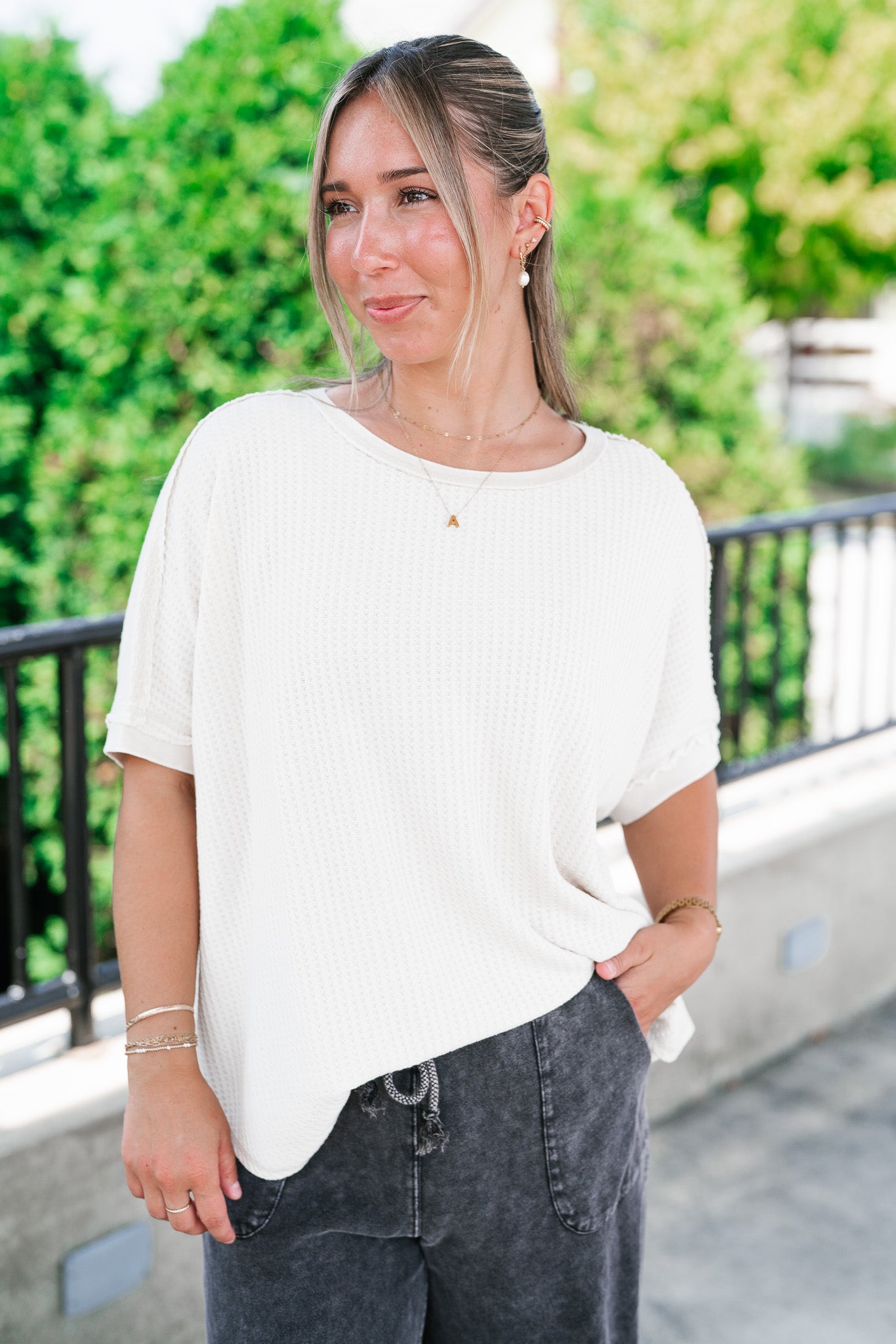 Wrap yourself in effortless comfort with our Cozy Dune Dolman Waffle Knit Top. This easygoing essential features a textured waffle knit fabric that adds depth and dimension to your look while keeping things ultra-soft and breathable. Designed with relaxed dolman sleeves and a boxy fit, it drapes beautifully for that laid-back, lived-in feel. Whether paired with denim, leggings, or layered under a jacket, this top is your go-to for cozy, casual days with a touch of style.