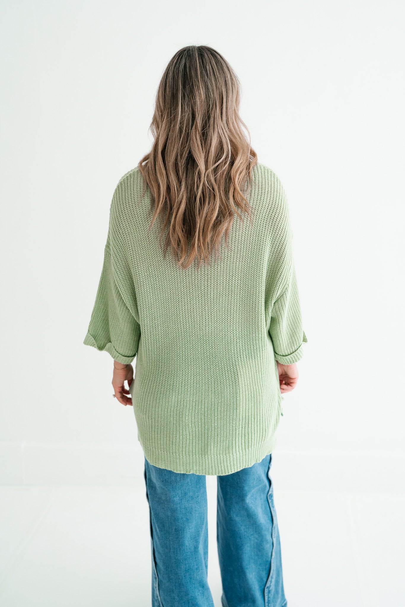 Everyday Sage Cozy Knit Sweater Top will elevate your everyday look.