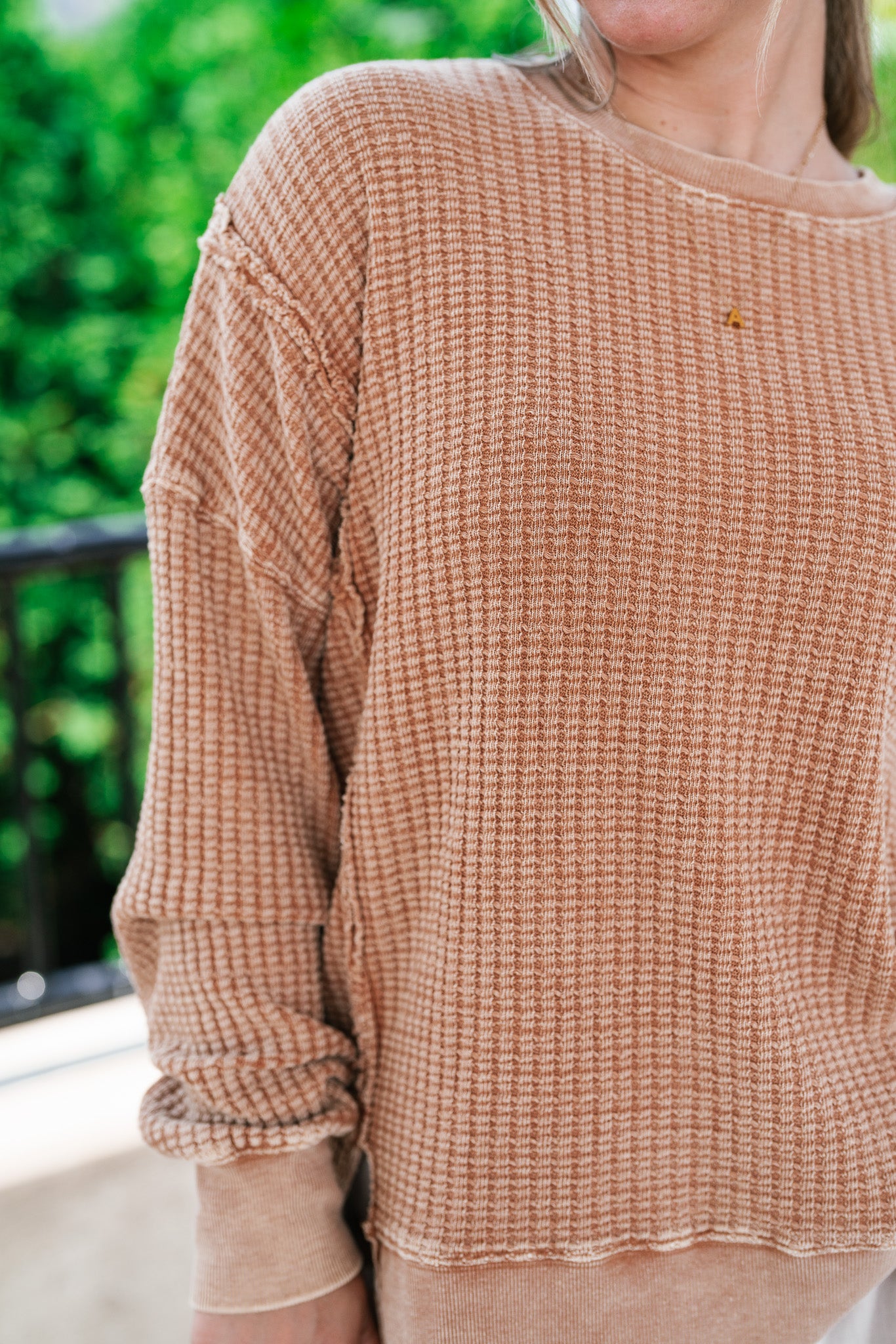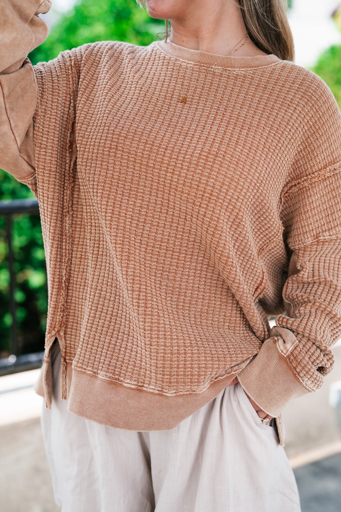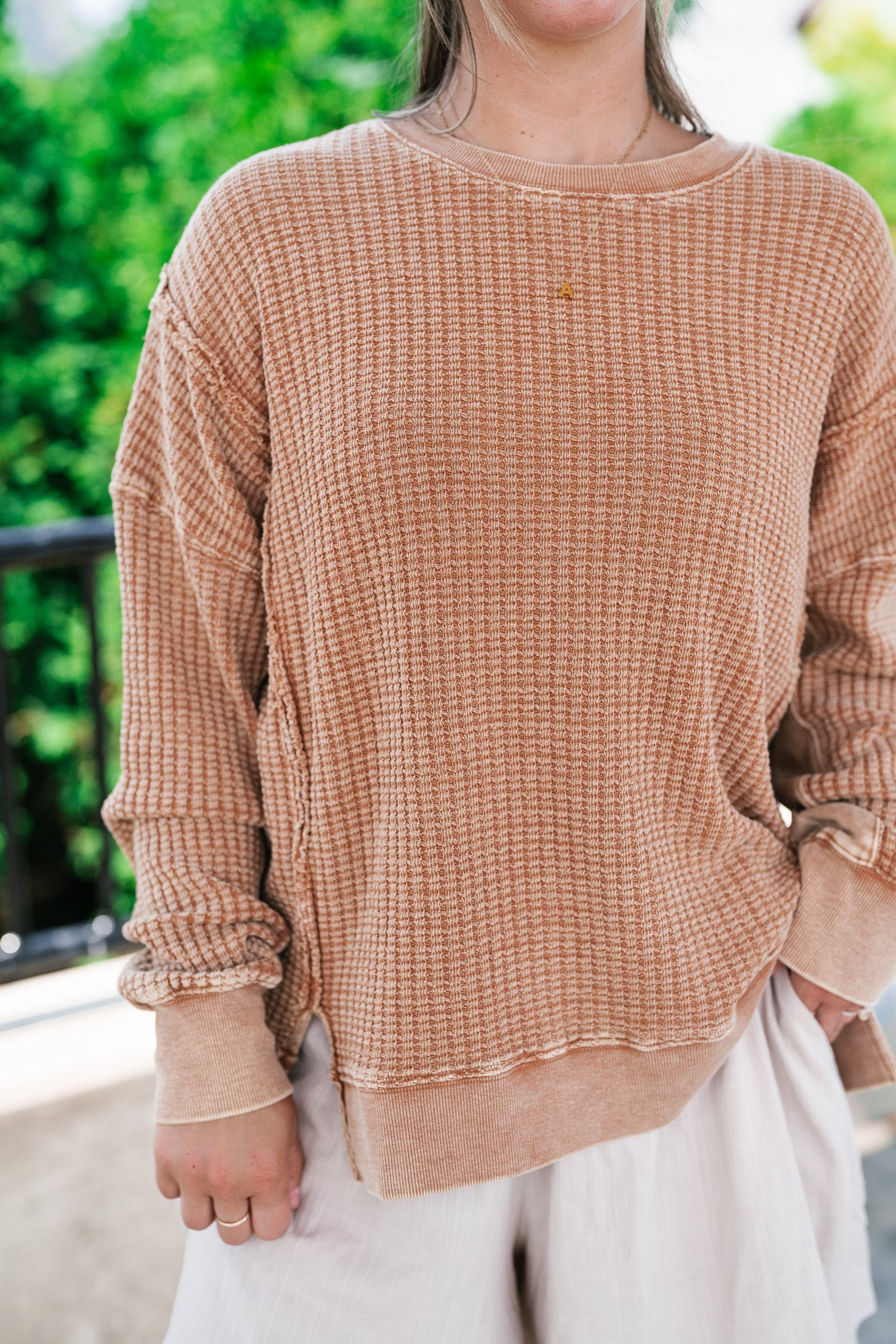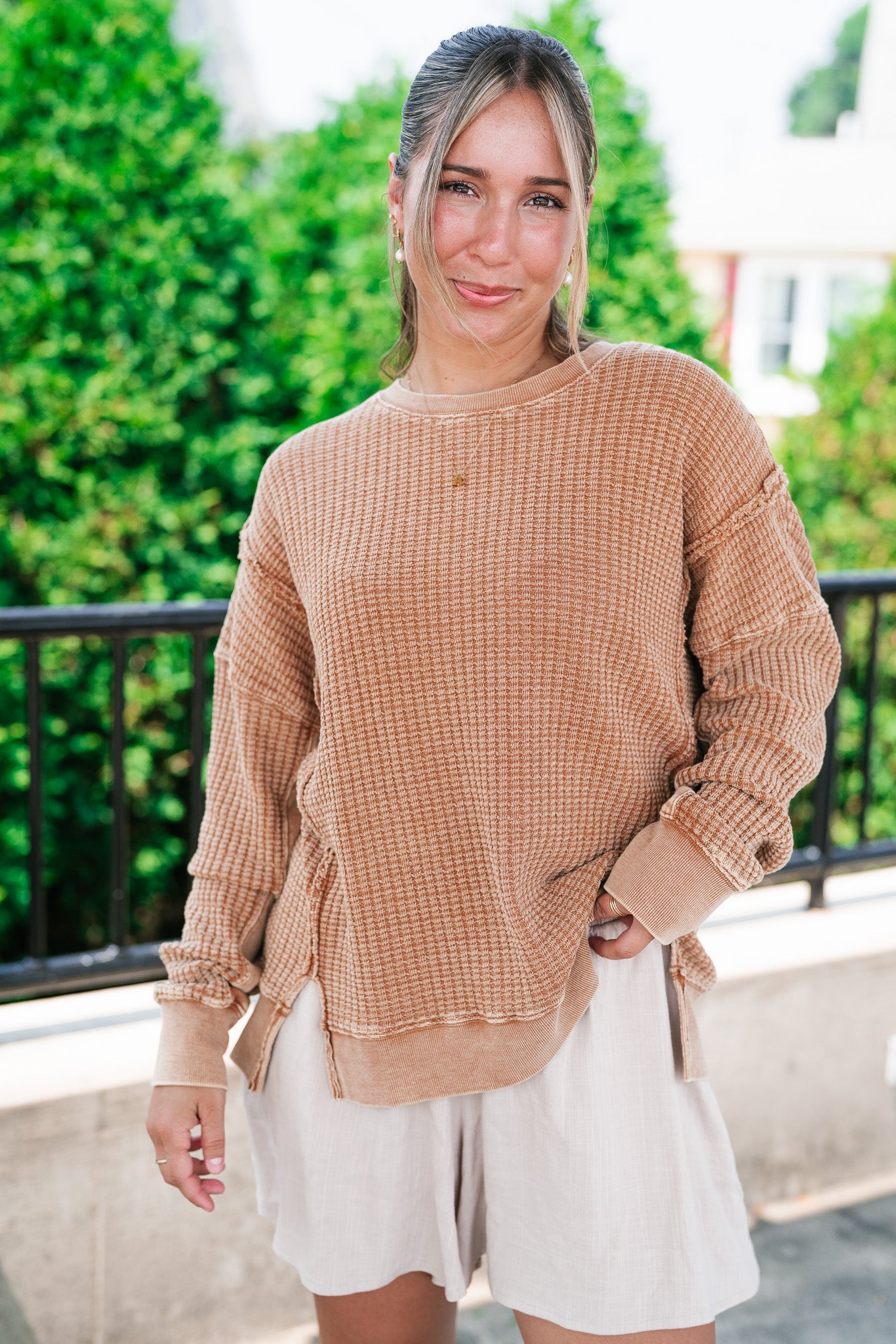 The Matilda Mineral Wash Waffle Knit Crewneck is your new off-duty favorite — perfectly cozy with a lived-in look you’ll love. Crafted from textured waffle knit fabric and finished with a vintage-inspired mineral wash, this relaxed crewneck delivers both comfort and effortless style. The soft, breathable knit and laid-back fit make it ideal for lounging, layering, or running errands in style. Pair it with your favorite denim, leggings, or joggers for an easy, everyday outfit with character.