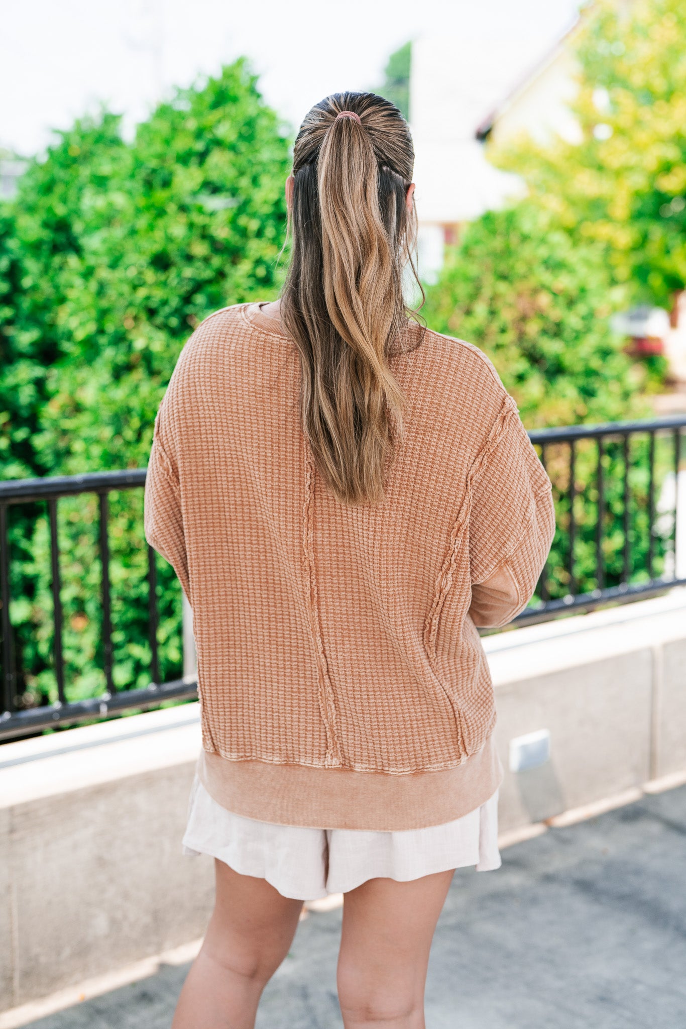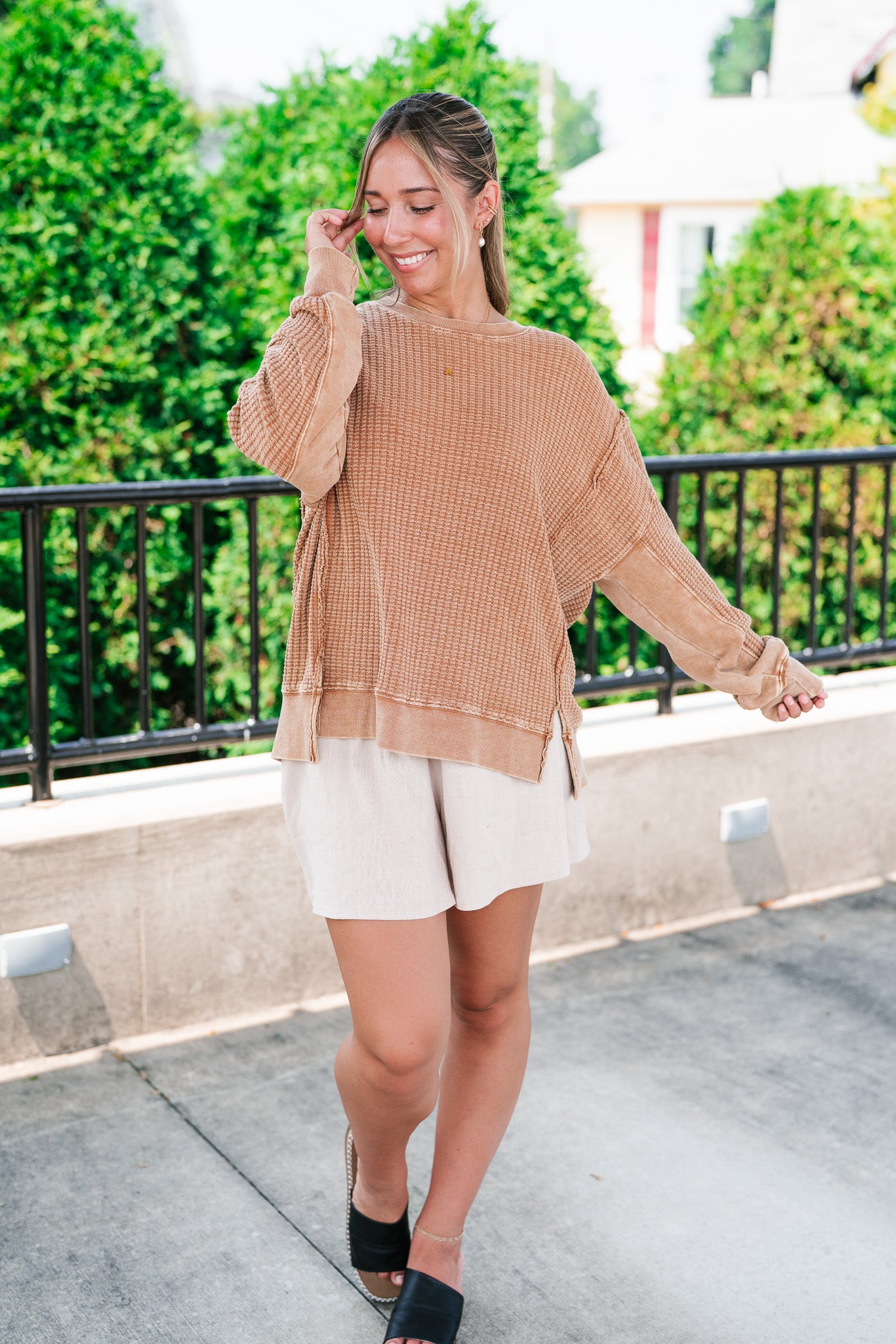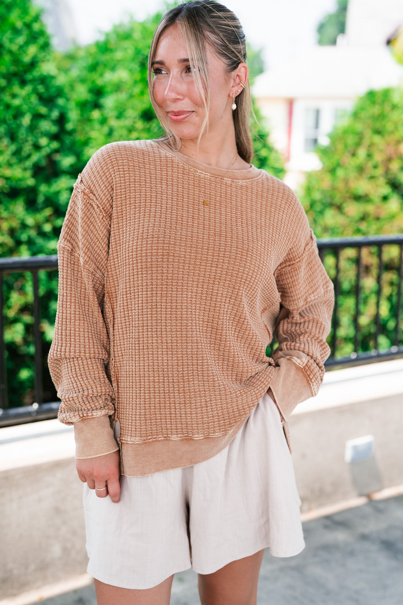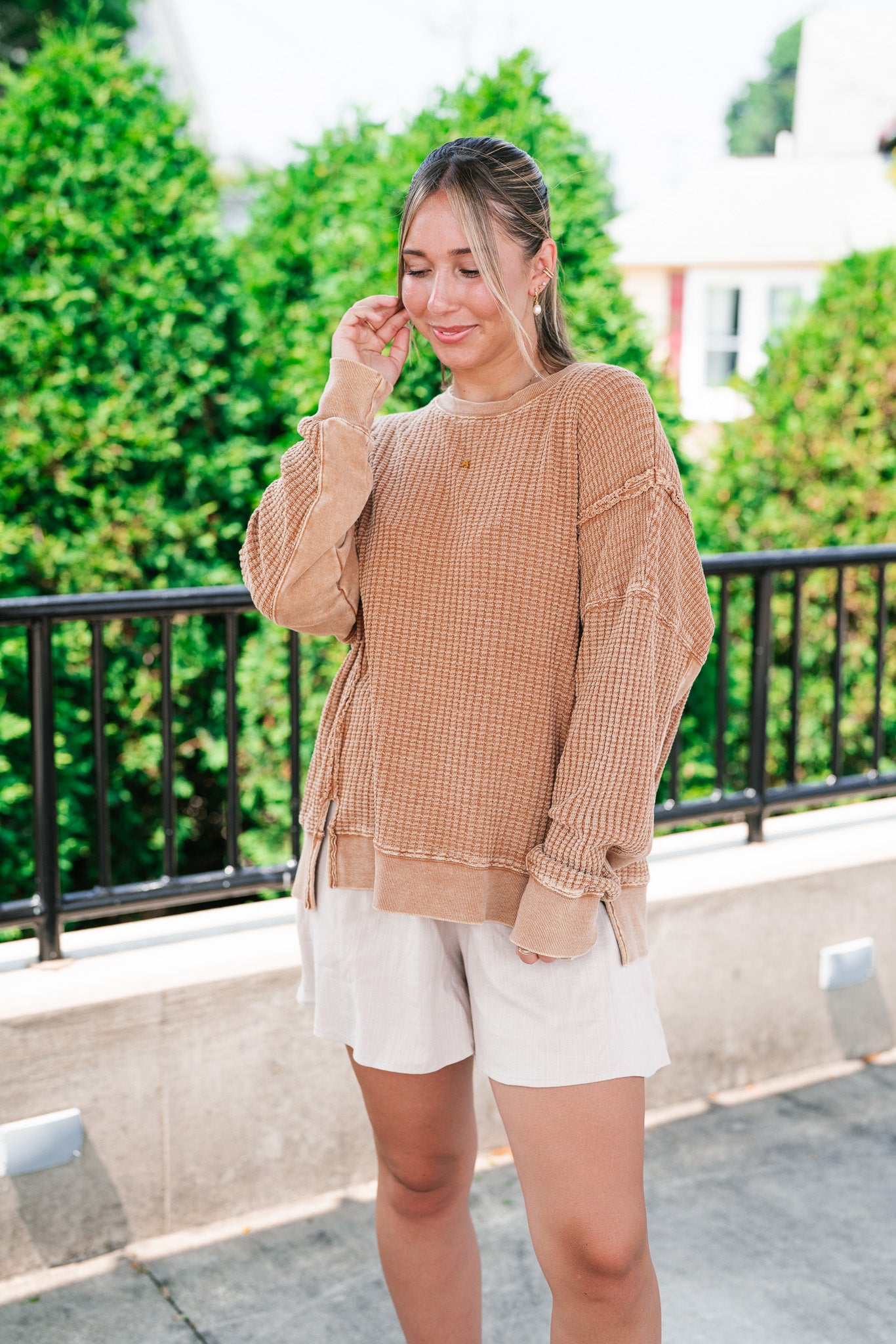 The Matilda Mineral Wash Waffle Knit Crewneck is your new off-duty favorite — perfectly cozy with a lived-in look you’ll love. Crafted from textured waffle knit fabric and finished with a vintage-inspired mineral wash, this relaxed crewneck delivers both comfort and effortless style. The soft, breathable knit and laid-back fit make it ideal for lounging, layering, or running errands in style. Pair it with your favorite denim, leggings, or joggers for an easy, everyday outfit with character.