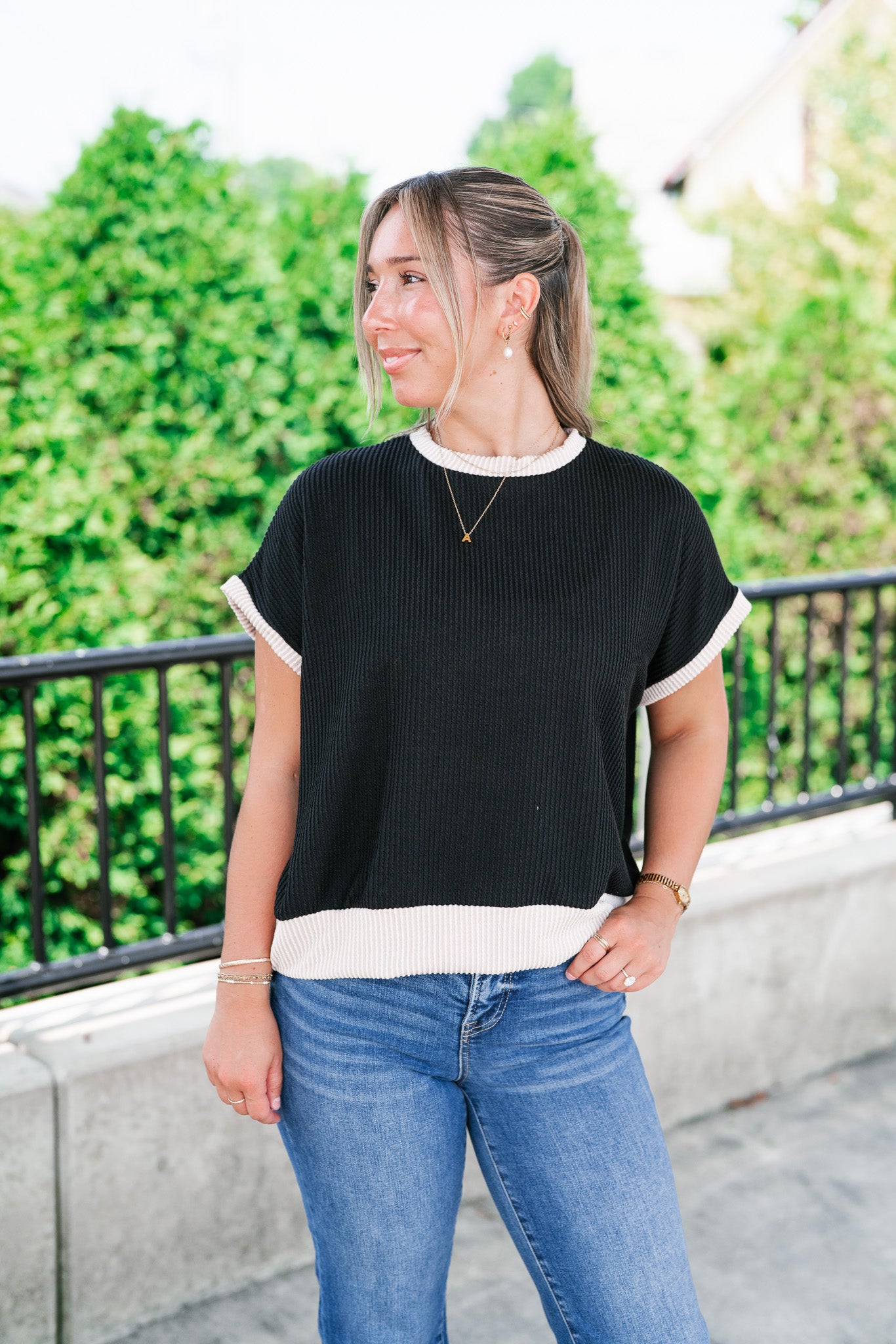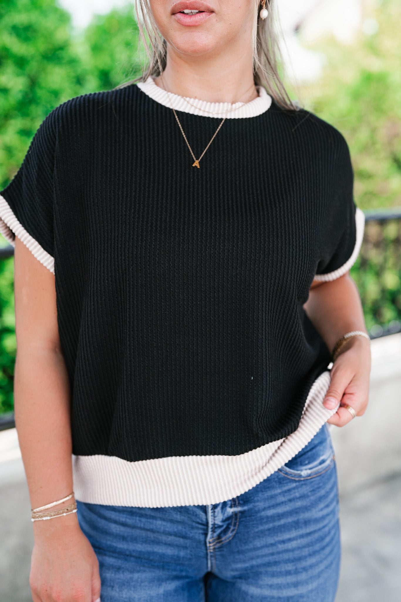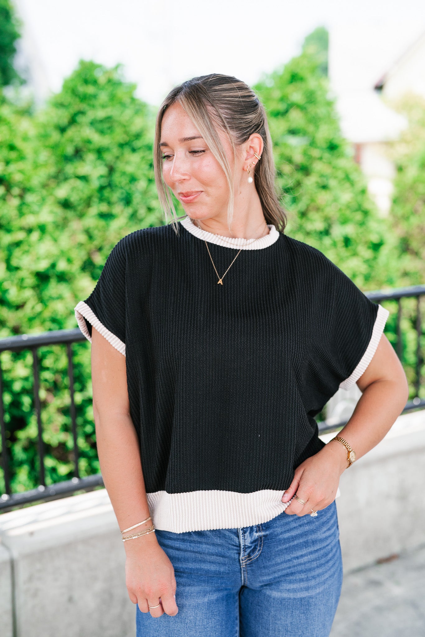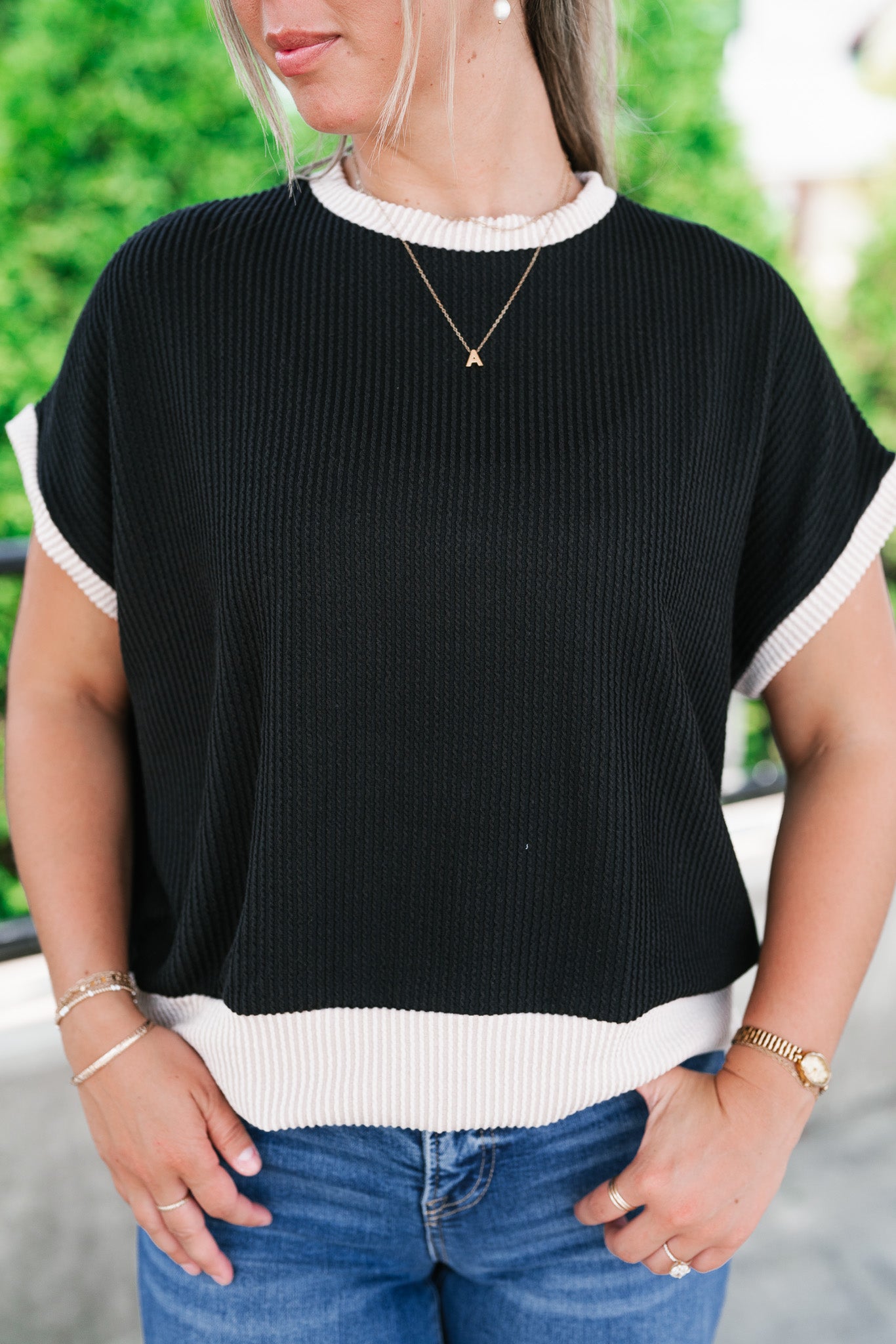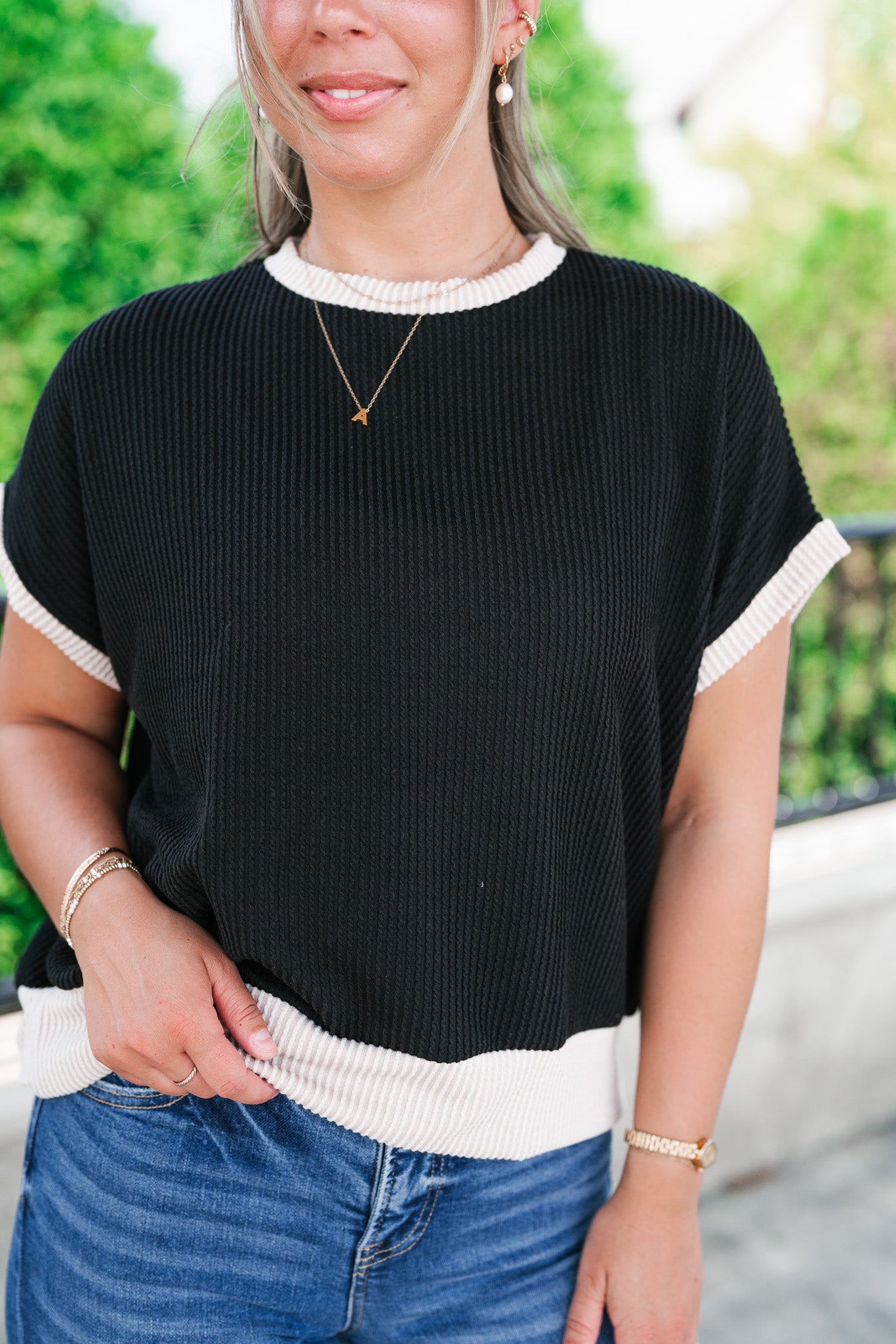 Elevate your everyday basics with the Soft Contrast Ribbed Top — the perfect blend of comfort and casual chic. Designed with a flattering ribbed texture and soft contrast trim, this versatile top features a relaxed fit, tank-inspired cap sleeves, and a slightly rounded neckline for a modern silhouette. Whether you're layering it under your favorite shacket or styling it solo with high-waisted denim, this go-to top adds a subtle statement to any outfit. Made with a lightweight stretch knit, it's your effortless pick for all-day wear.