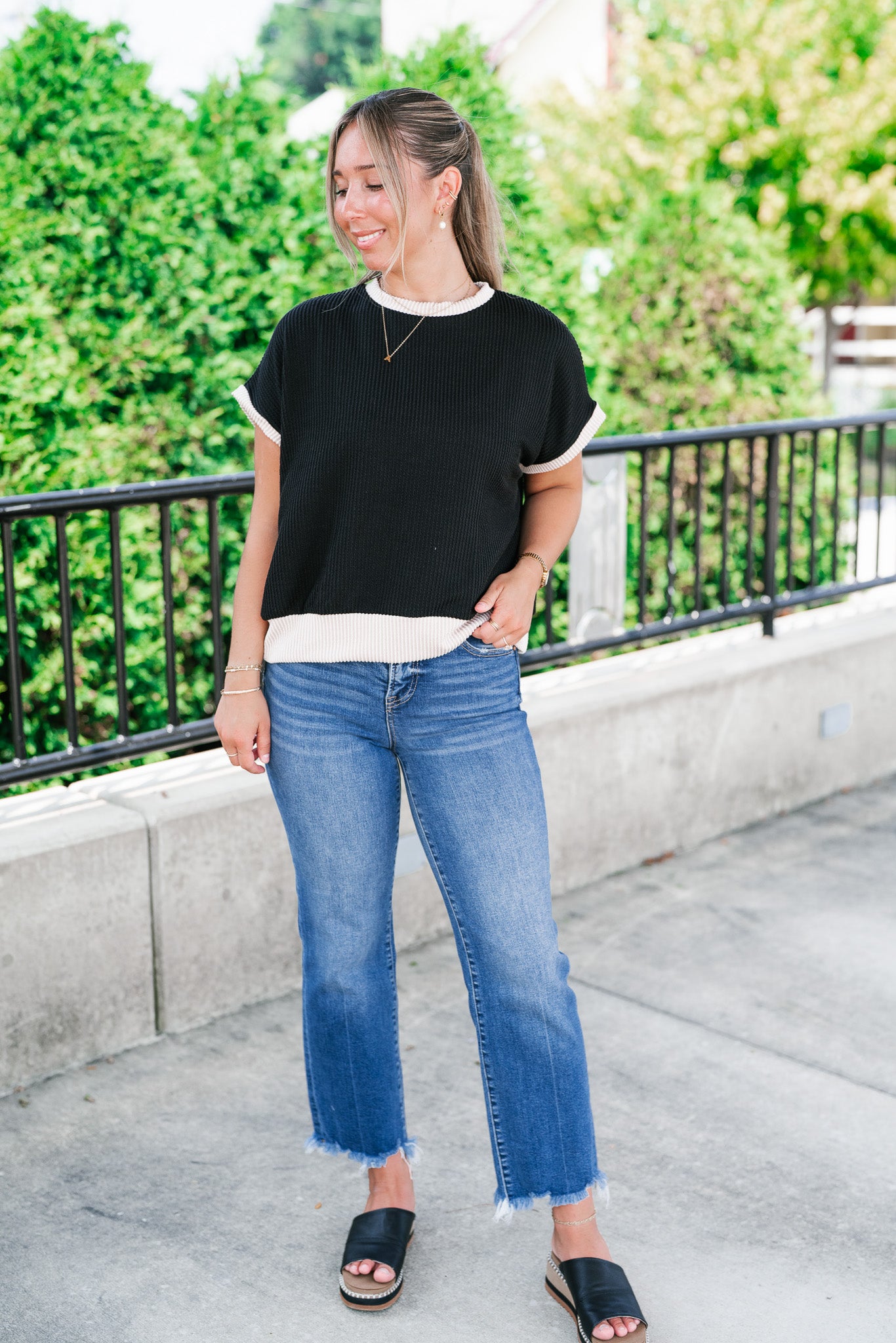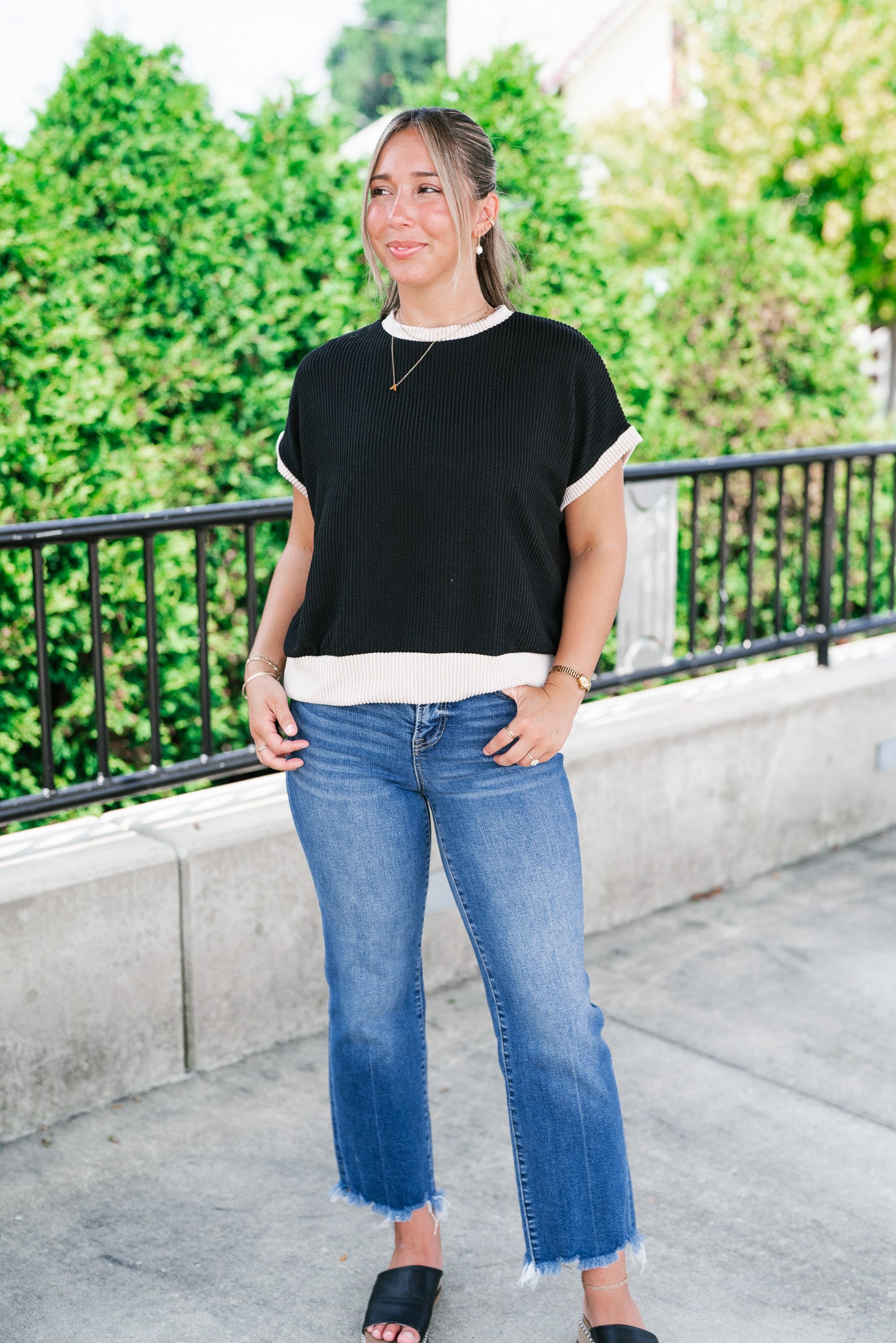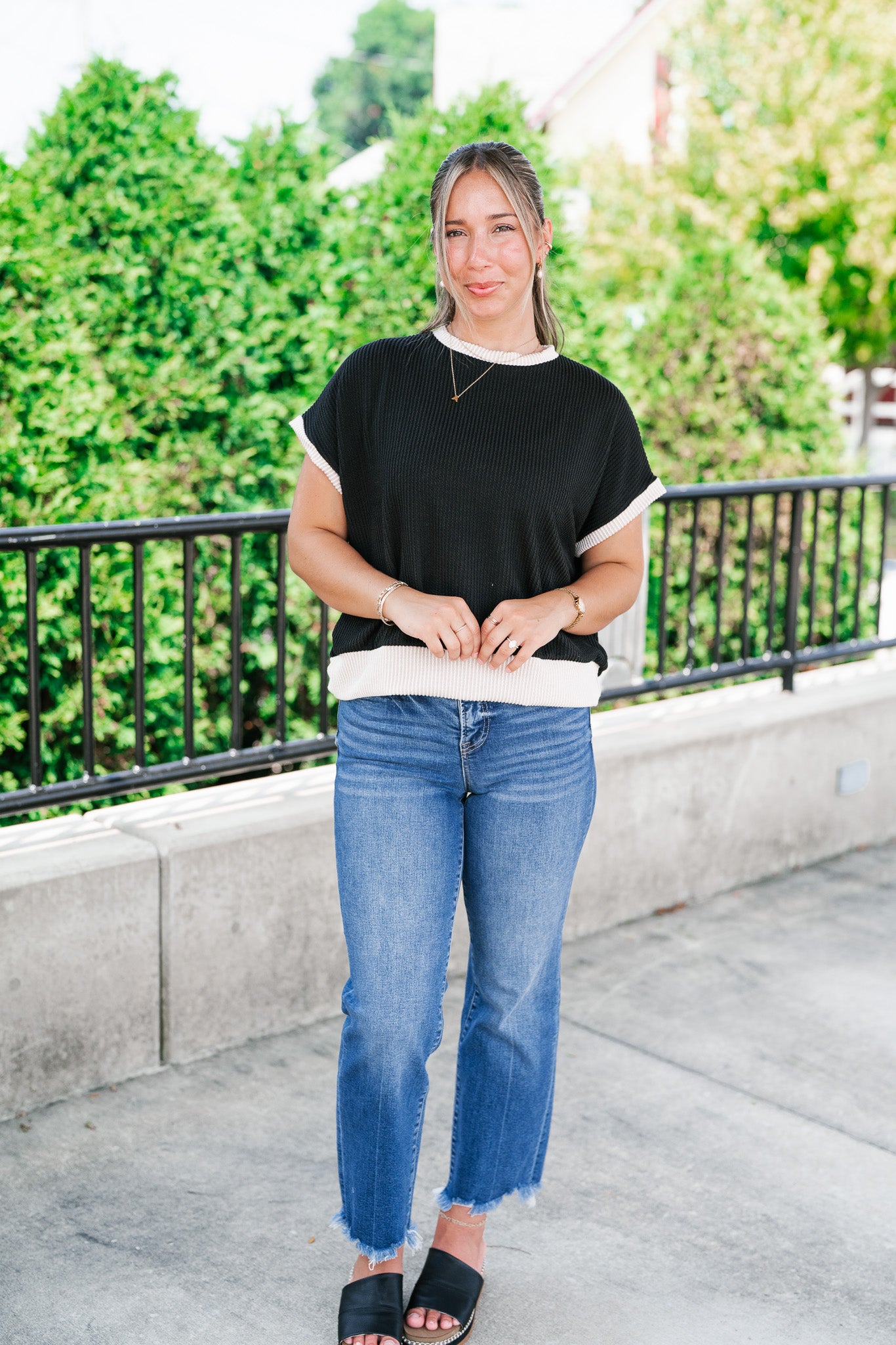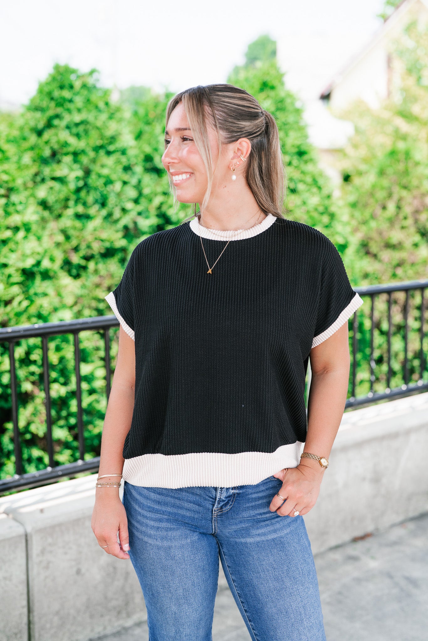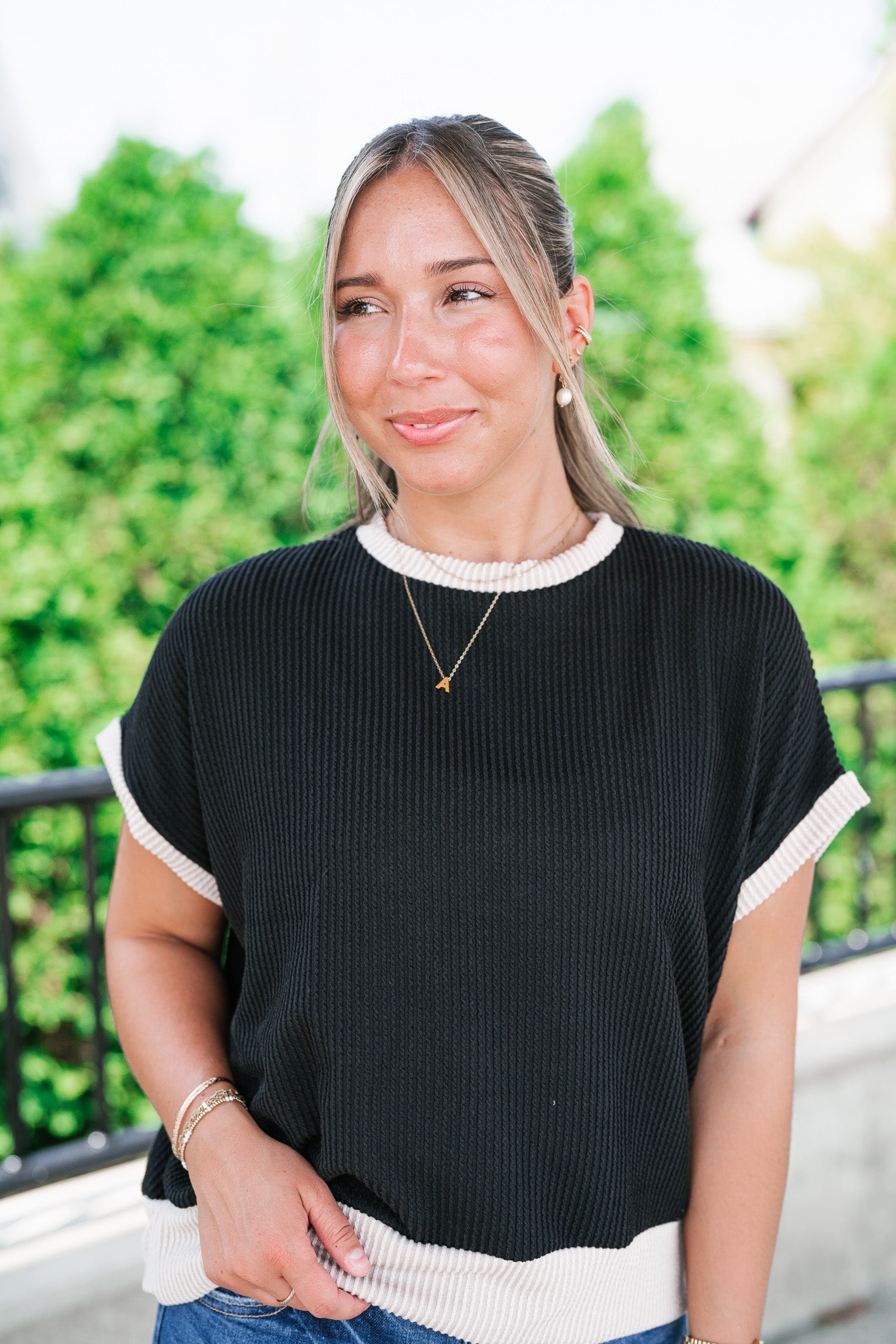 Elevate your everyday basics with the Soft Contrast Ribbed Top — the perfect blend of comfort and casual chic. Designed with a flattering ribbed texture and soft contrast trim, this versatile top features a relaxed fit, tank-inspired cap sleeves, and a slightly rounded neckline for a modern silhouette. Whether you're layering it under your favorite shacket or styling it solo with high-waisted denim, this go-to top adds a subtle statement to any outfit. Made with a lightweight stretch knit, it's your effortless pick for all-day wear.