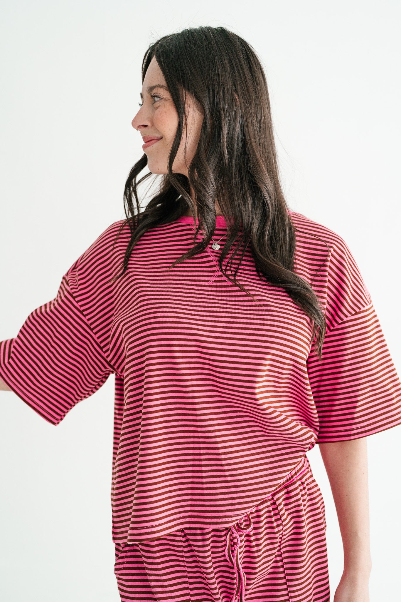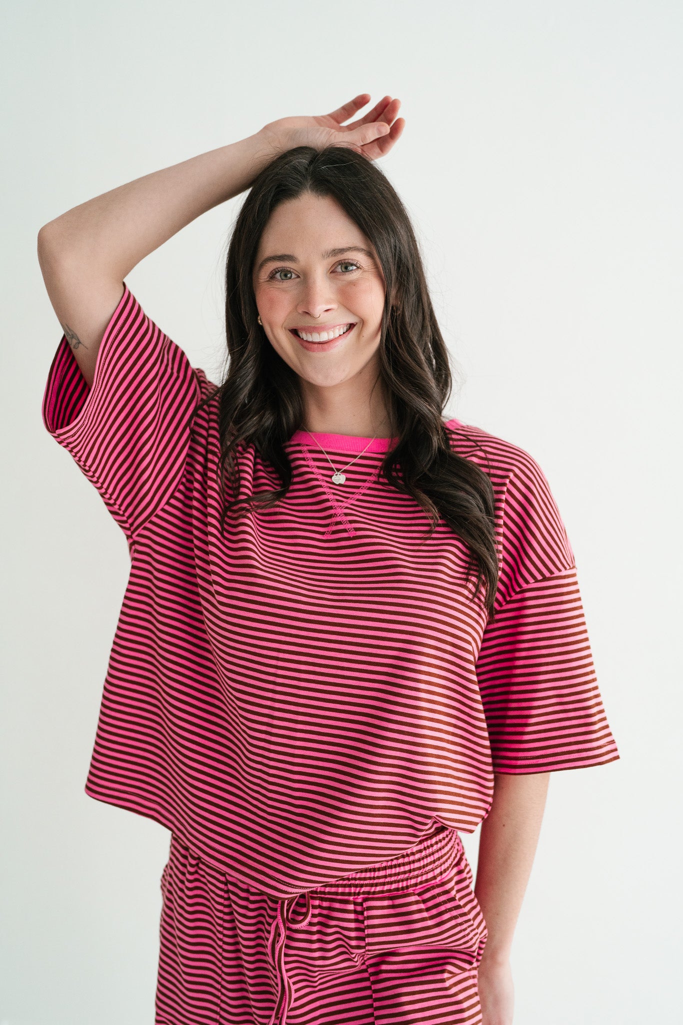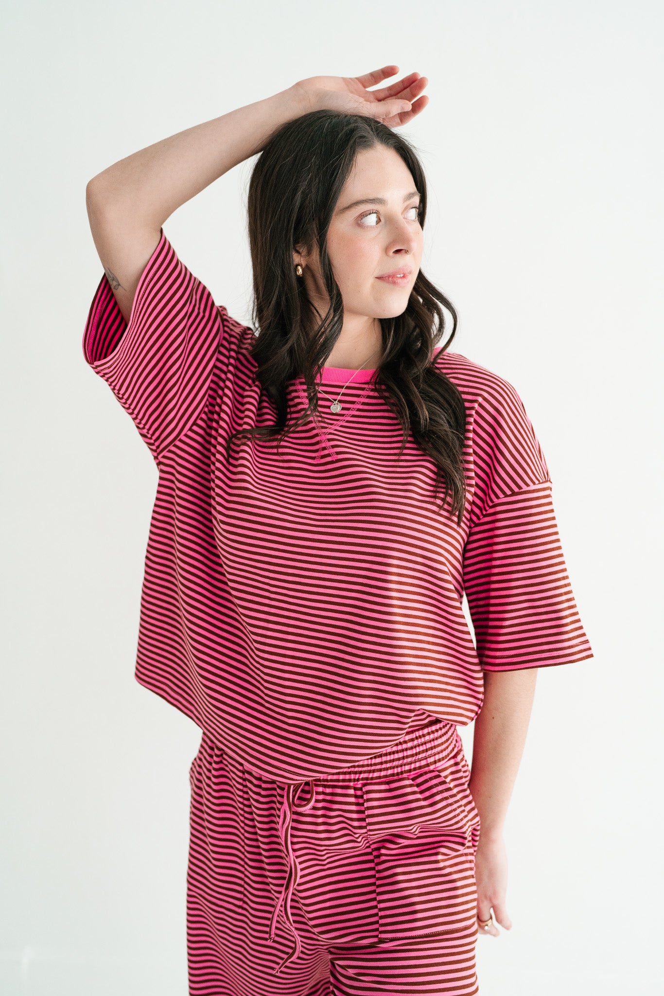Elevate your off-duty style with this effortless striped knit set, crafted from a premium, cool-touch ribbed fabric that breathes as you move. Featuring a relaxed, oversized short-sleeve top and matching wide-leg pants with an adjustable drawstring waist, this boho-inspired duo is the ultimate solution for airport style, lazy weekends, or chic lounging. It’s the perfect blend of cozy texture and a "Free People" aesthetic that ensures you look put-together without sacrificing a second of comfort.