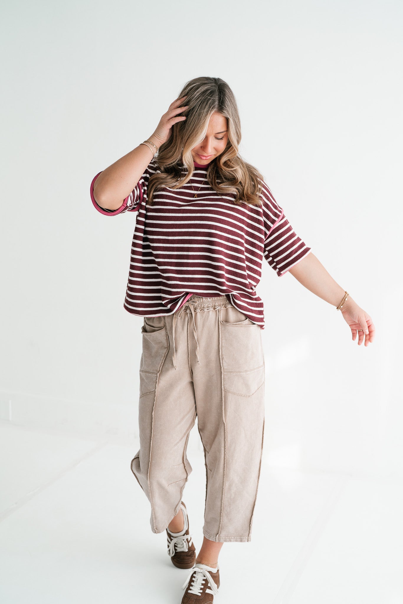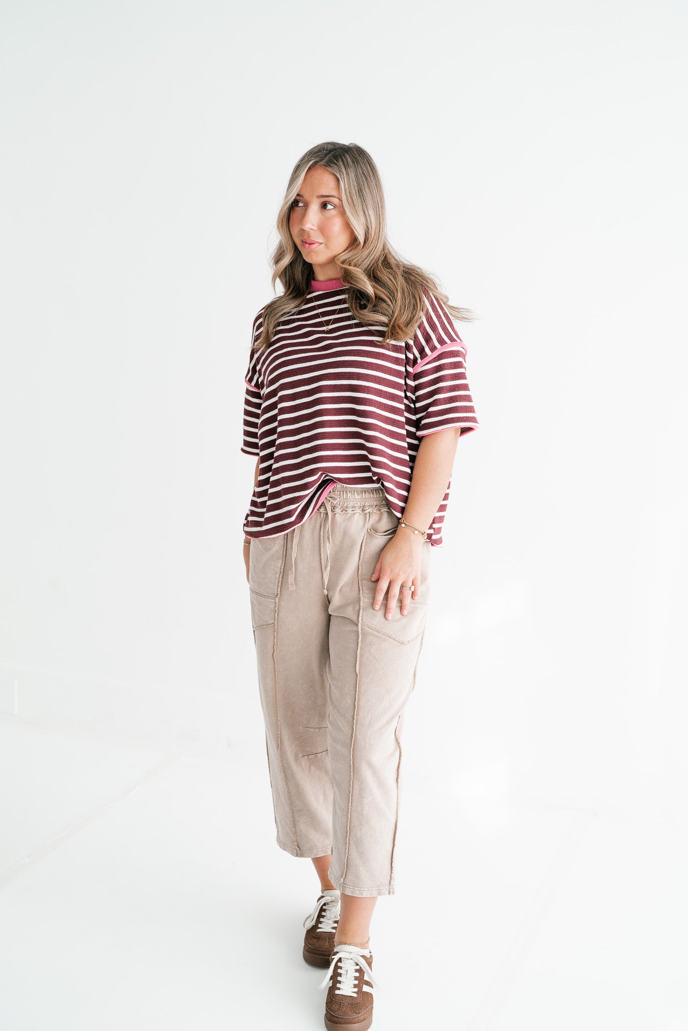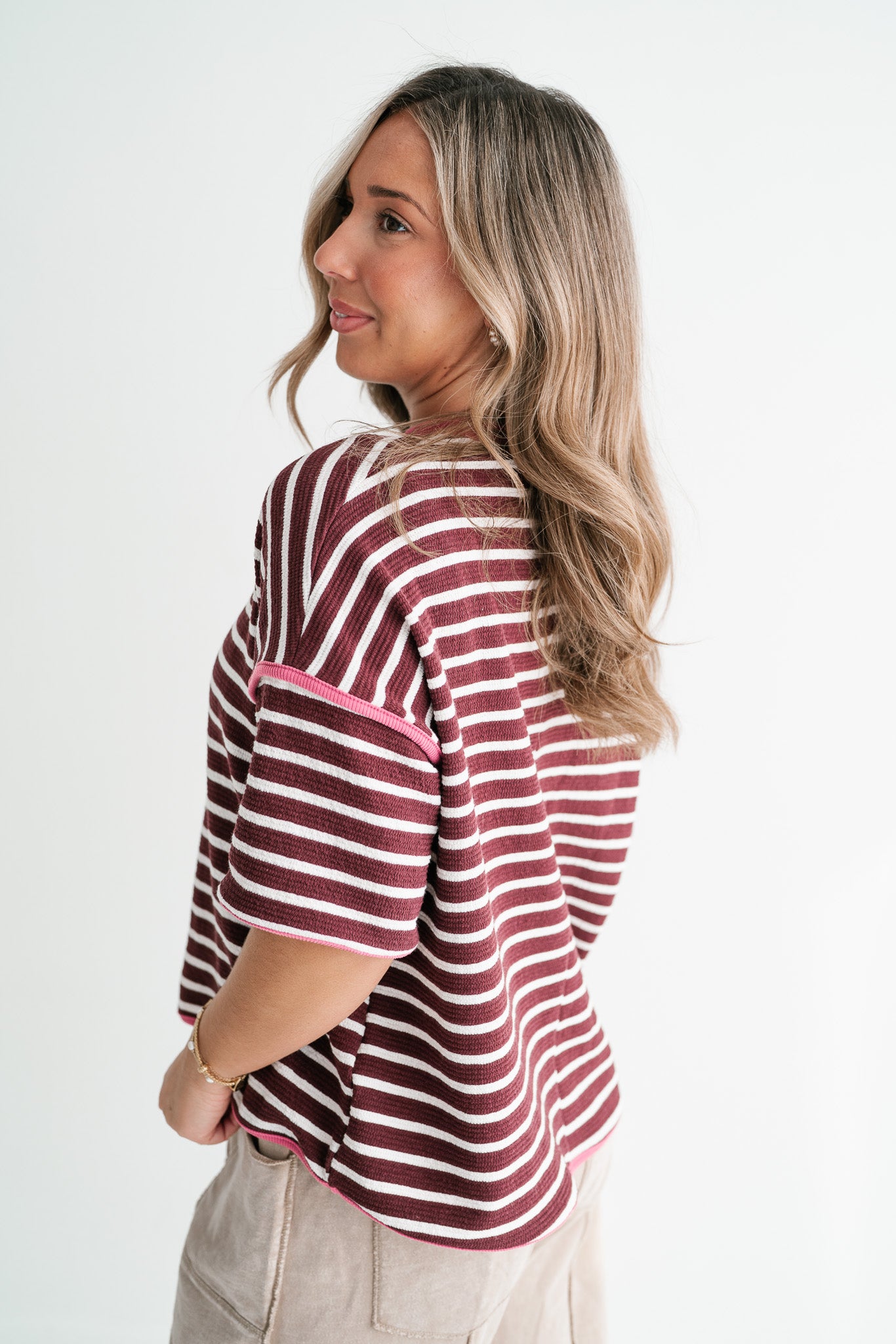 Daybreak Striped Top - Burgundy – Birch & Bell Boutique