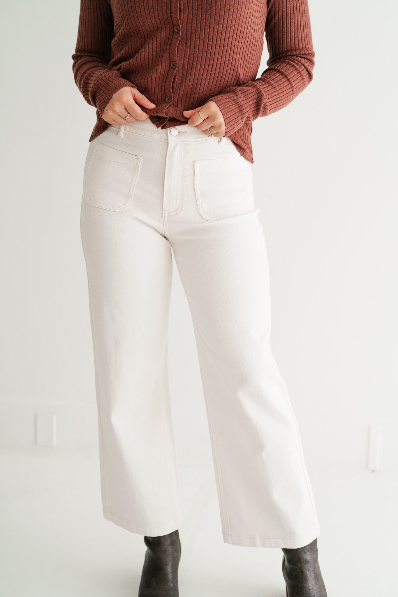 Step into effortless style with the Daylight Wide Leg Bottoms — your new go-to for chic comfort. Crafted from an off-white, denim-like material, these pants offer a soft yet structured feel that holds its shape while keeping things breathable. The high-rise waist and exaggerated wide-leg silhouette create a flattering, elongated look that pairs perfectly with anything from cropped tanks to cozy knits. Whether you're dressing them up for brunch or down for errands, these bottoms bring a modern, minimal aesthetic that feels fresh for every season.
