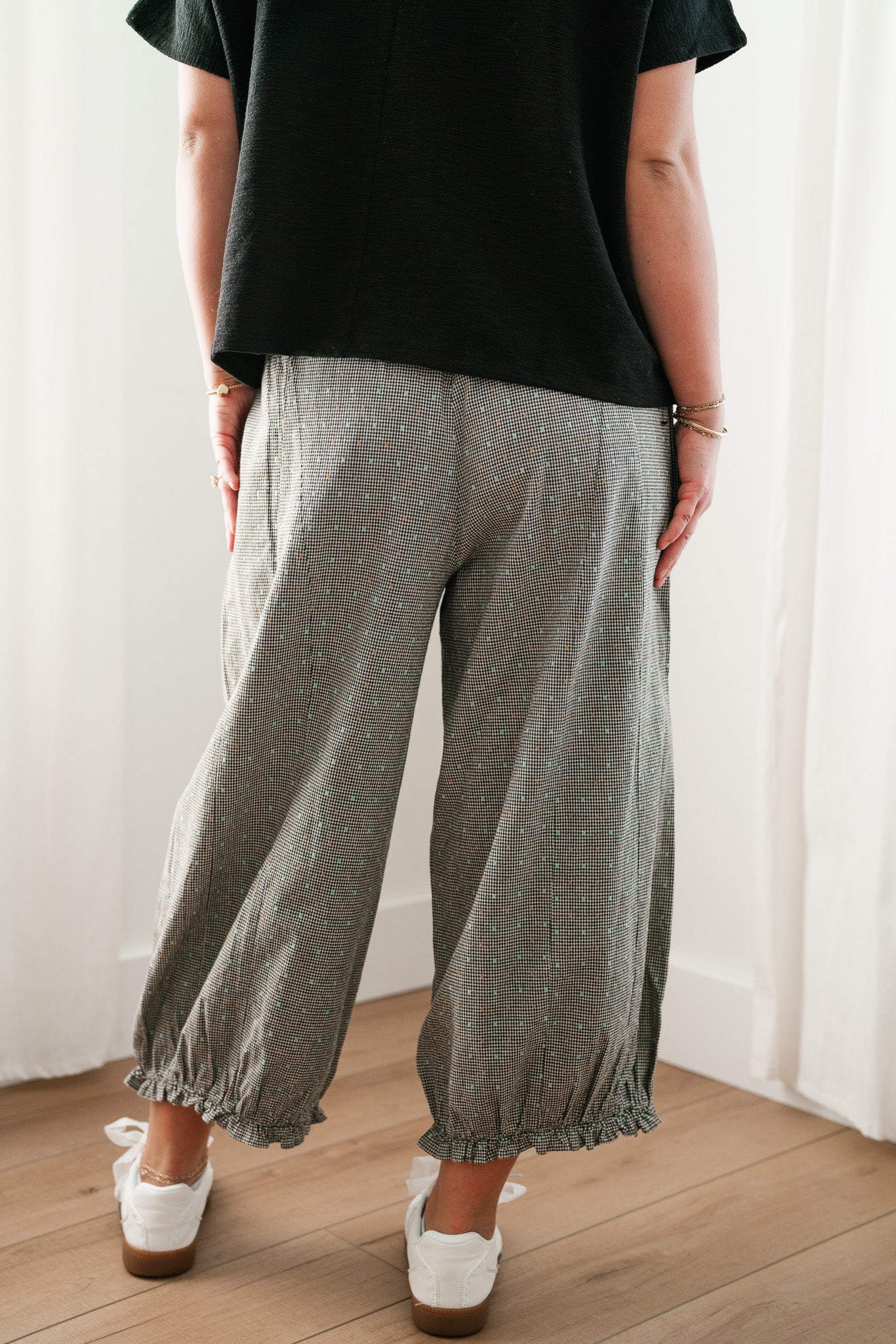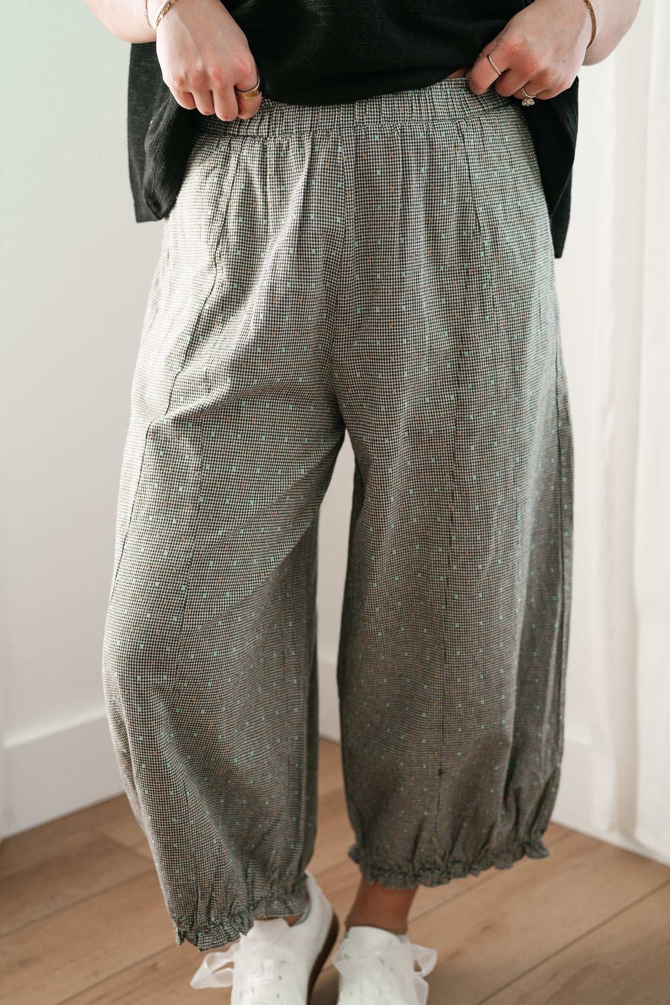 - Chic Bohemian Cuffs: Stylish elasticized ankle cuffs create a classic harem silhouette that highlights your favorite sandals or flats.