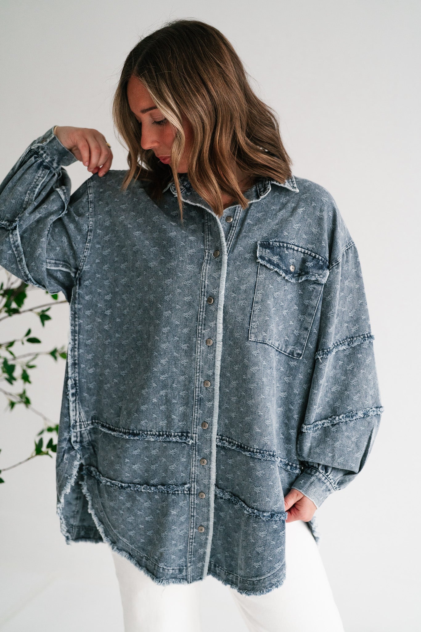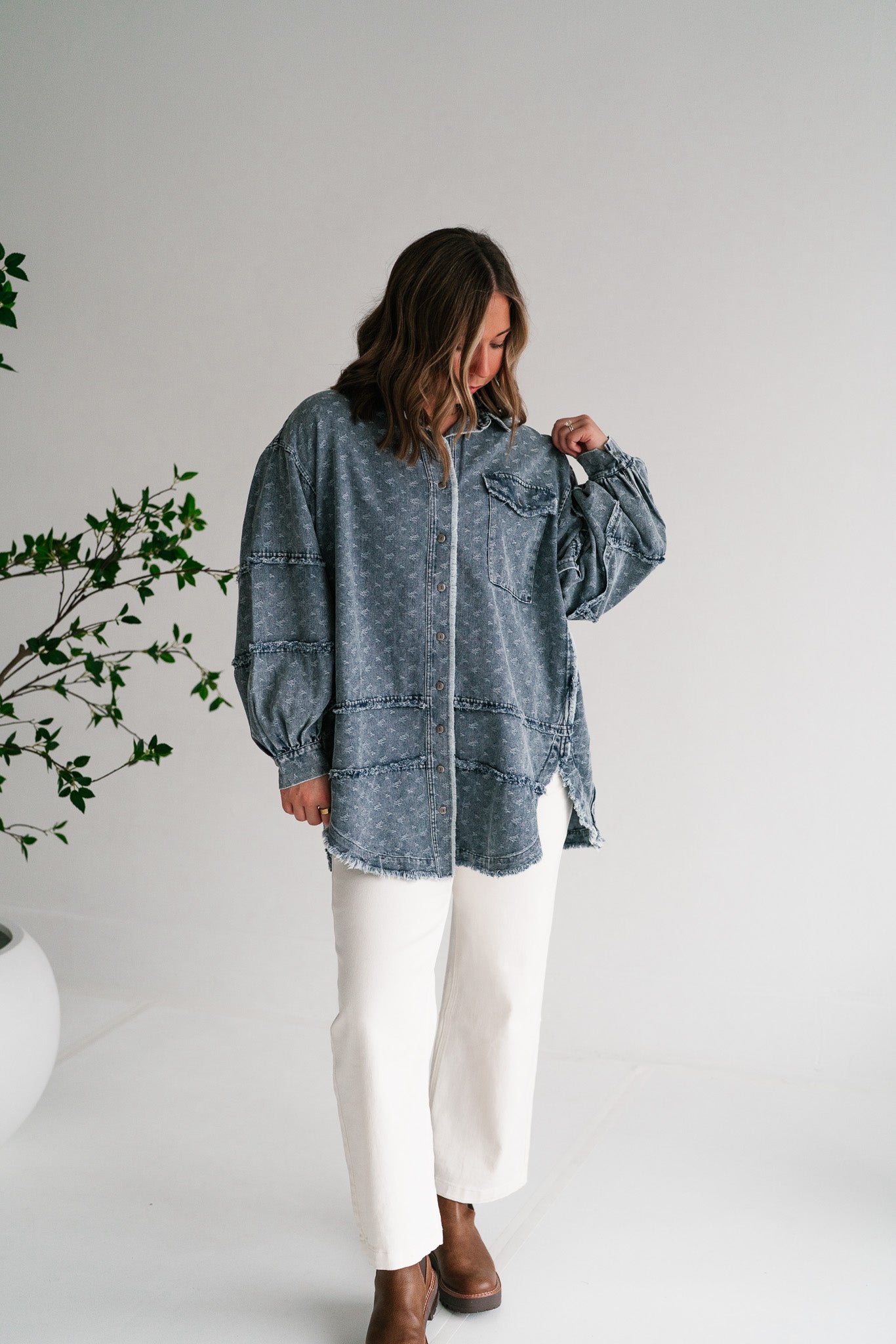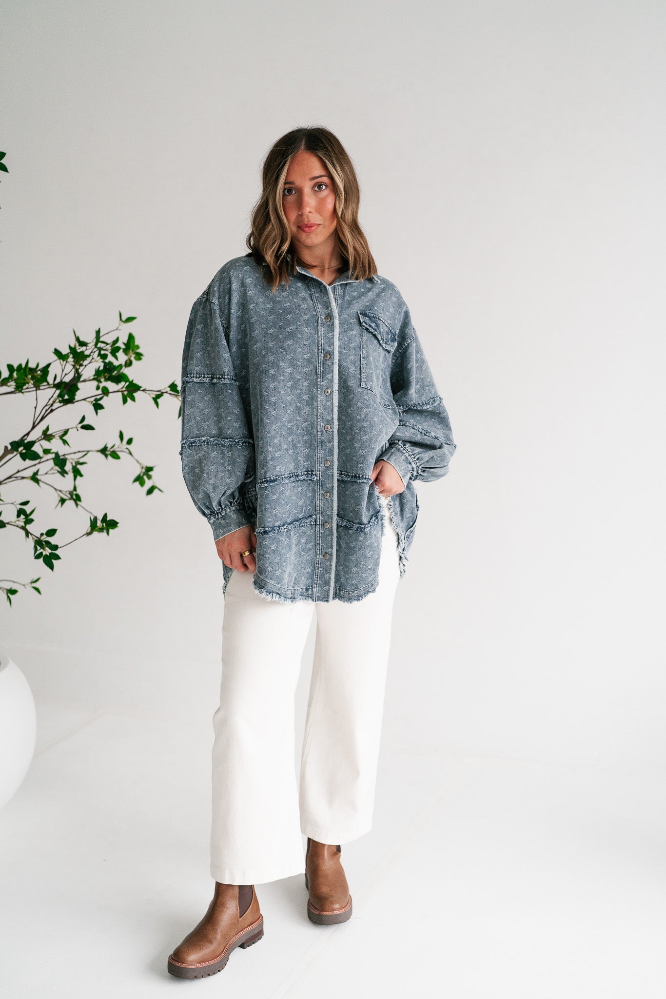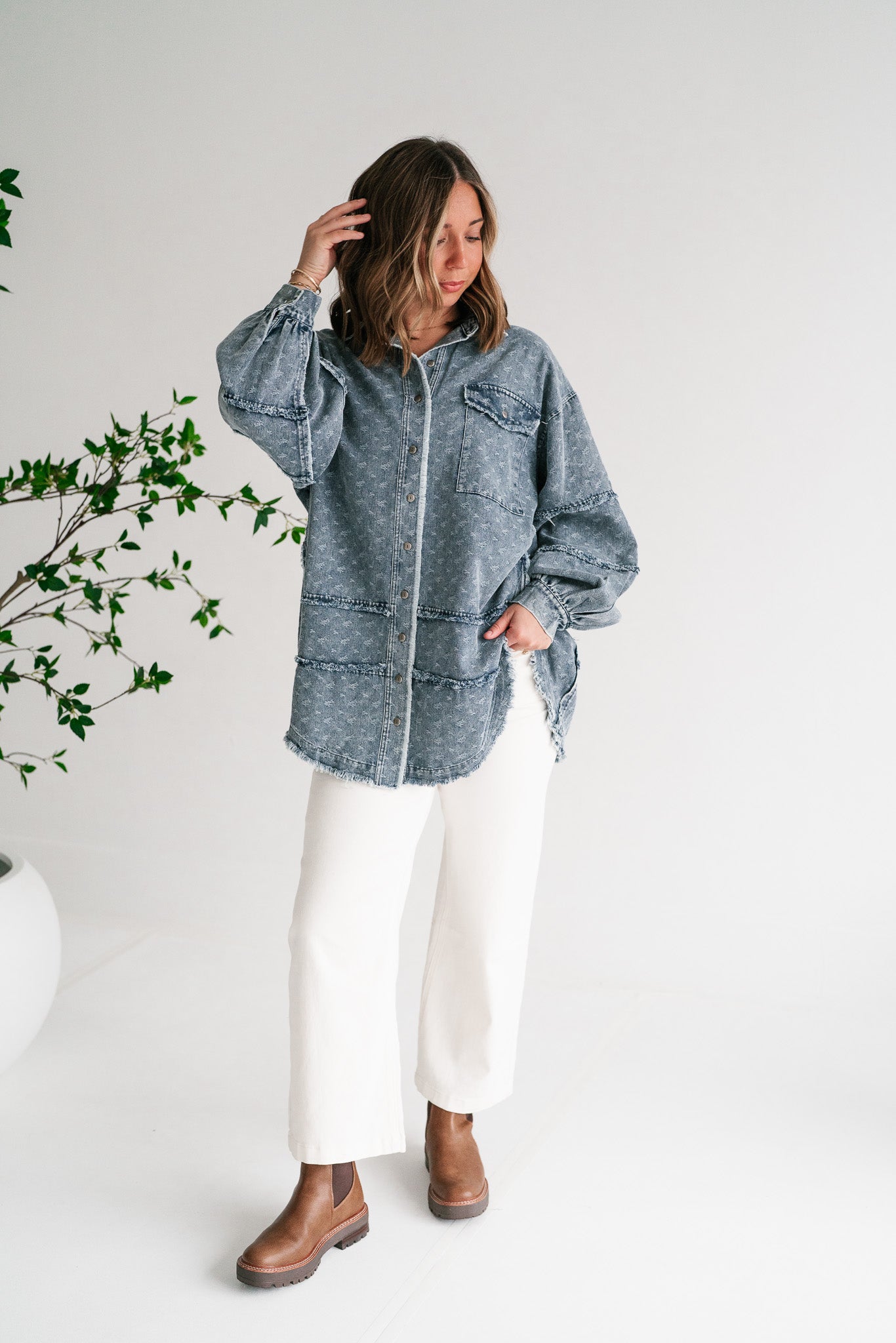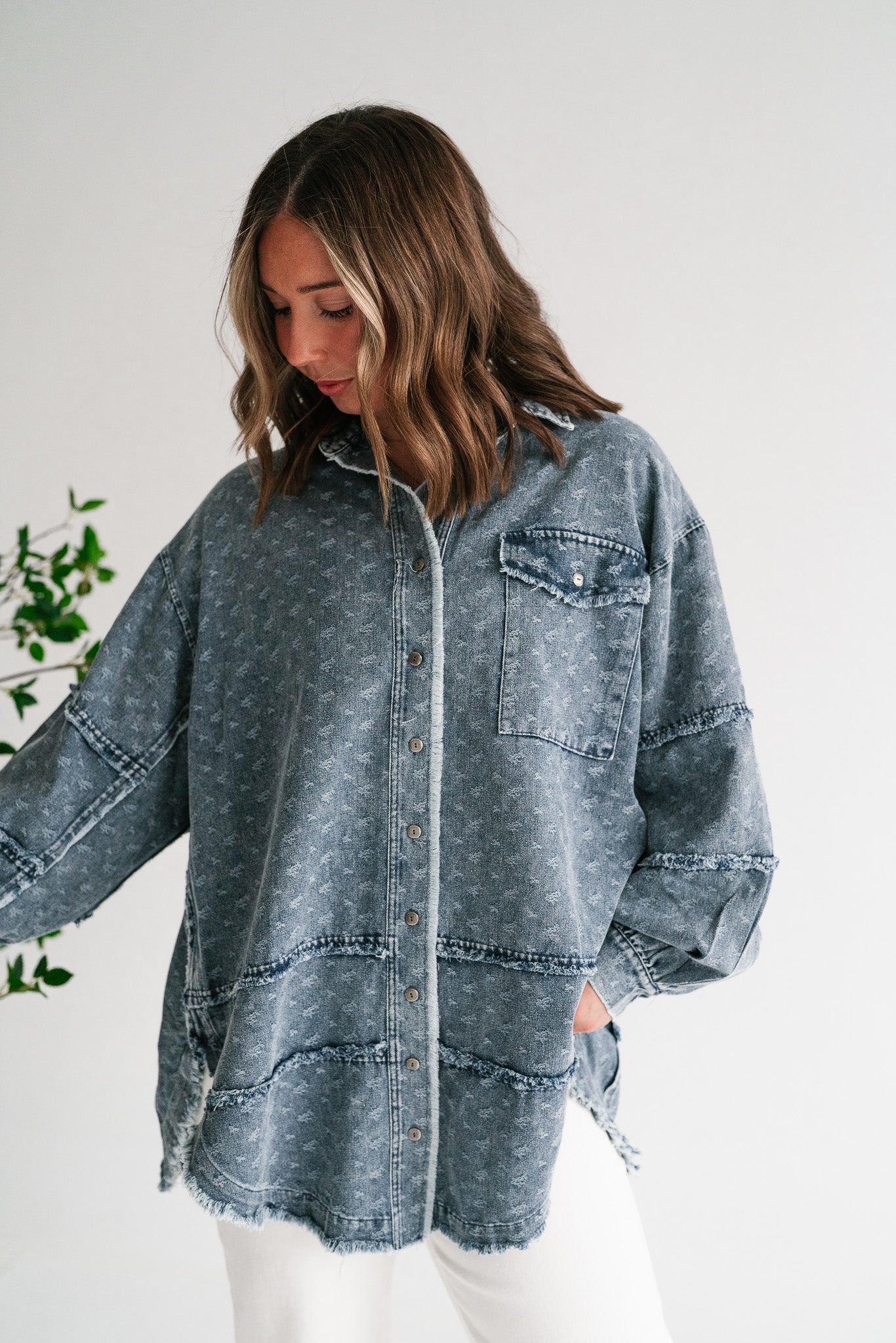 Western Skies Oversized Denim Shacket brings effortless cool to your wardrobe.