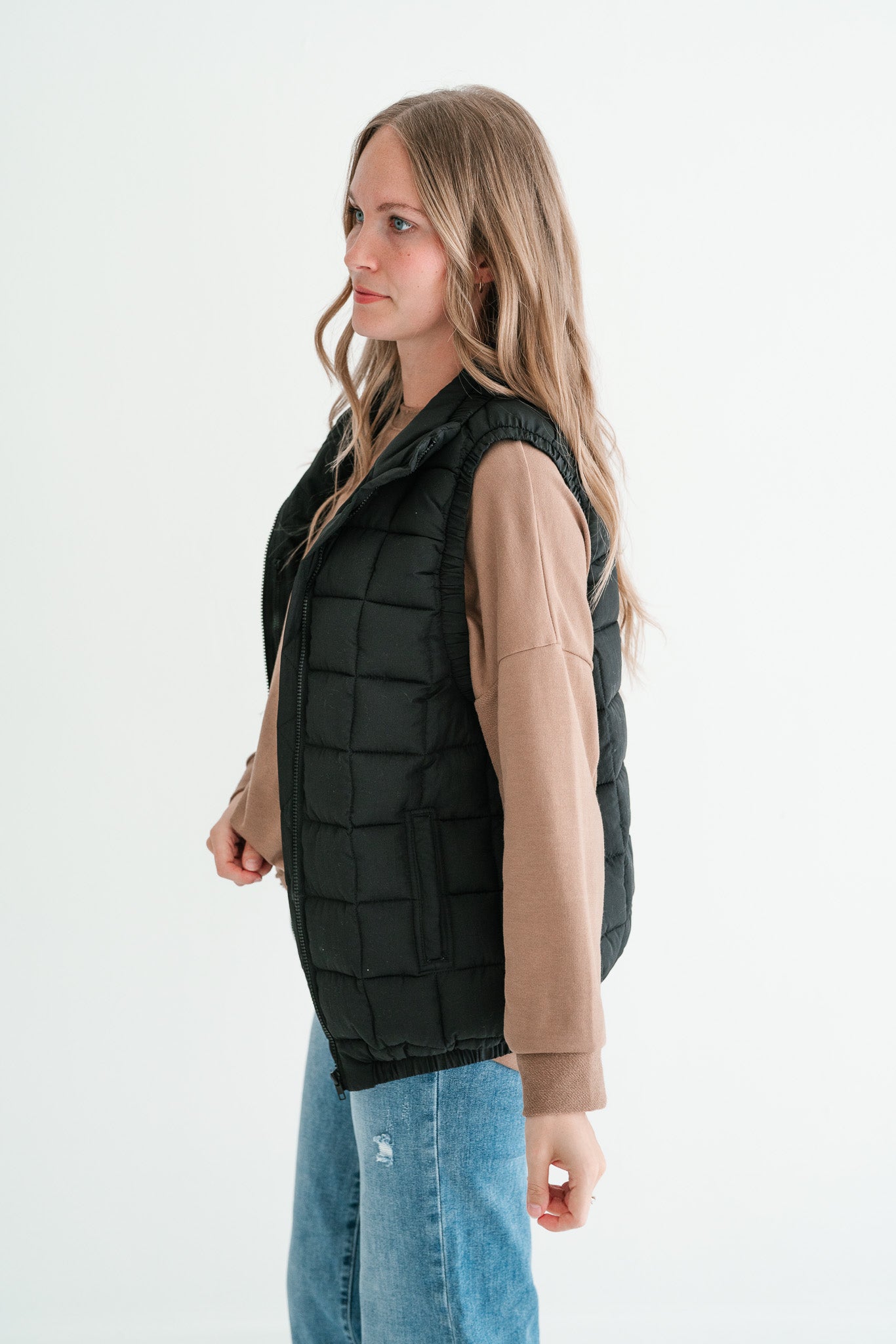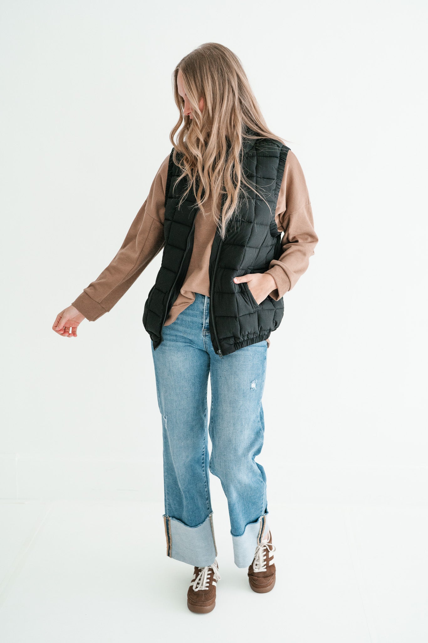 The Midnight Quilted Puffer Vest is your ultimate layering piece for effortless warmth and style. Crafted with a sleek quilted design, this vest offers lightweight insulation without the bulk, making it perfect for chilly mornings, weekend adventures, or layering over your favorite sweaters. Its versatile midnight hue pairs seamlessly with jeans, leggings, or casual dresses, while the practical front zipper and pockets provide functionality on the go. Elevate your cold-weather wardrobe with this essential puffer vest that combines comfort, style, and everyday versatility.