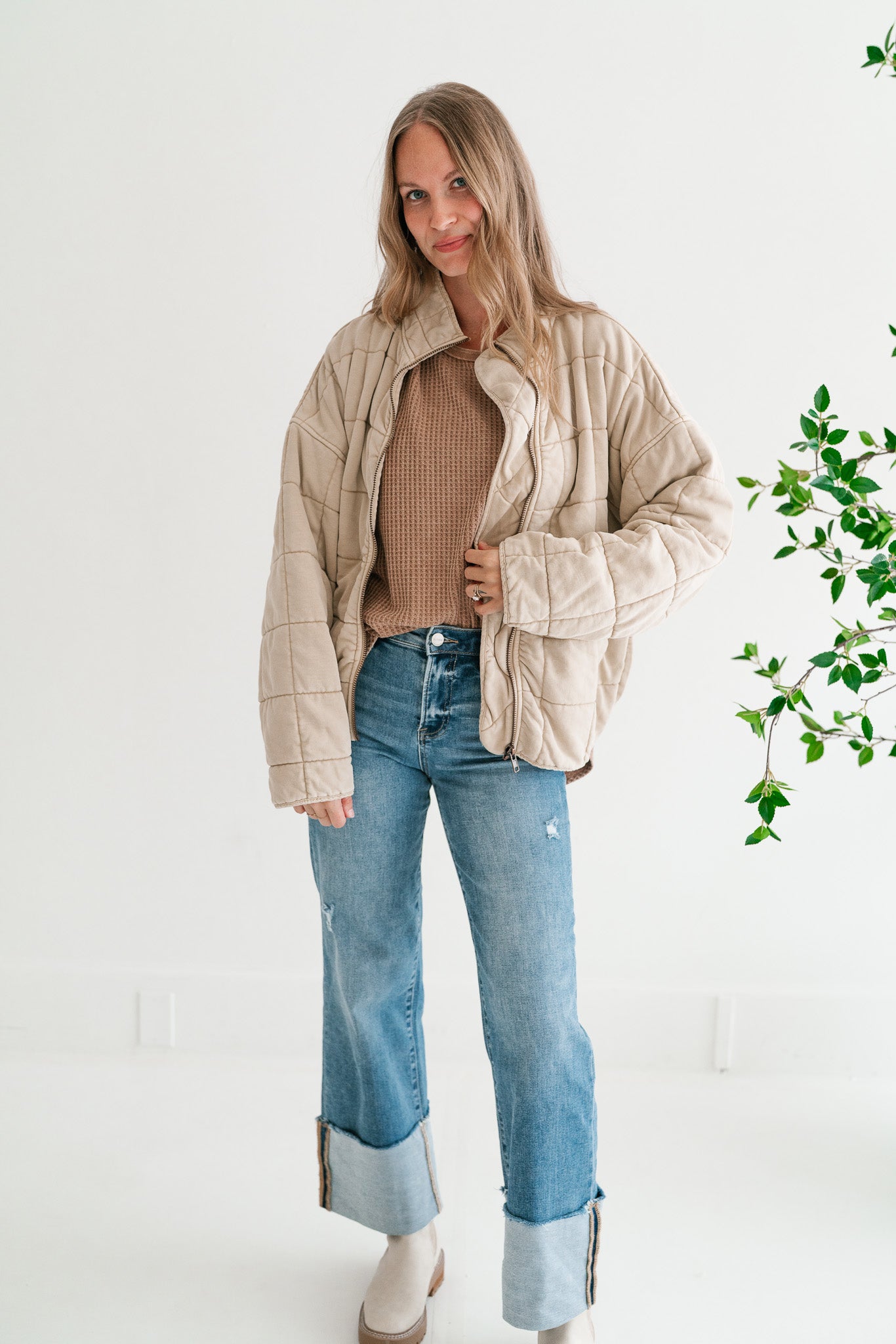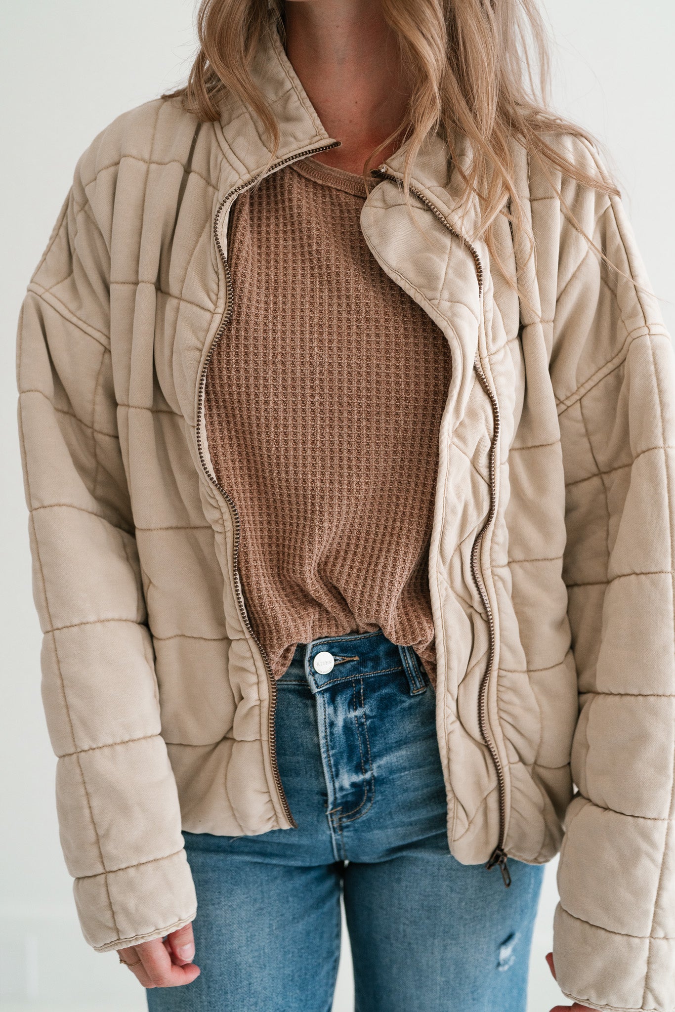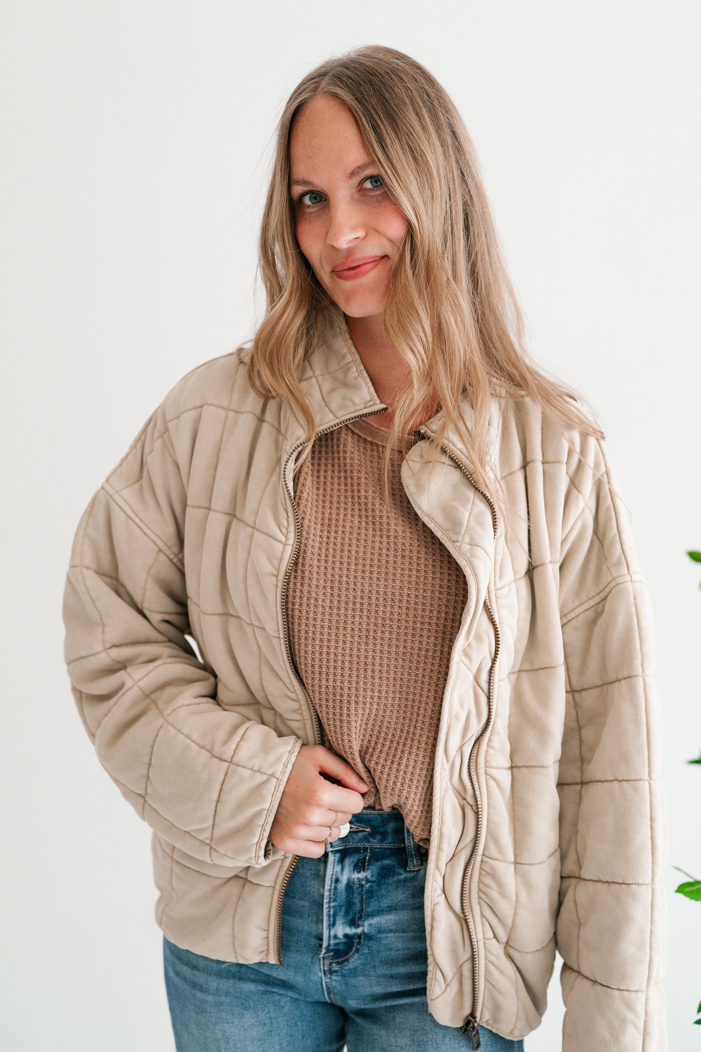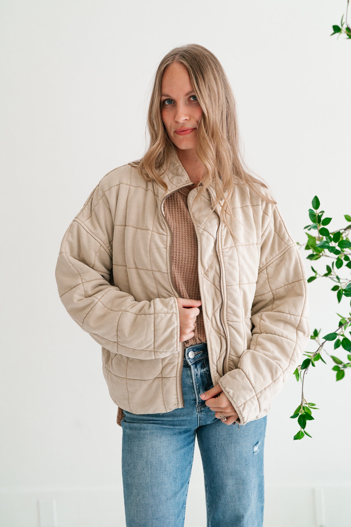 Stay cozy and stylish with our Stone Trail Quilted Jacket. Designed for the modern woman on the go, this versatile piece combines functionality with effortless style. Featuring a textured quilted pattern, this jacket offers a timeless look perfect for layering during cooler seasons. The relaxed fit ensures comfort without sacrificing sophistication, while the zipper front closure makes it easy to throw on and head out the door. Whether paired with your favorite jeans for a casual outing or layered over a chic dress, this jacket is your go-to for elevated everyday wear.
