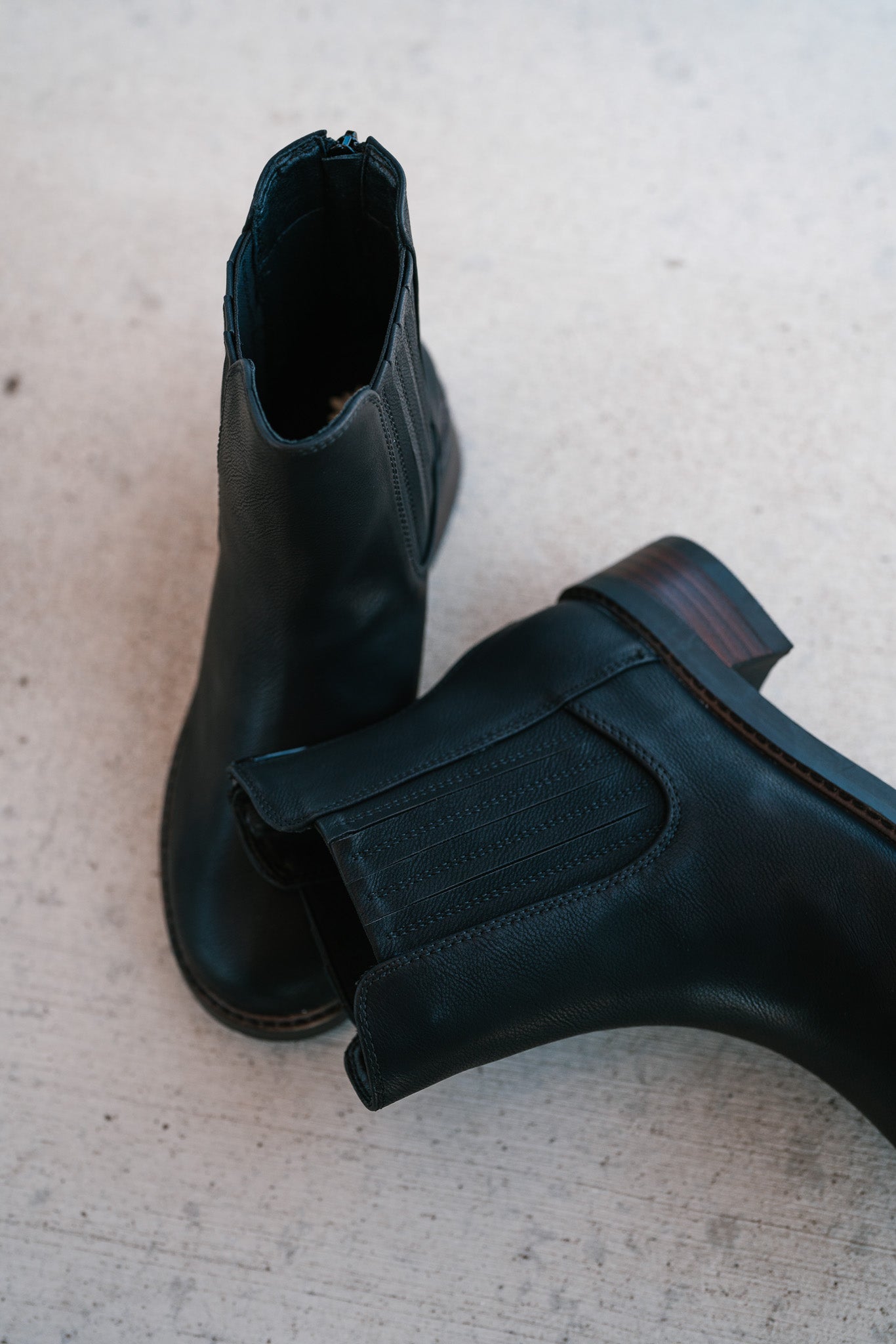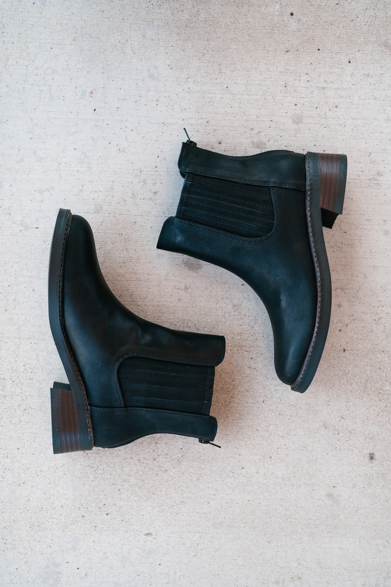 The Clyde Boot is the perfect blend of rugged and refined, offering a timeless silhouette with a modern twist. Crafted from smooth black faux leather, this ankle boot features classic Chelsea boot elastic side panels paired with a discreet back zipper for easy wear. The sturdy stacked wooden heel and contrast stitching around the sole provide both durability and a stylish edge. Whether dressing up or keeping it casual, the Clyde Boot is a versatile staple for any fall or winter wardrobe.