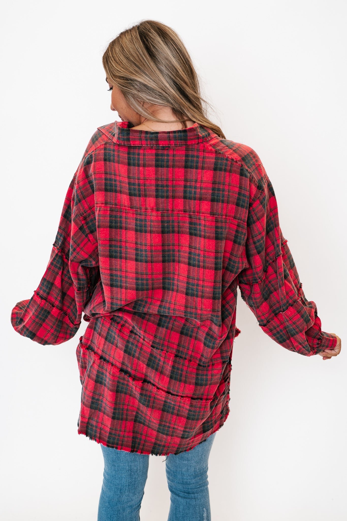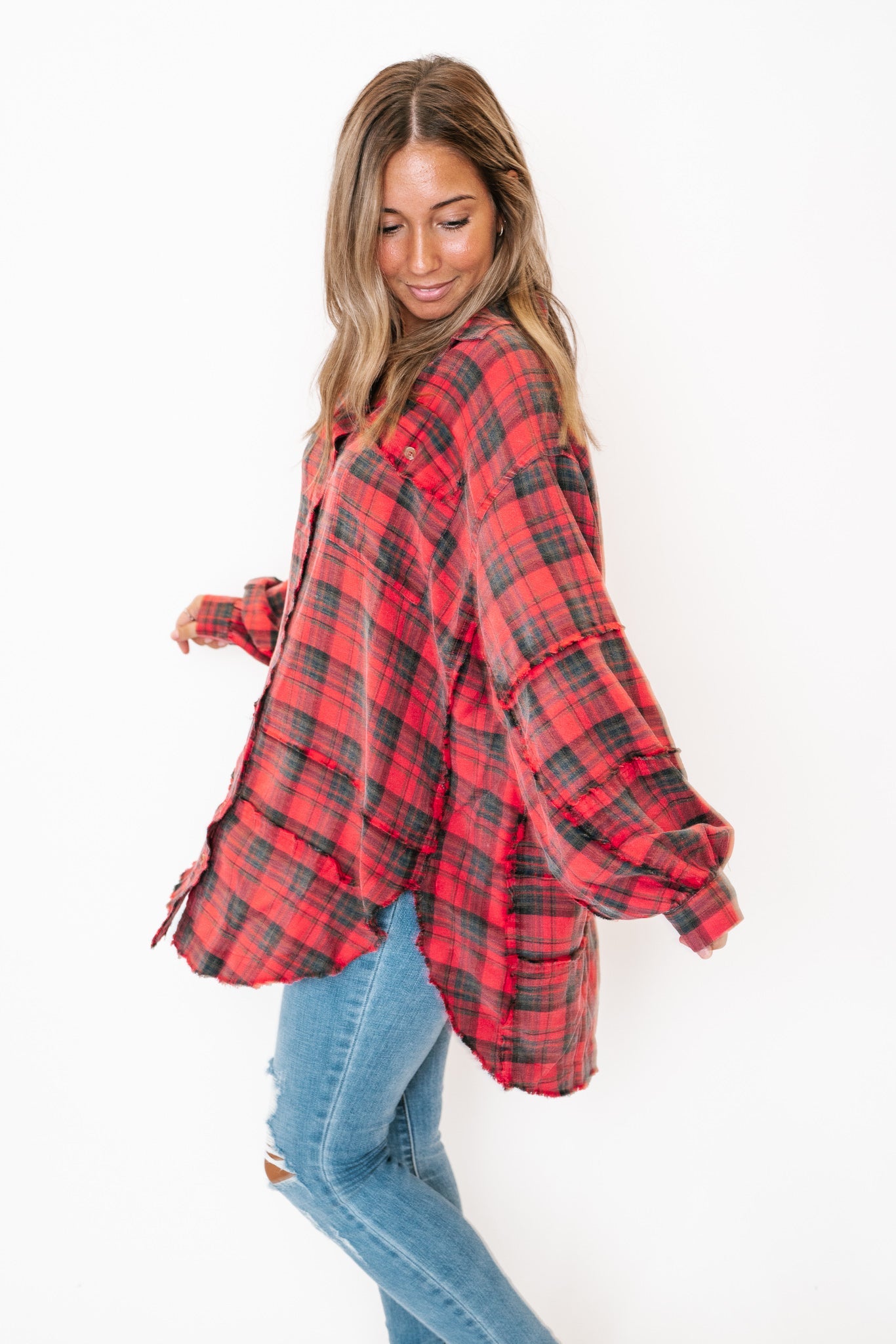 This Alyssa Plaid Flannel is a fall essential! This oversized flannel features distressing throughout, balloon sleeves, dainty buttons, and a collared neckline. Pair with black denim or leggings for a cozy fall look!