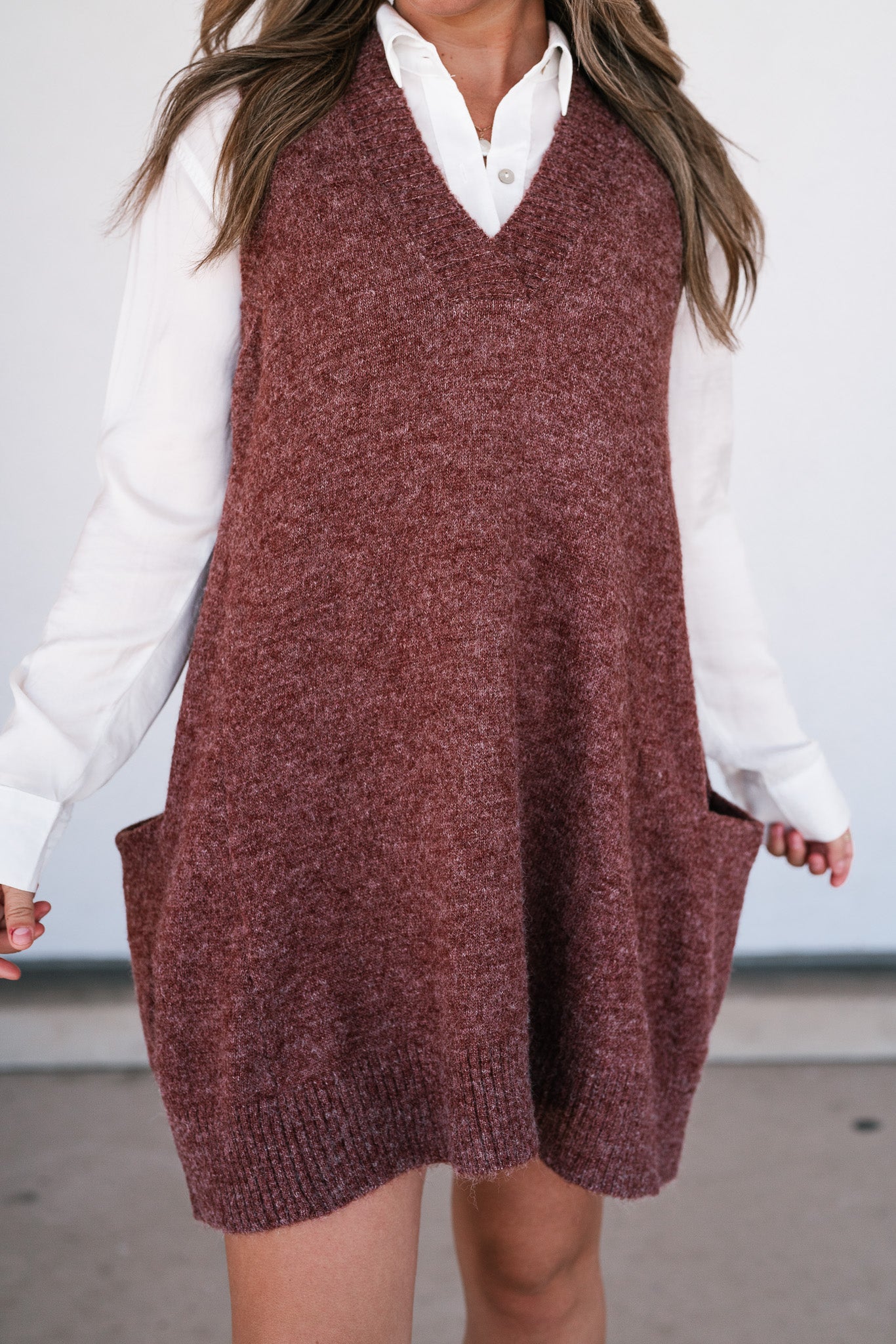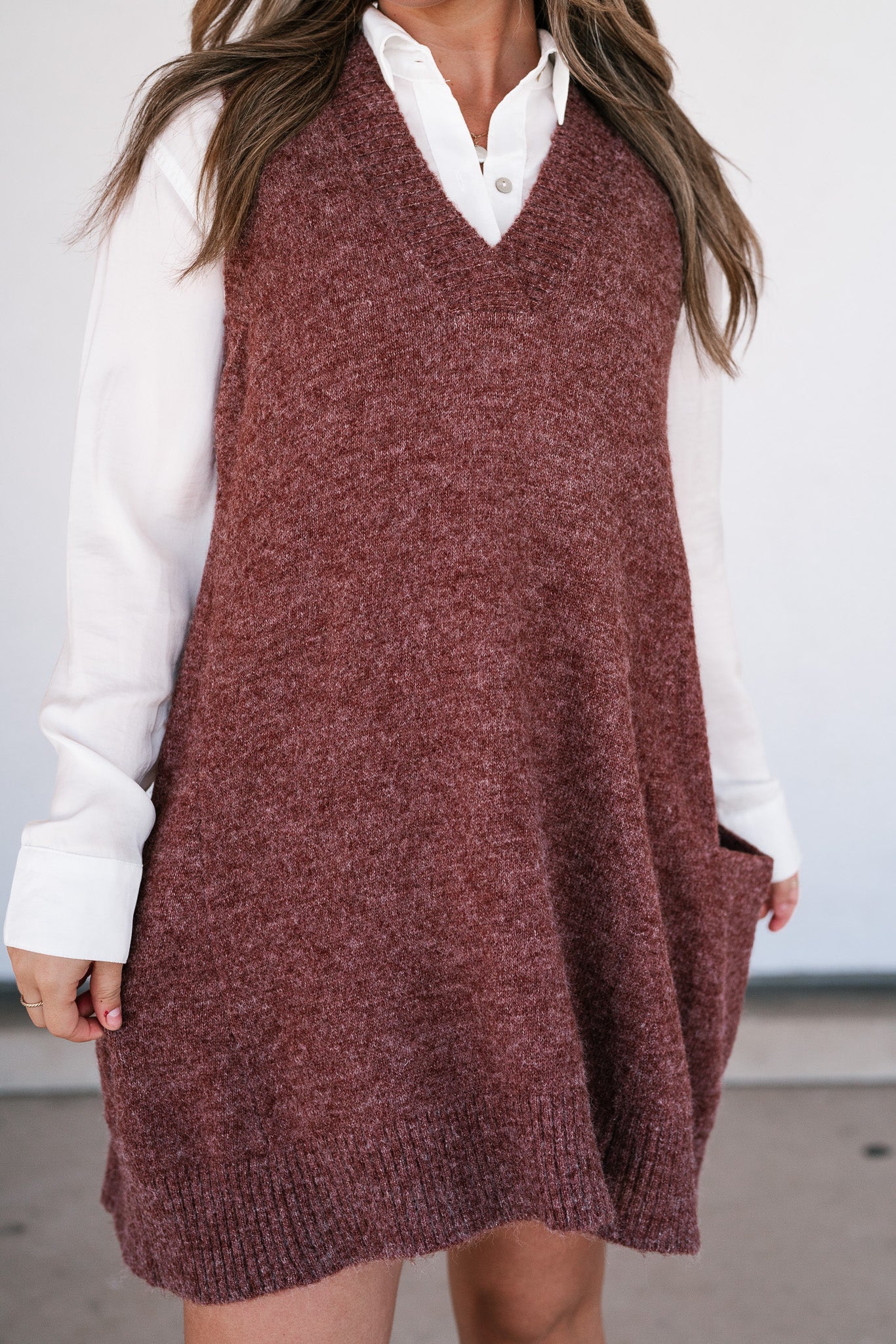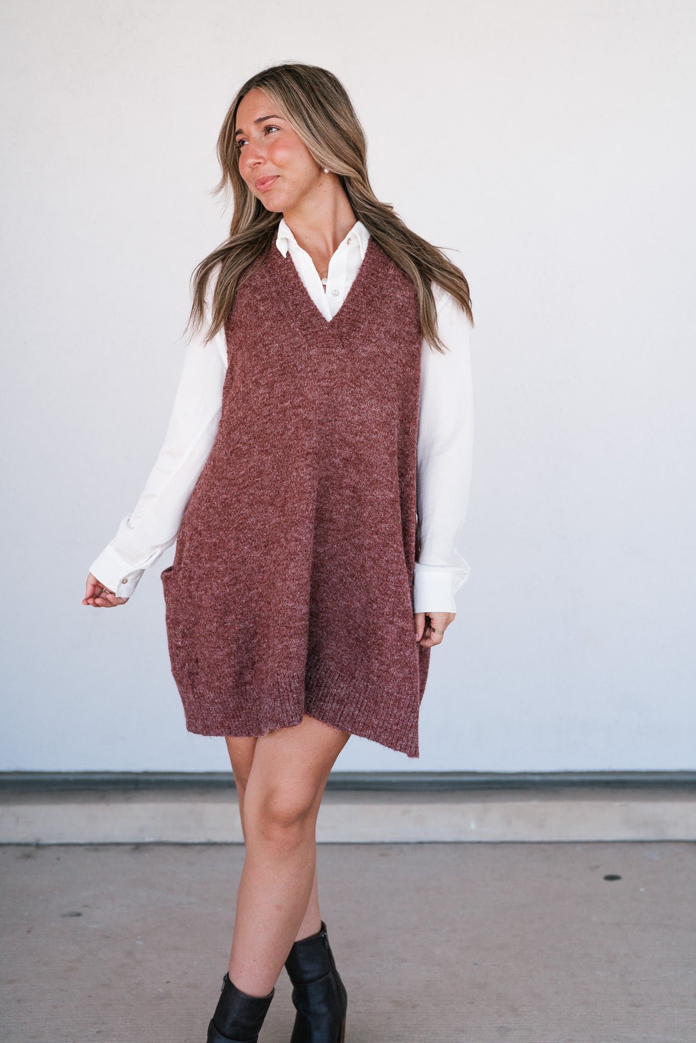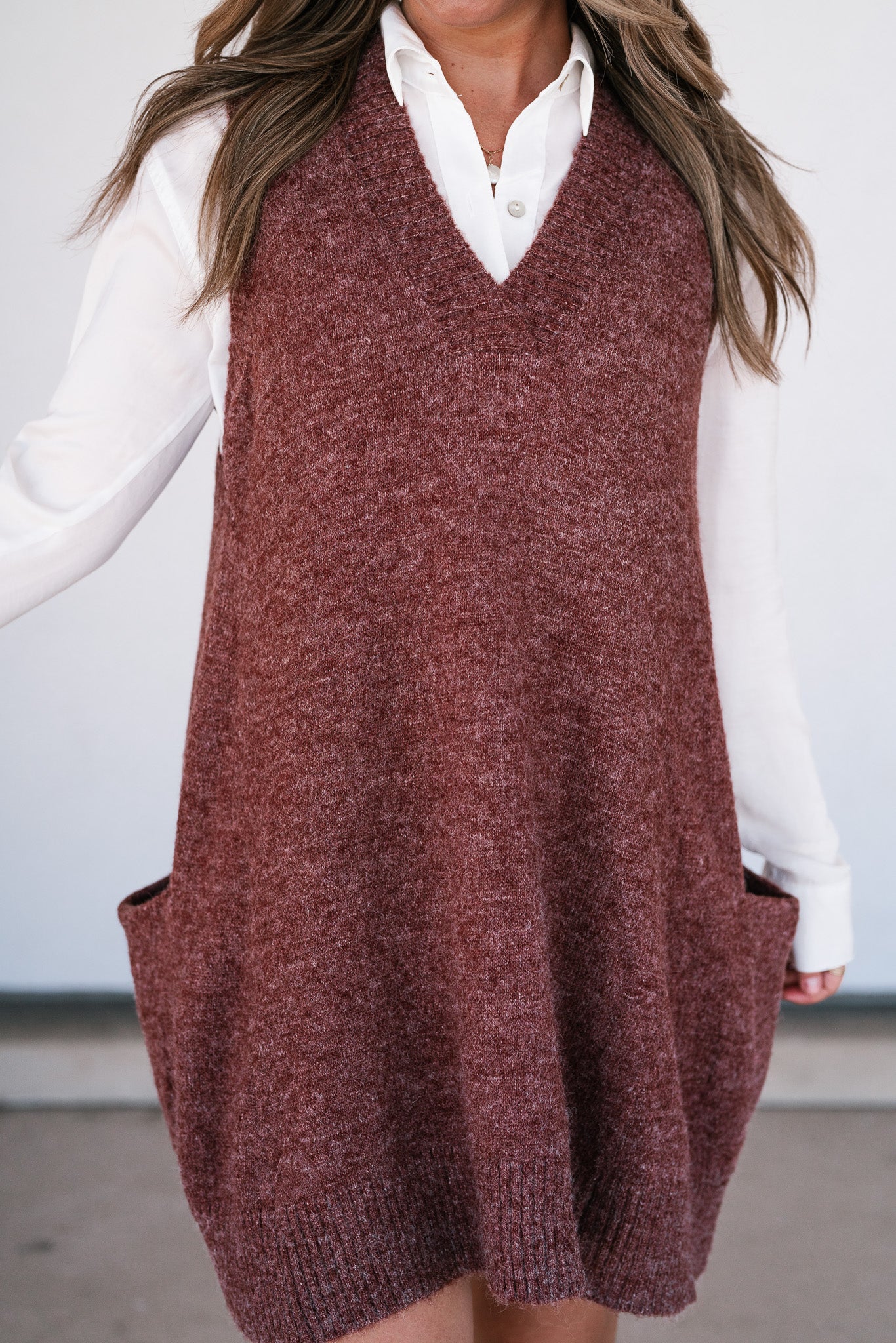 Eliza Sweater Vest Tunic Top – Textured Knit Layer in Warm Brick