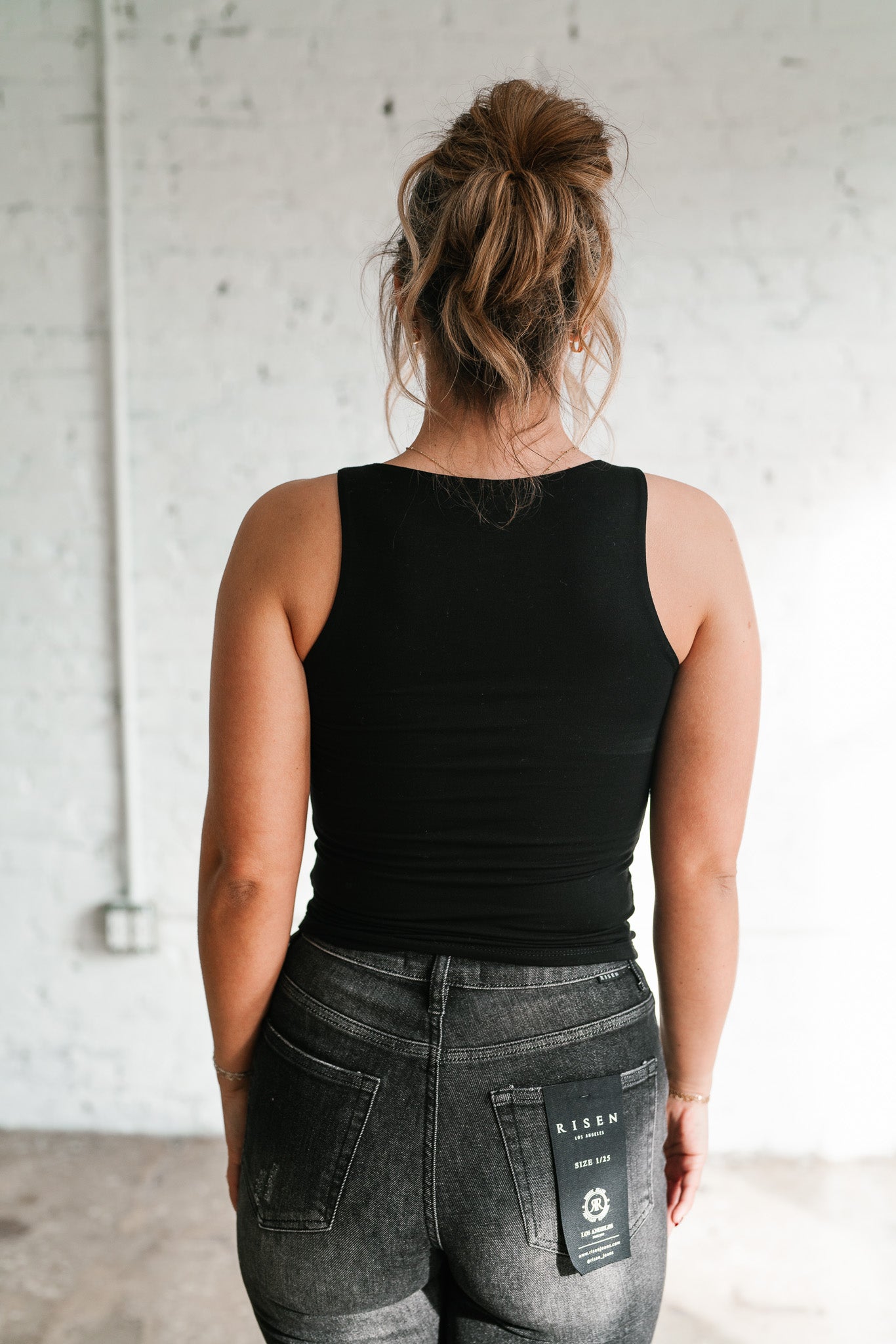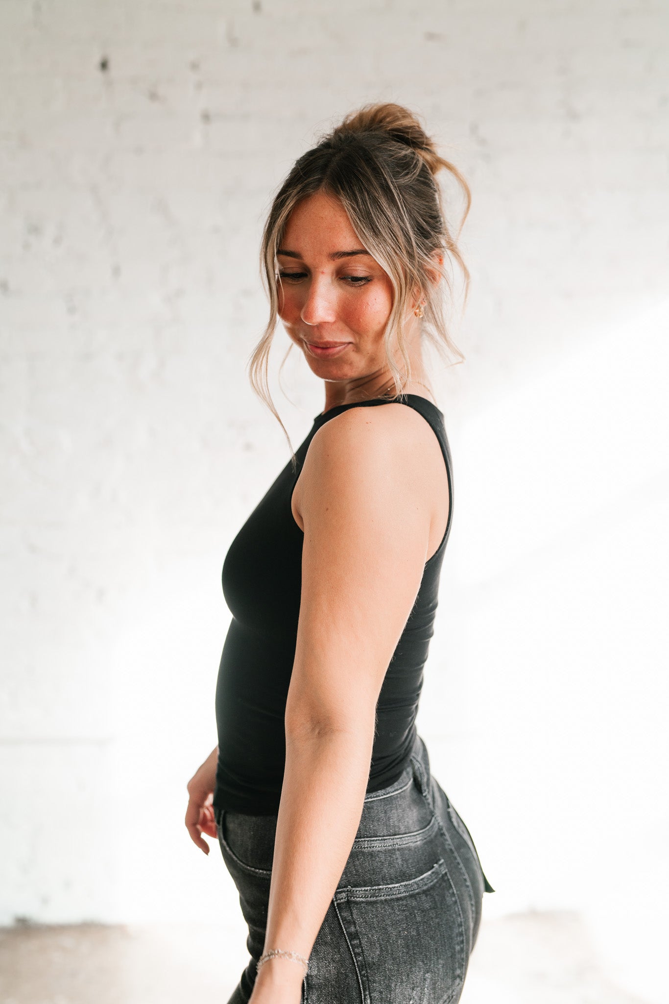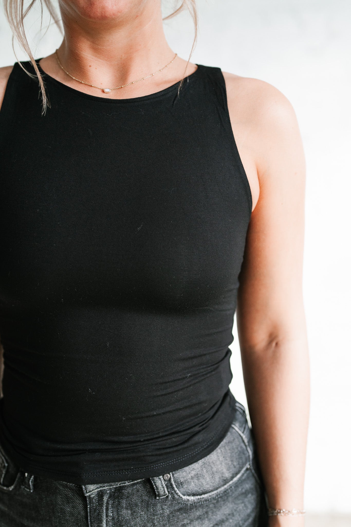 Introducing the Essential Boat Neck Tank! This timeless piece is a must-have for any wardrobe, offering both style and versatility. Made from a soft, stretchy fabric, it provides a comfortable and flattering fit that hugs your body in all the right places. The clean white color and sleek, sleeveless design make it perfect for layering or wearing on its own. With a high neckline and a slightly cropped length, this tank top pairs effortlessly with high-waisted shorts, jeans, or skirts.