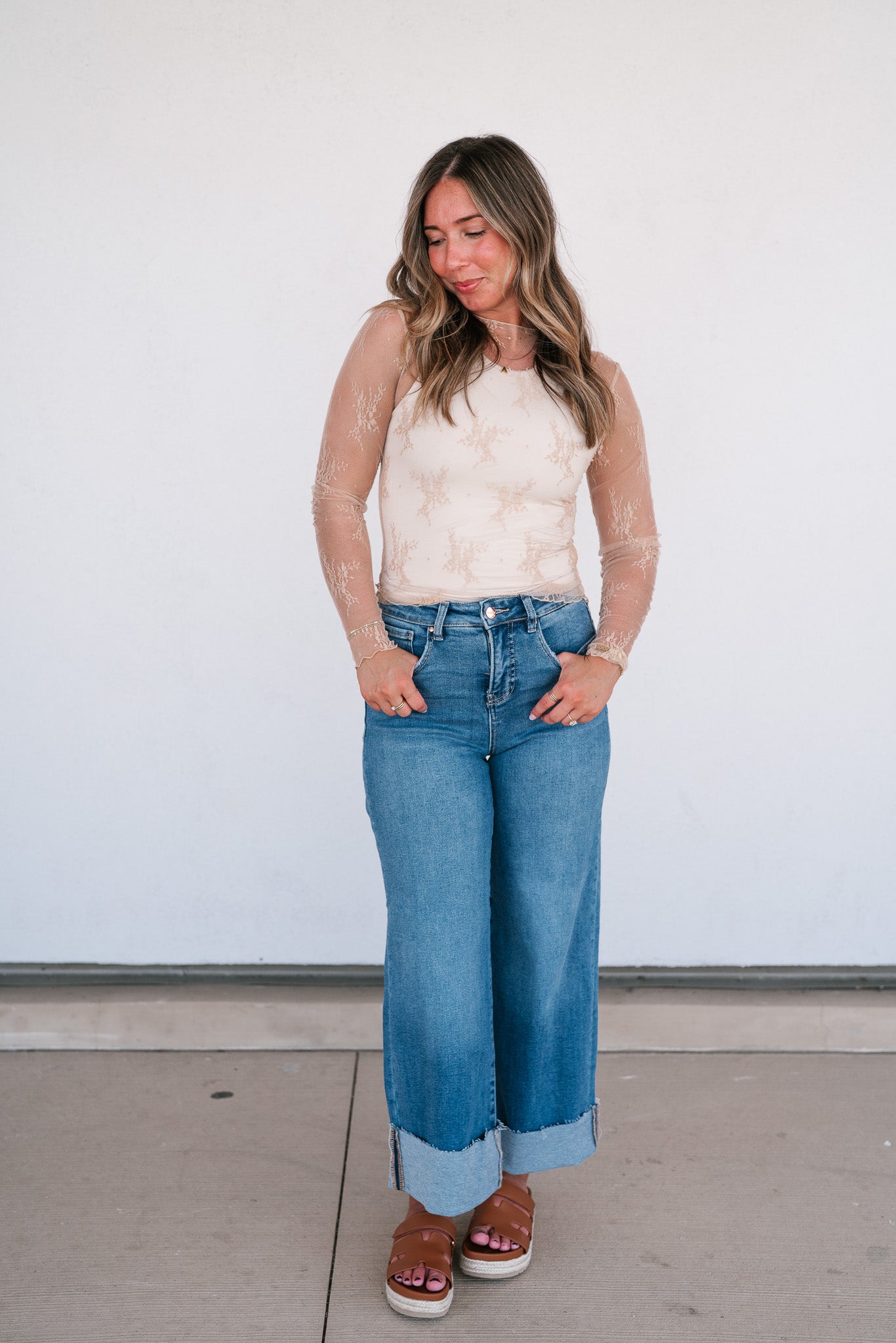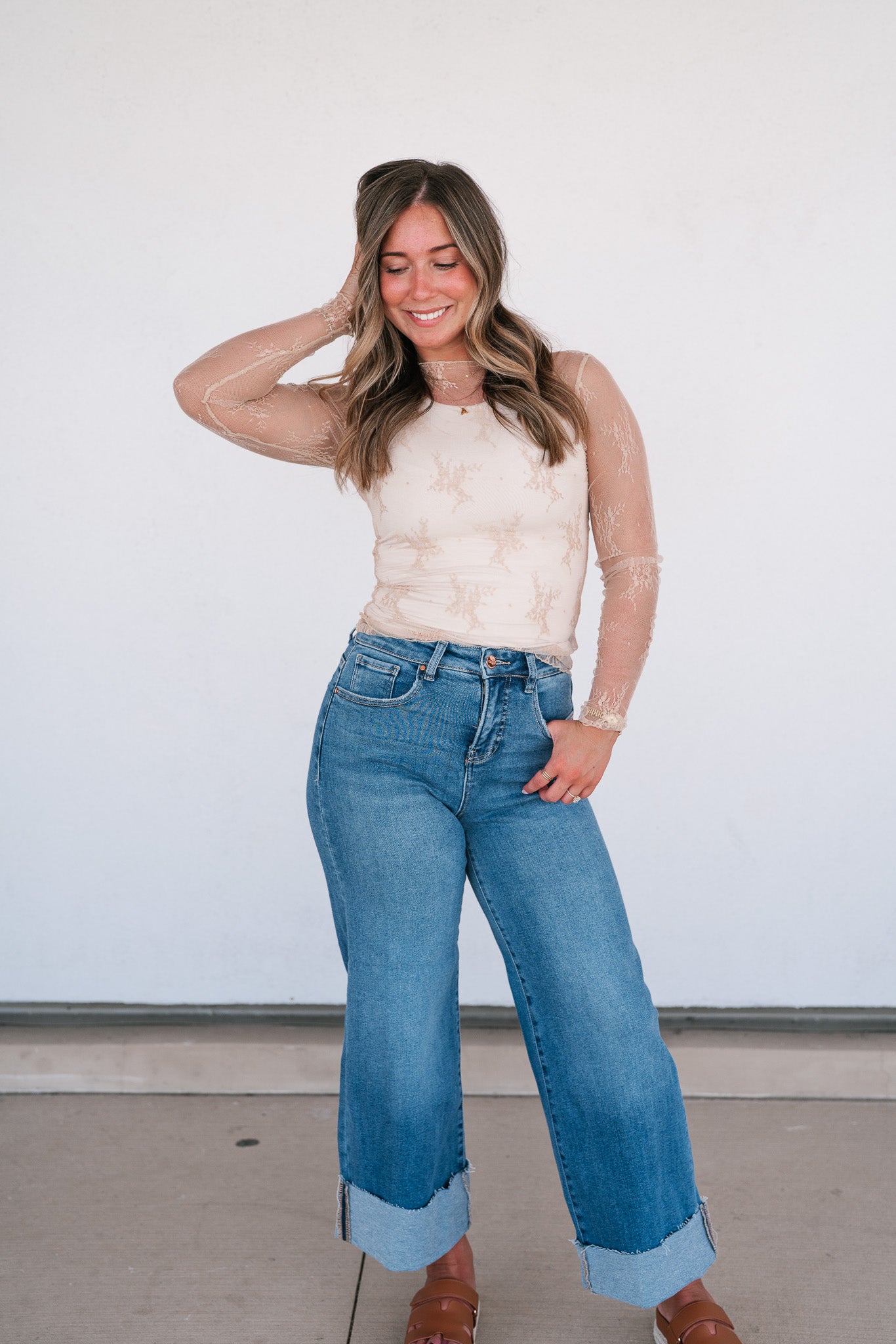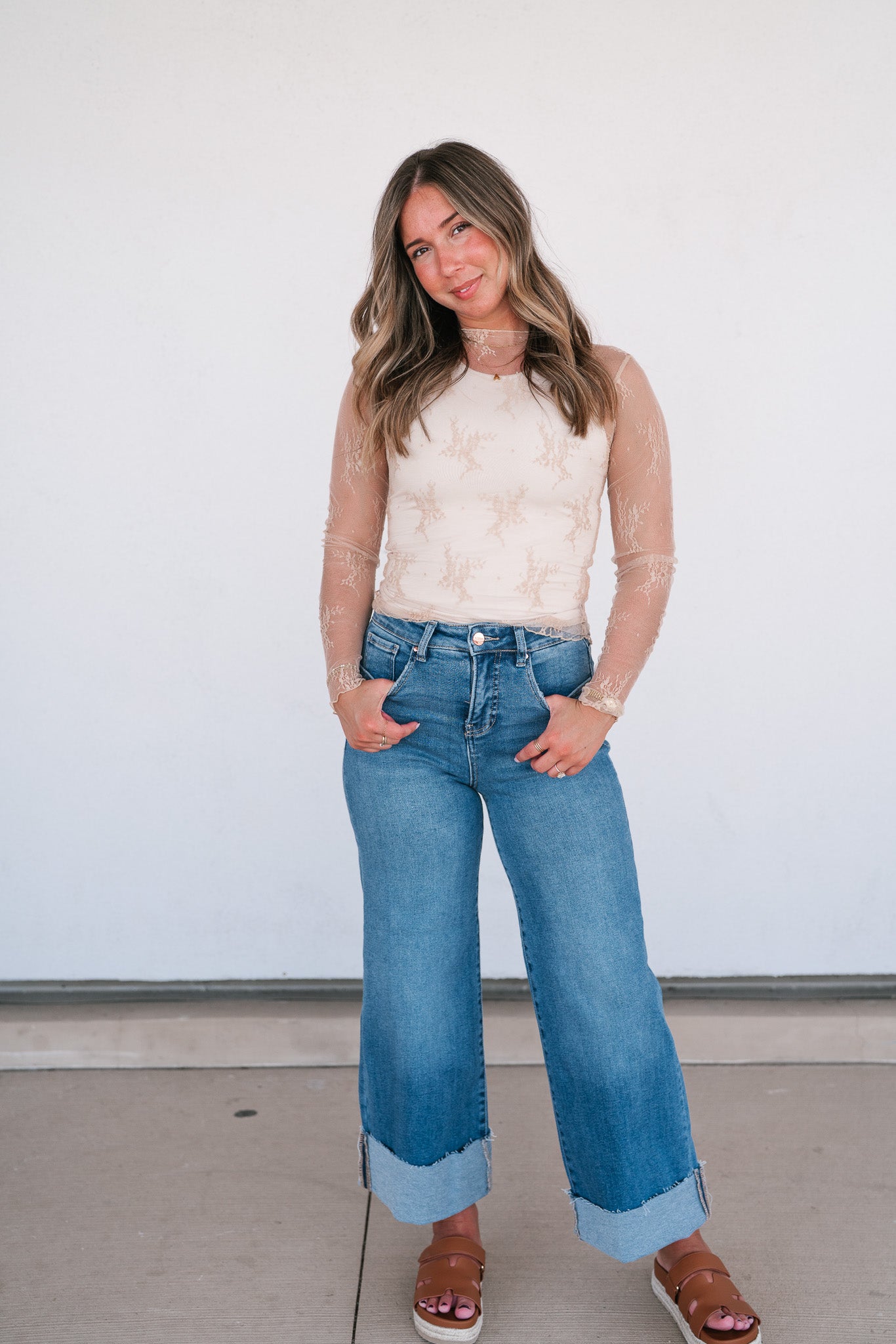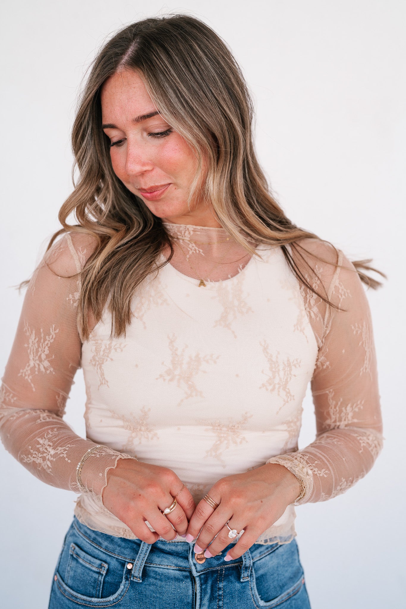 Introducing the Lux Sheer Lace Undershirt in Nude, a versatile and elegant addition to your wardrobe. This delicate lace top can be worn over a bralette for a chic, daring look or layered under a sweater or graphic tee for a playful, trendy style. The intricate lace pattern adds a touch of sophistication and femininity, while the sheer fabric gives it a modern edge. Perfect for any season, this undershirt can effortlessly transition from day to night. Pair it with jeans for a casual vibe, or dress it up with a skirt for a night out. Embrace your unique style with this must-have piece that offers endless styling possibilities.