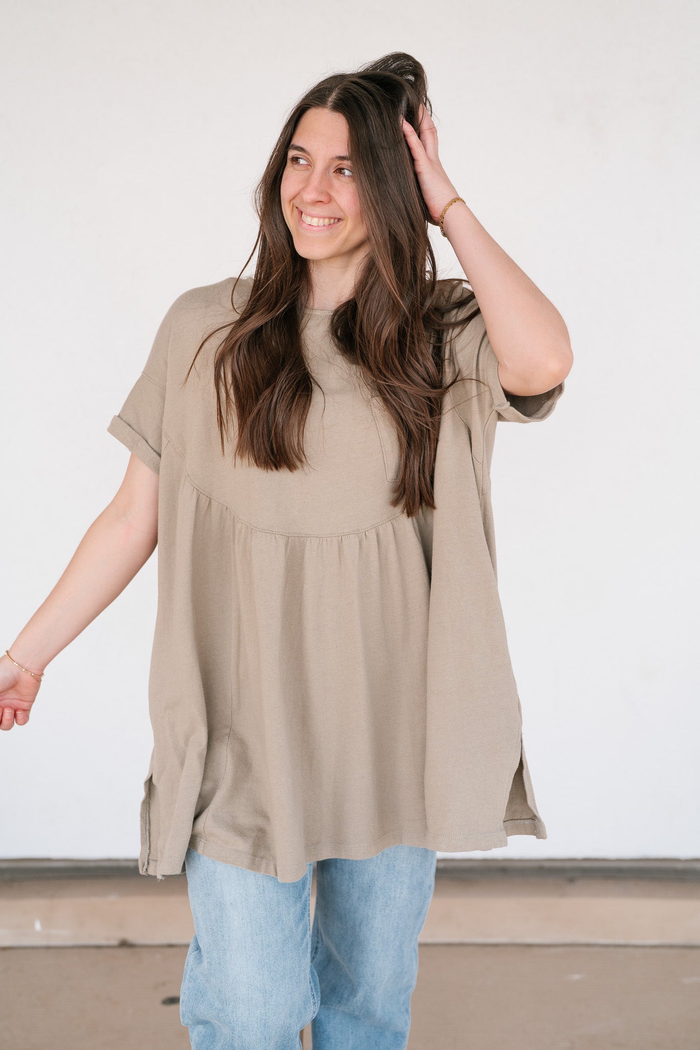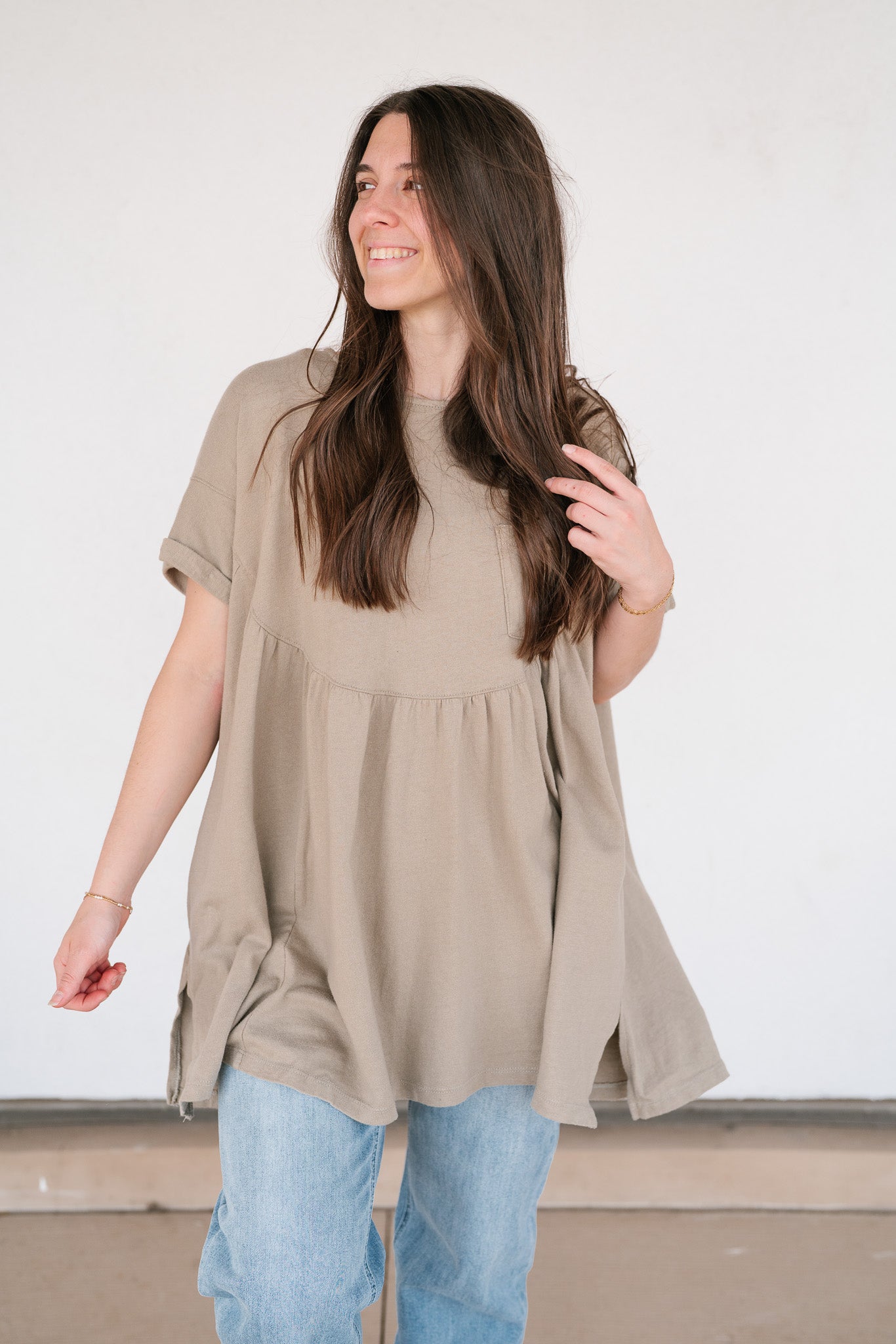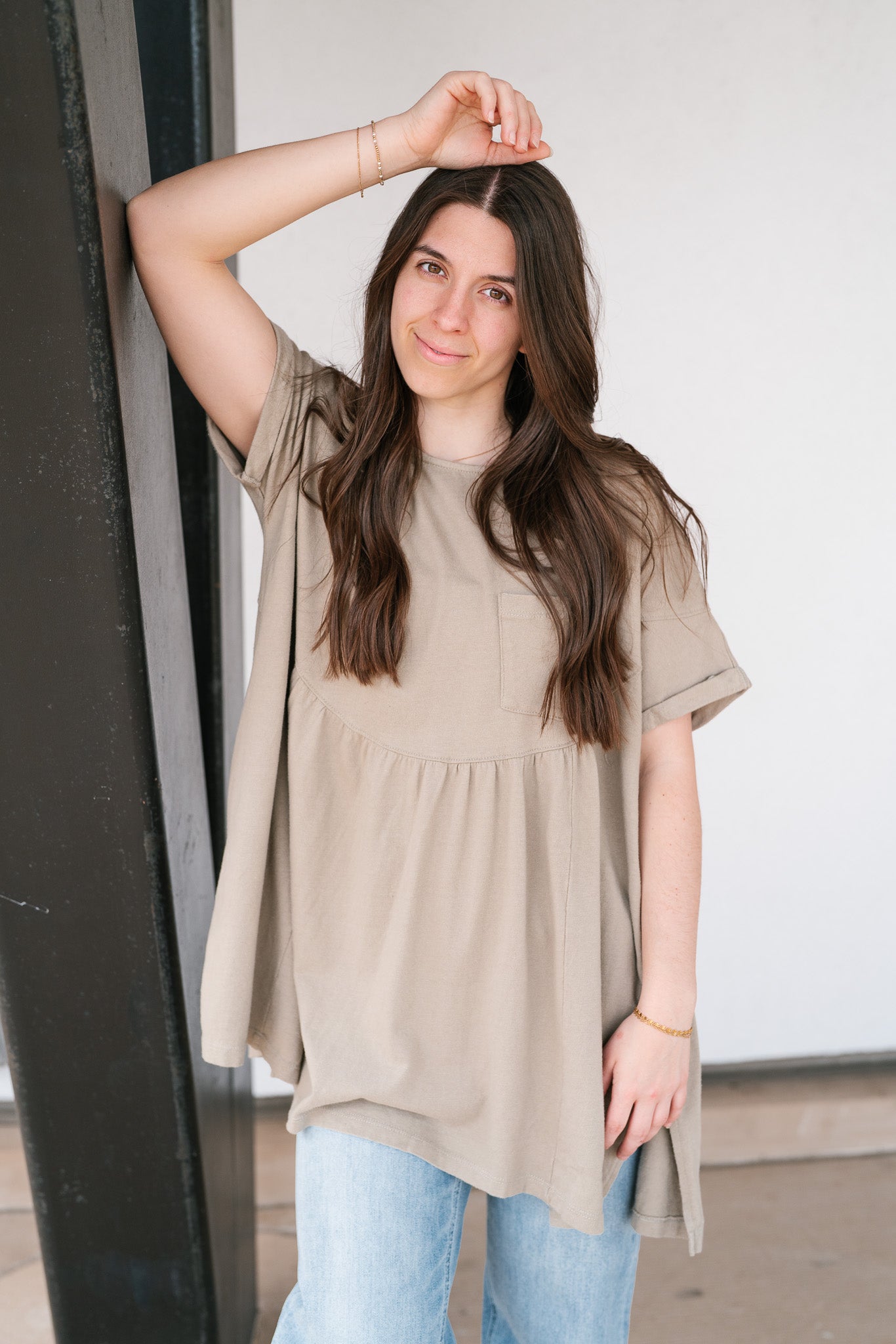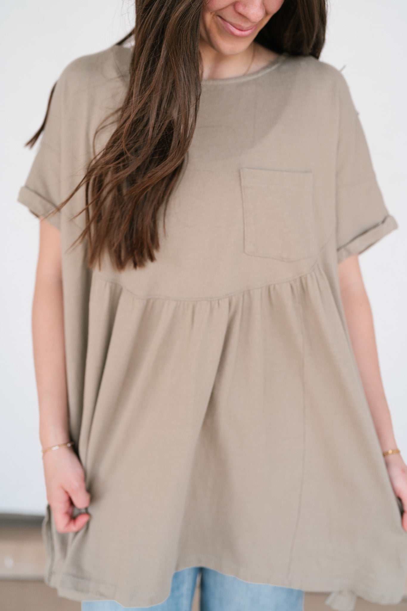The Mossy Meadows Babydoll Top features a flattering babydoll fit that accentuates your natural beauty. Its gently flowing silhouette gracefully drapes over your curves, creating a whimsical and feminine look that is sure to turn heads. The loose and relaxed design allows for unrestricted movement, making it perfect for both casual outings and special occasions. Style with your favorite jeans or leggings!