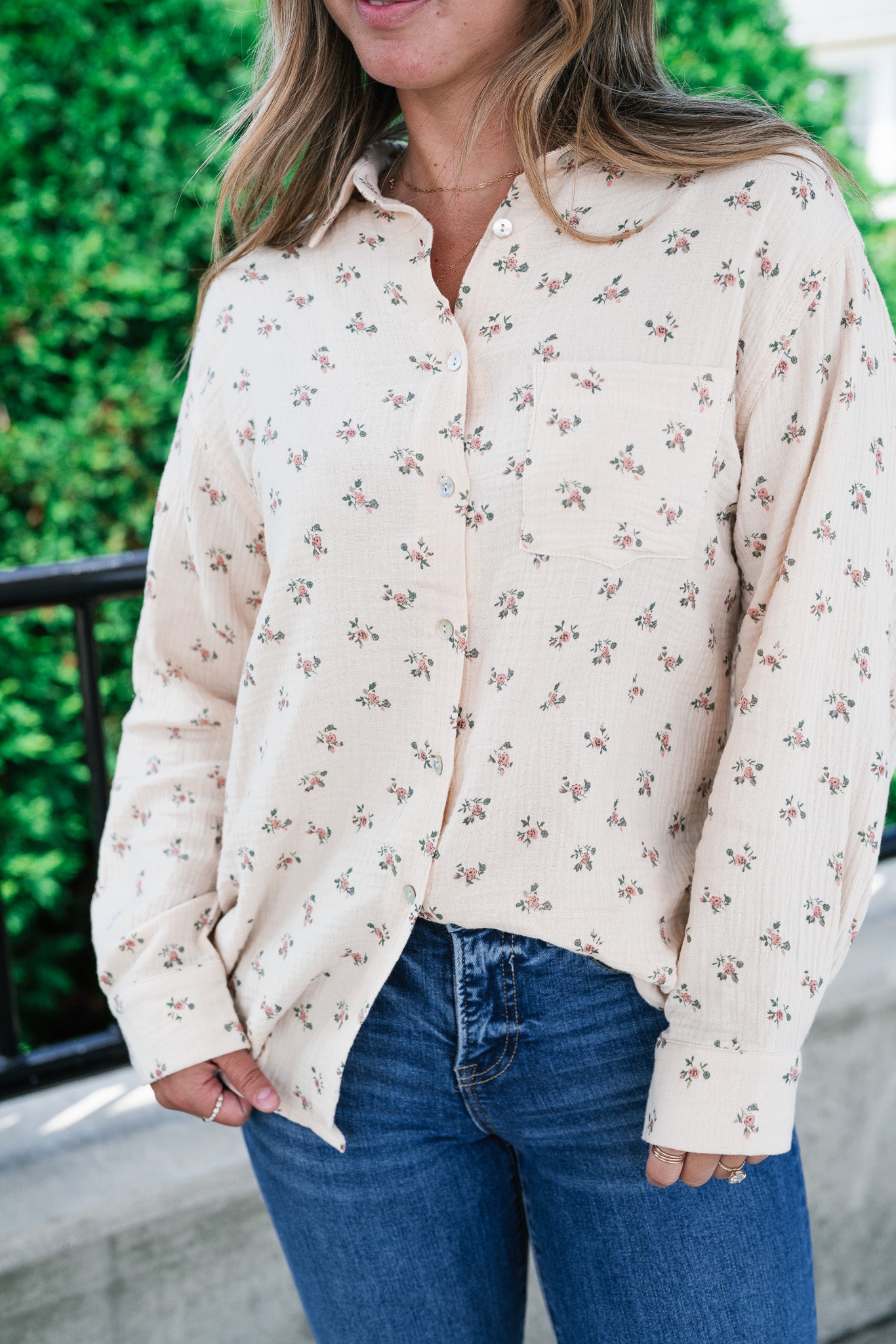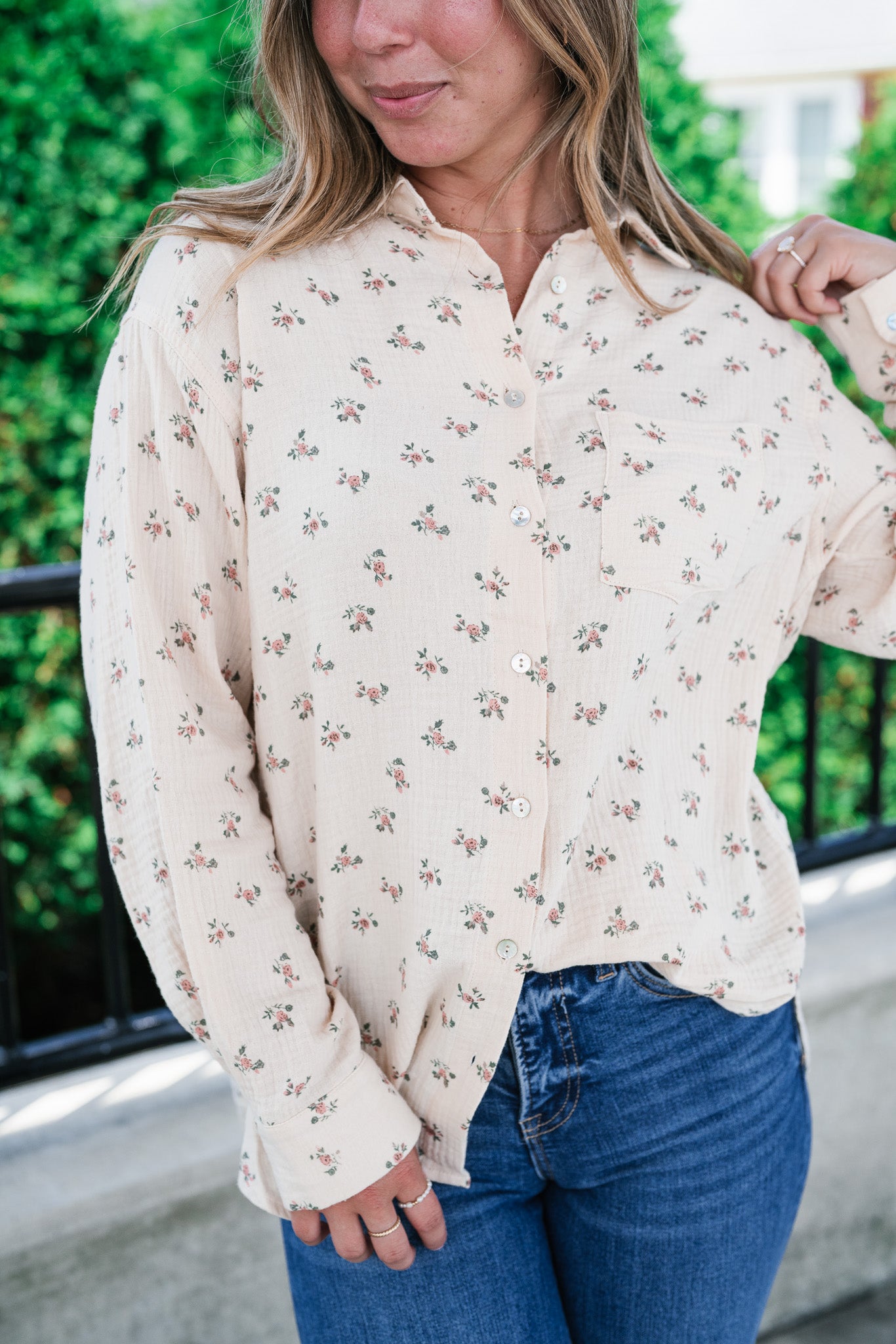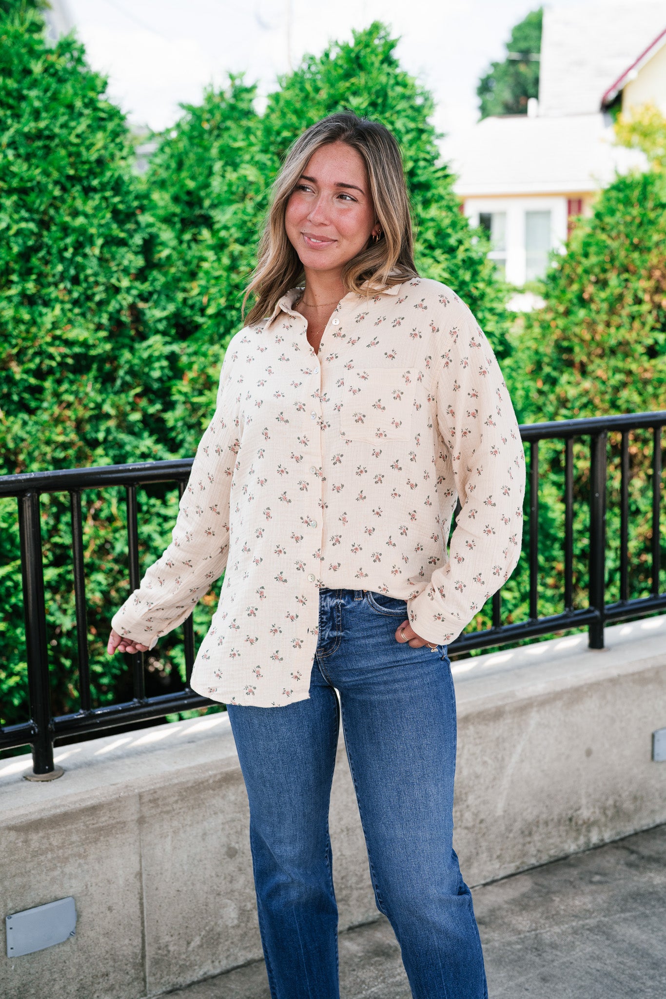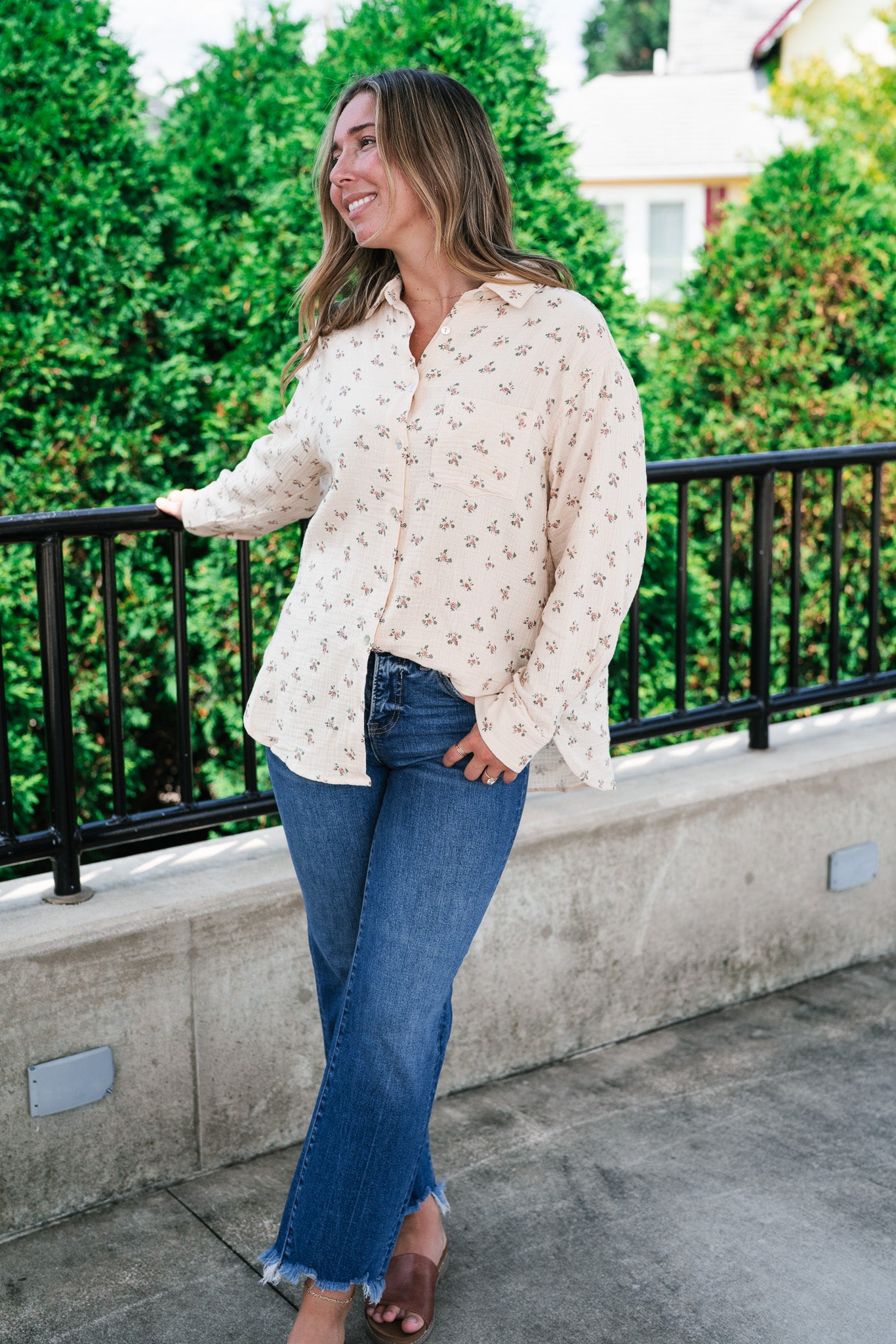 The Rose Meadow Button-Up Top in mauve is a feminine and effortlessly chic addition to your everyday wardrobe. Crafted from a soft, lightweight fabric, this relaxed-fit button-up features a classic collar, subtle texture, and a beautiful mauve hue that’s perfect for any season. Designed with versatility in mind, it’s easy to style open over a tank, tucked into your favorite denim, or paired with tailored pants for a polished look. The Rose Meadow Button-Up is a timeless essential for the modern woman on the go.