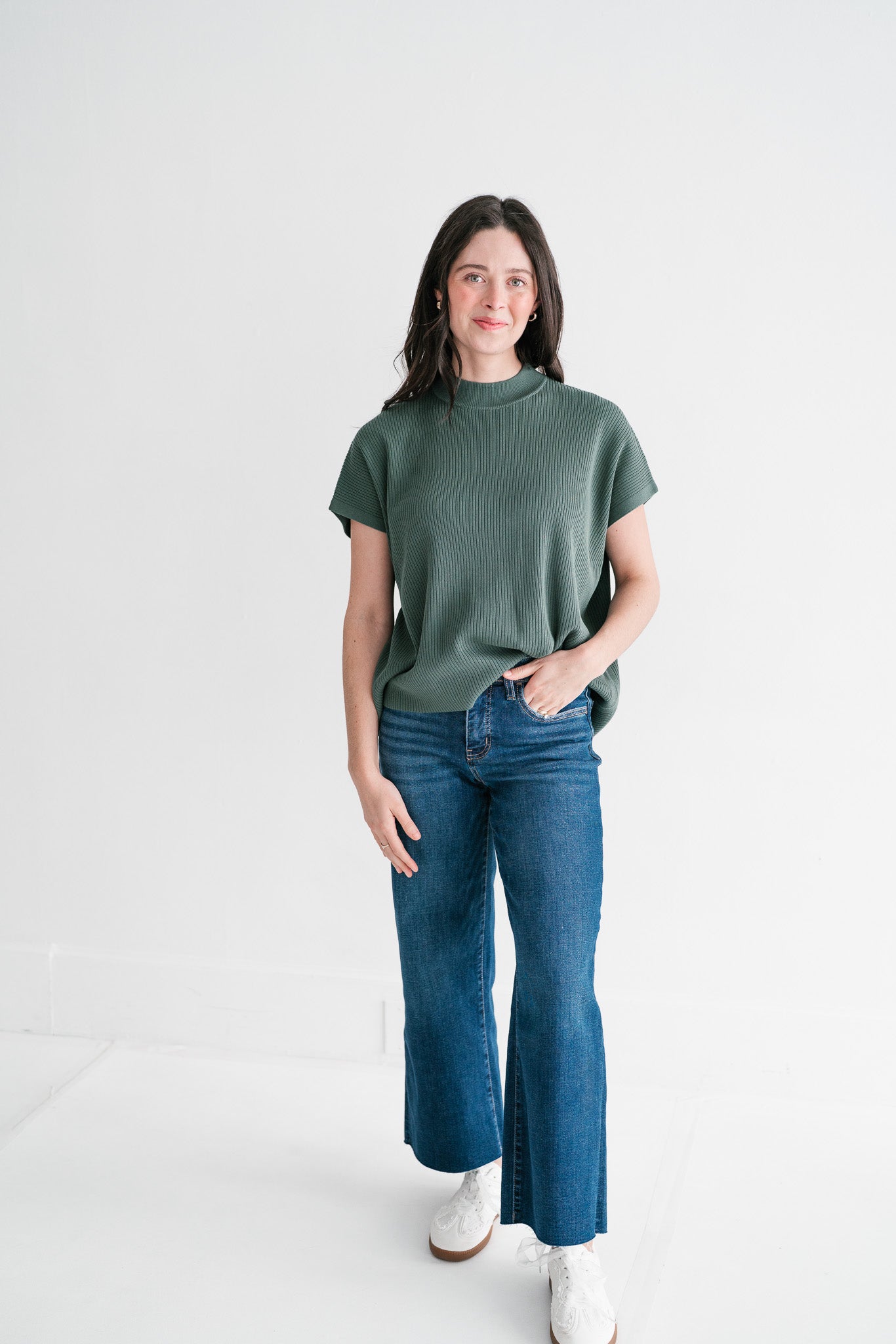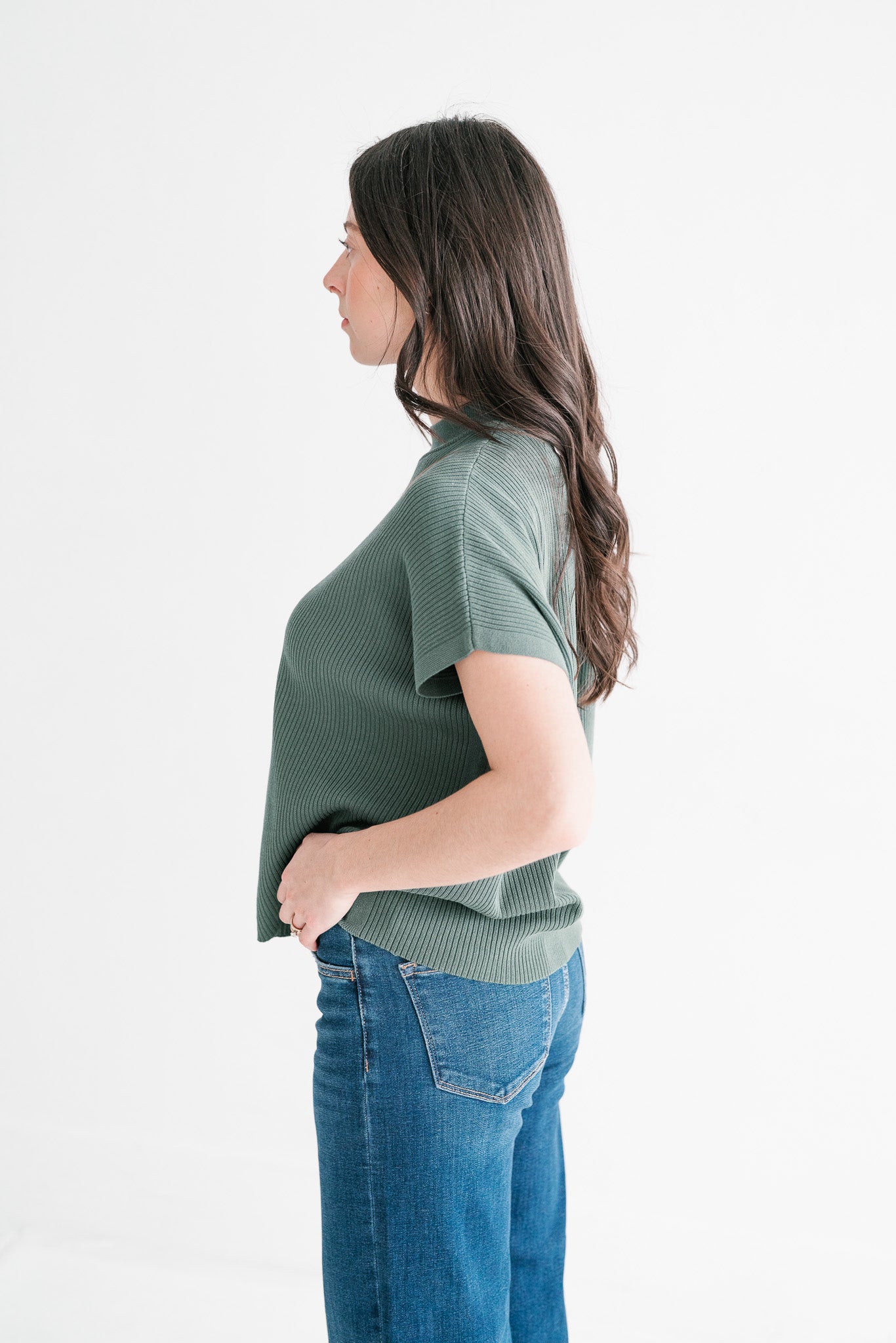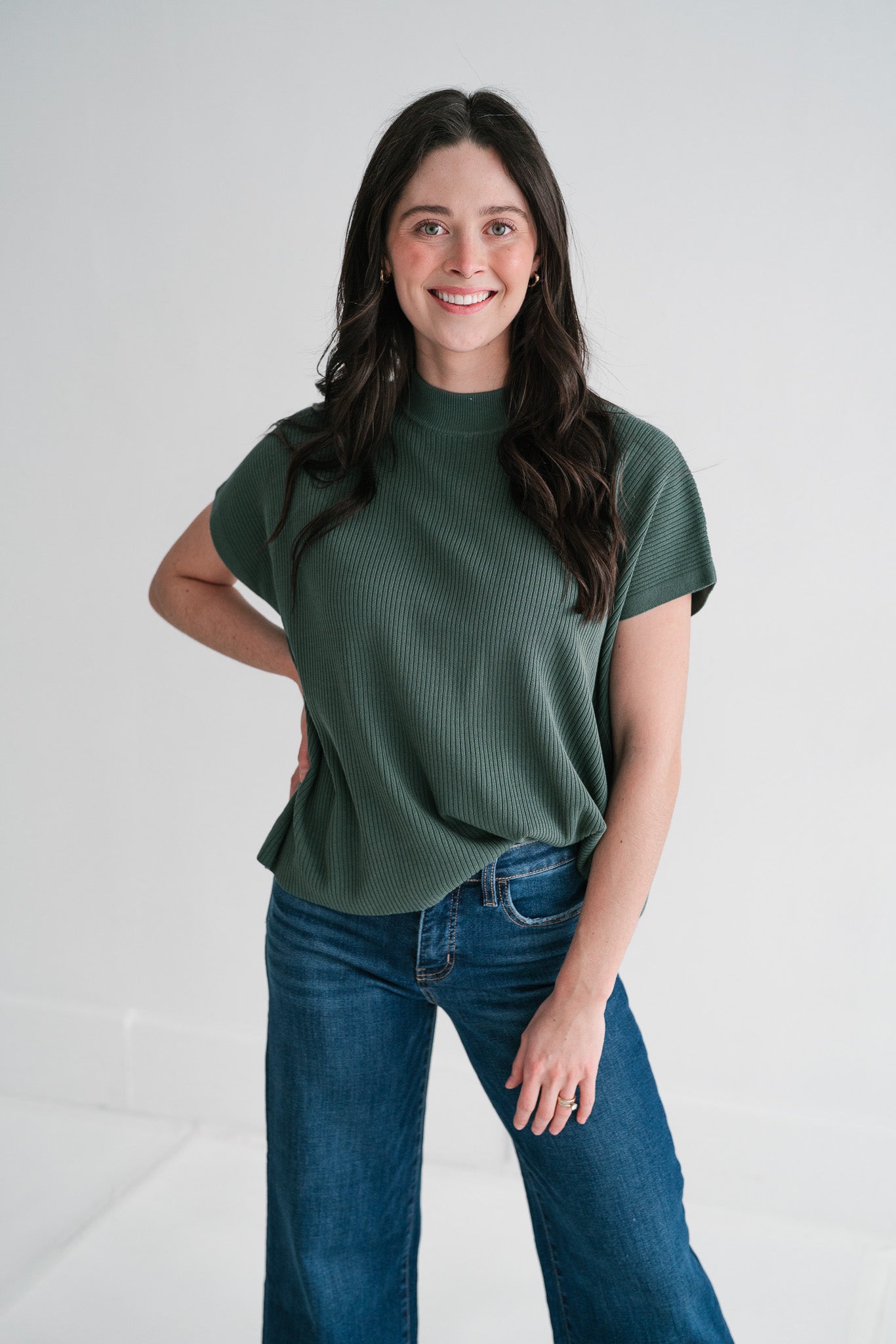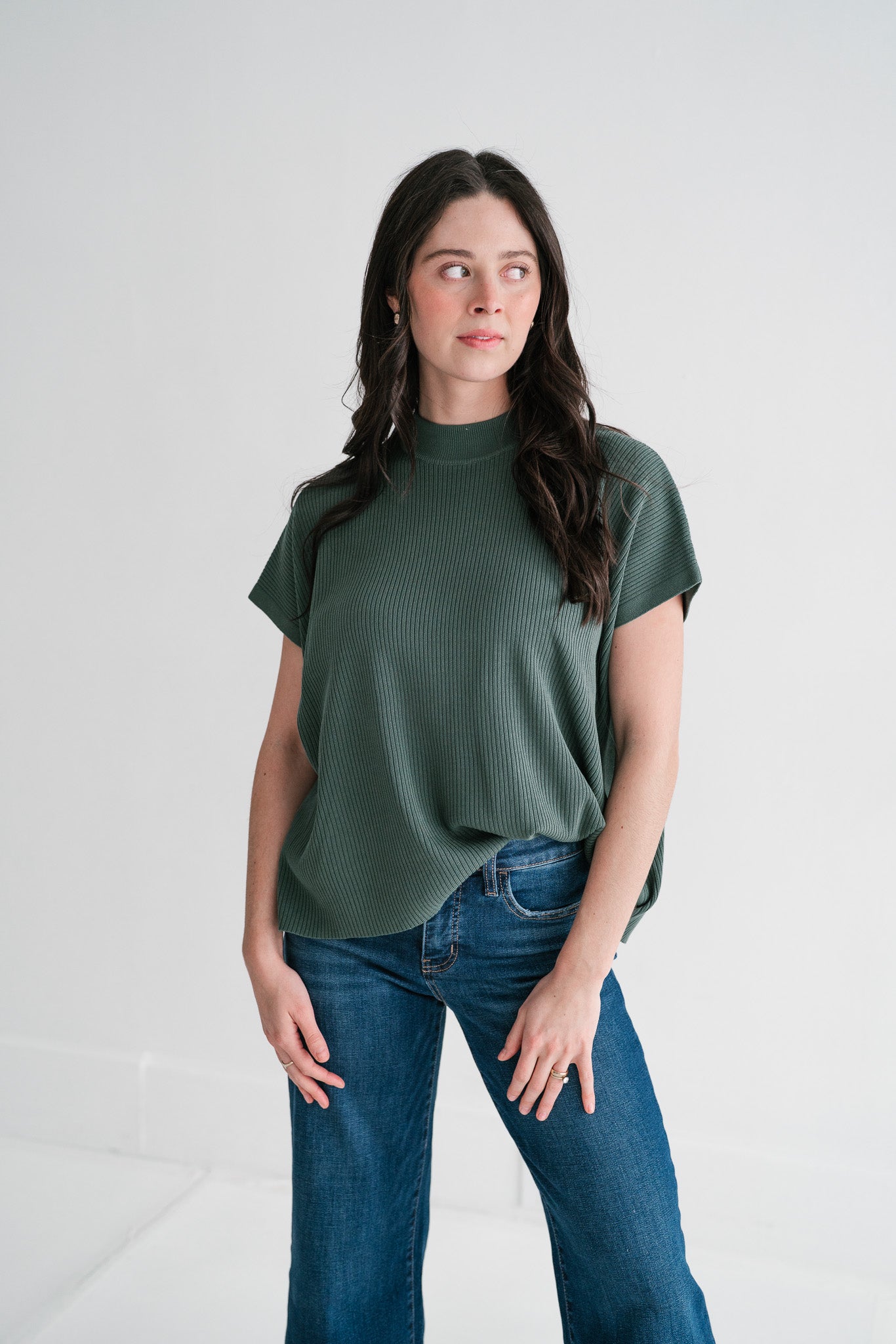 Soft Grove Ribbed Mock Neck Knit Top | Relaxed Fit Short Sleeve