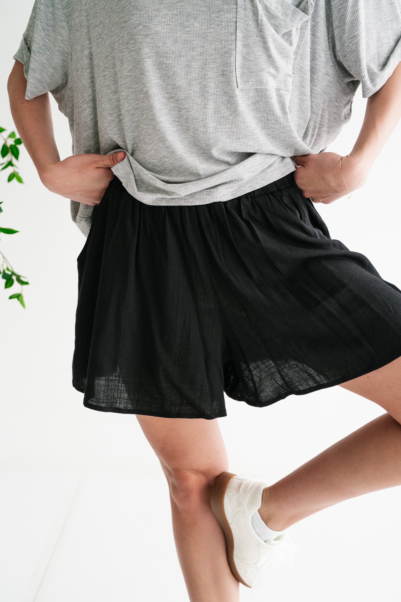 Easygoing and effortlessly chic, the Quiet Moments Relaxed Short in Black is your go-to for laid-back days with a polished edge. Designed with a flowy silhouette and comfortable elastic waistband, these shorts offer all-day wearability without sacrificing style. Pair them with a fitted top or an oversized layer for a versatile look that moves with you from casual outings to relaxed evenings.