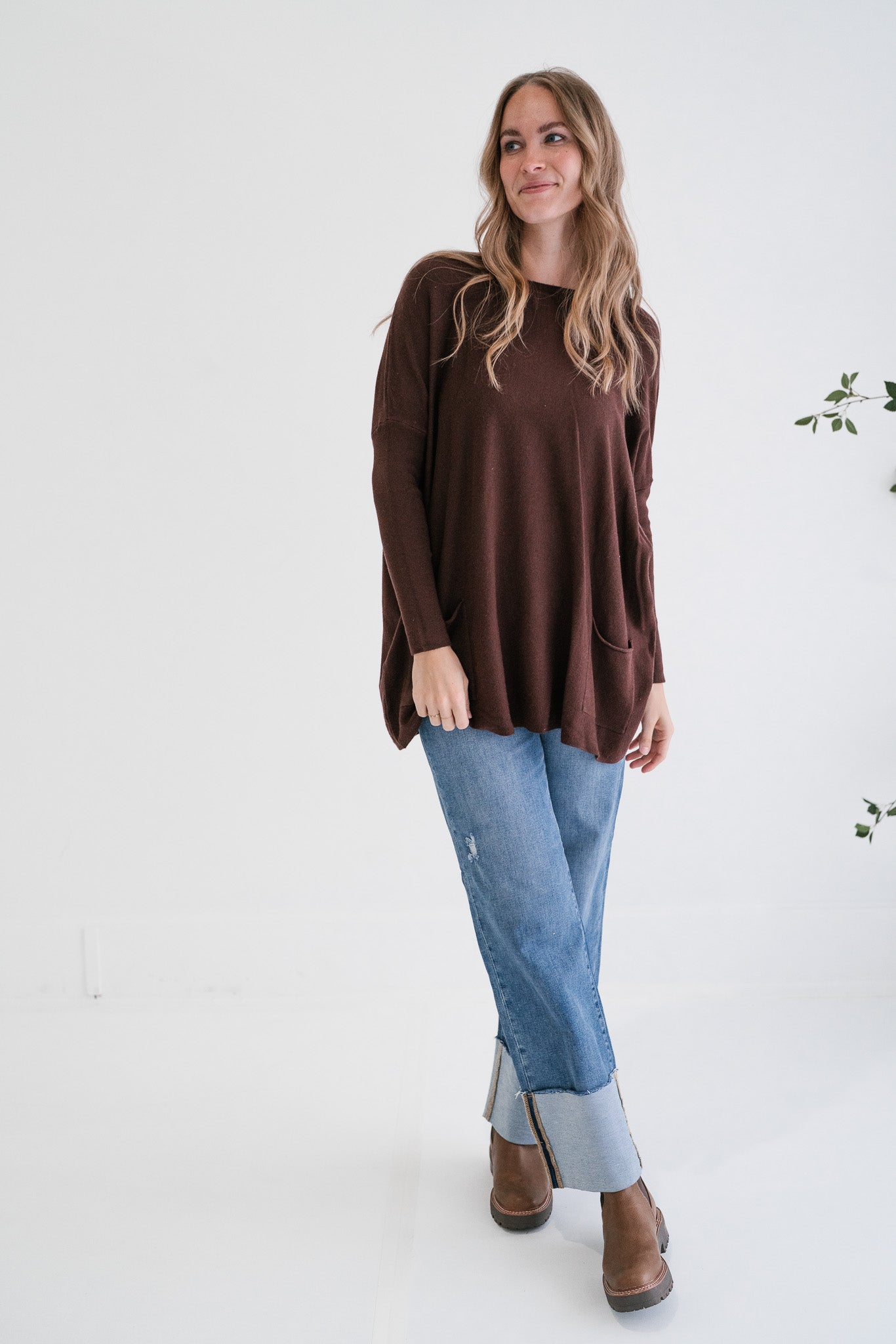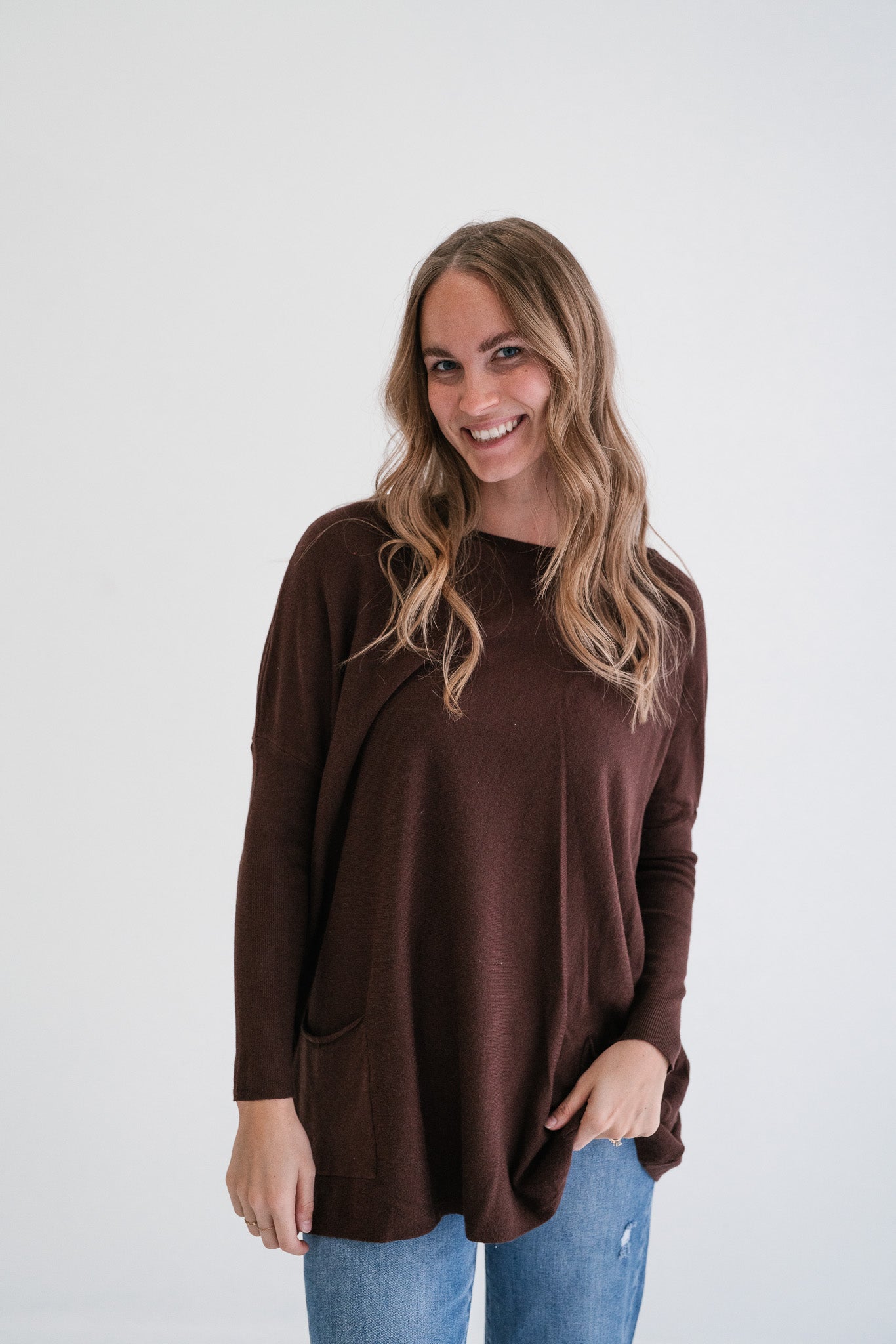 Gentle Drift Relaxed Pocket Sweater - Chocolate – Birch & Bell Boutique