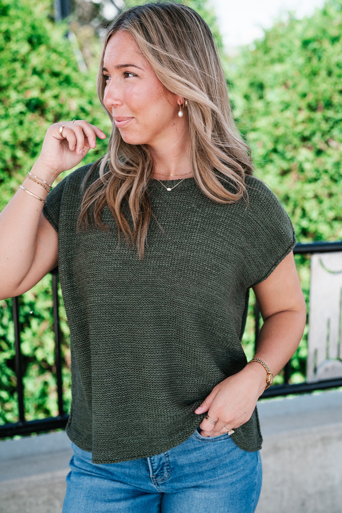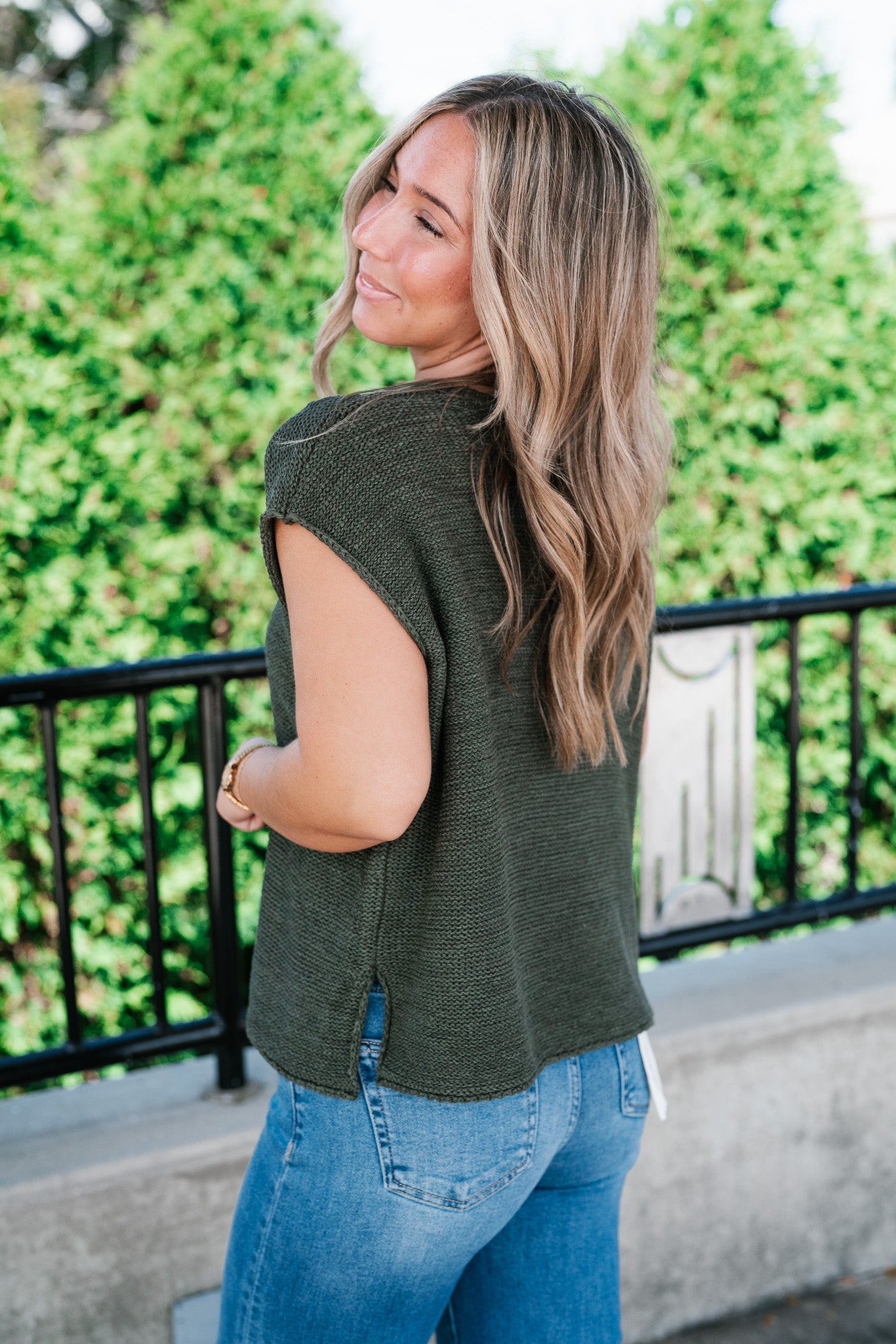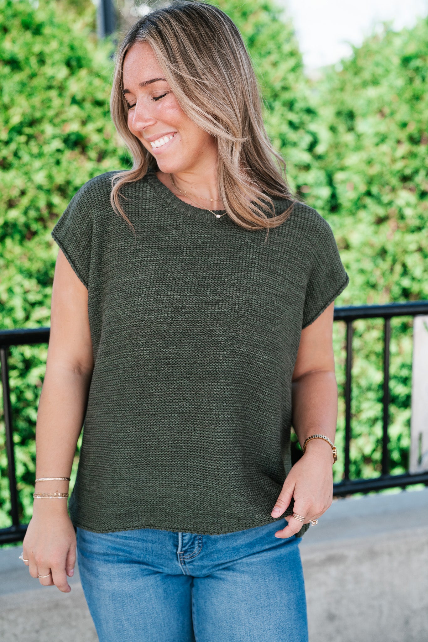 Everyday Ease Crew Neck Sweater Tank - Dark Green – Birch & Bell Boutique