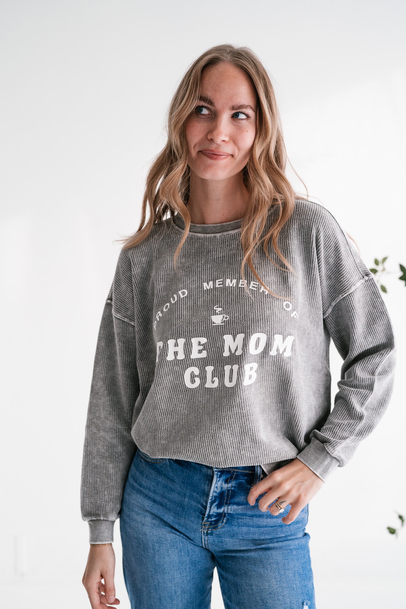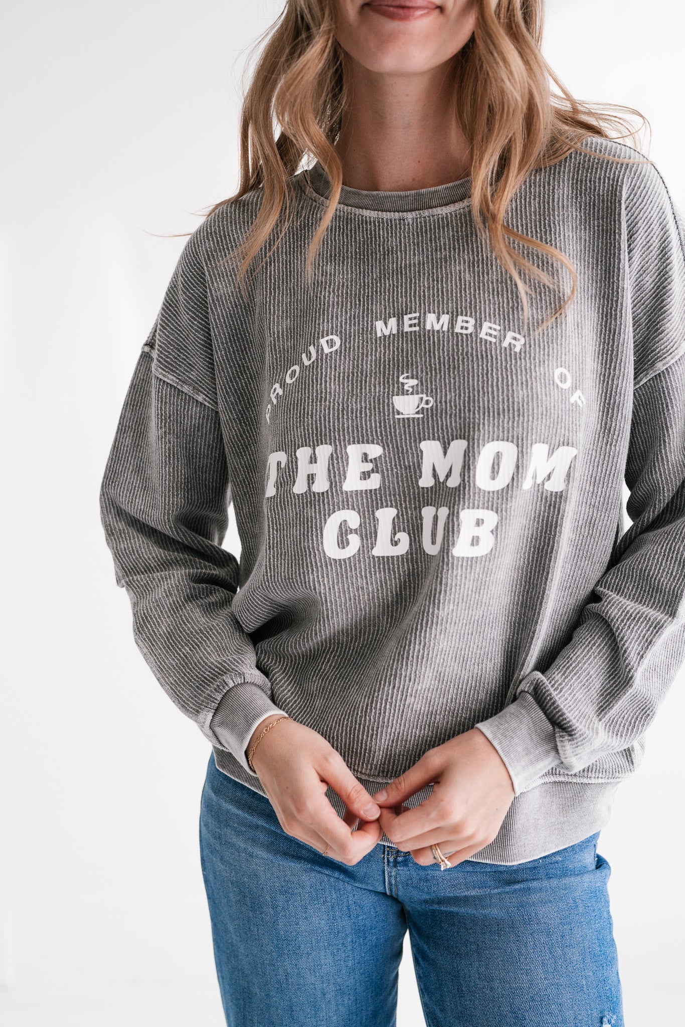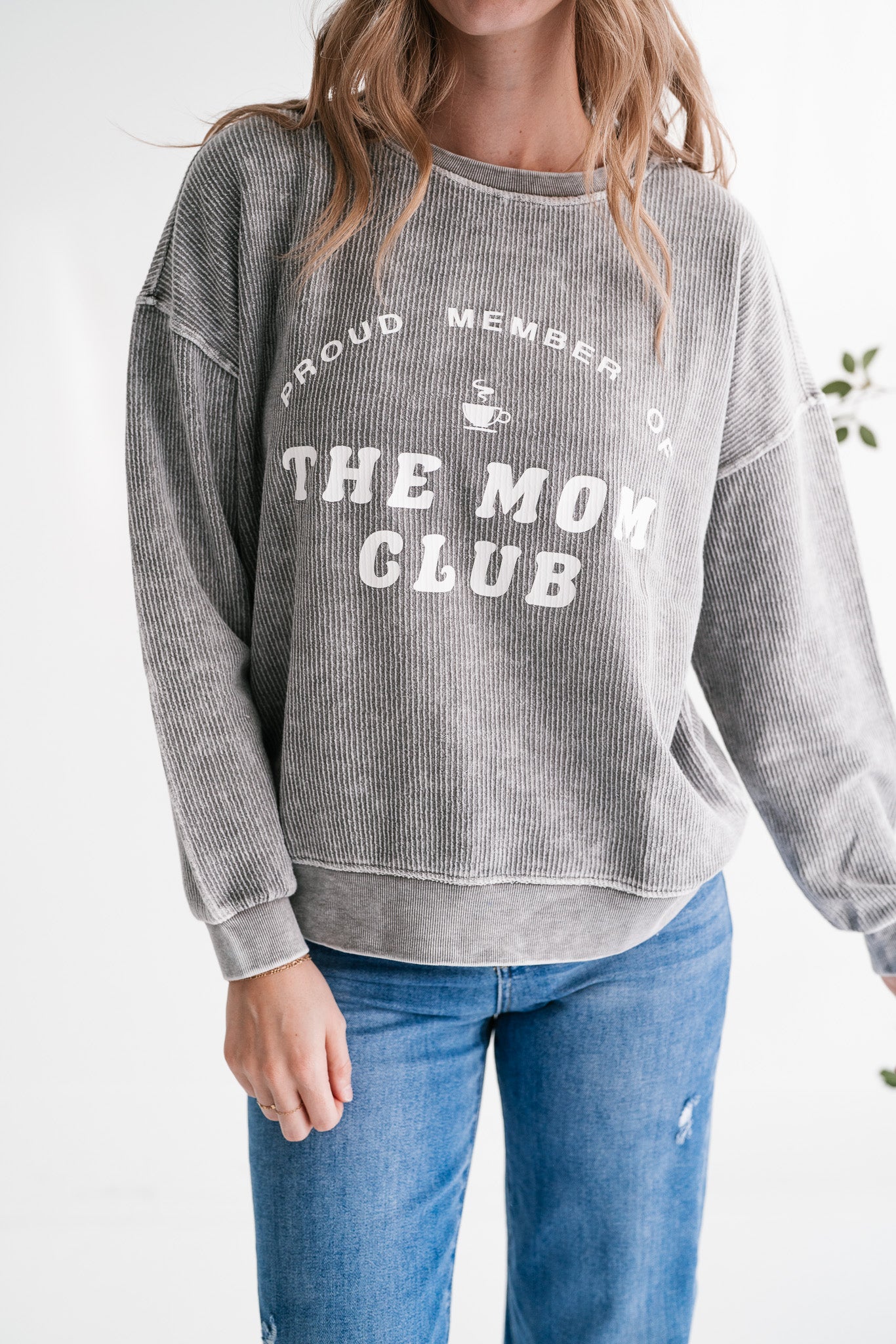 Mom Club Graphic Ribbed Crewneck | Washed Grey