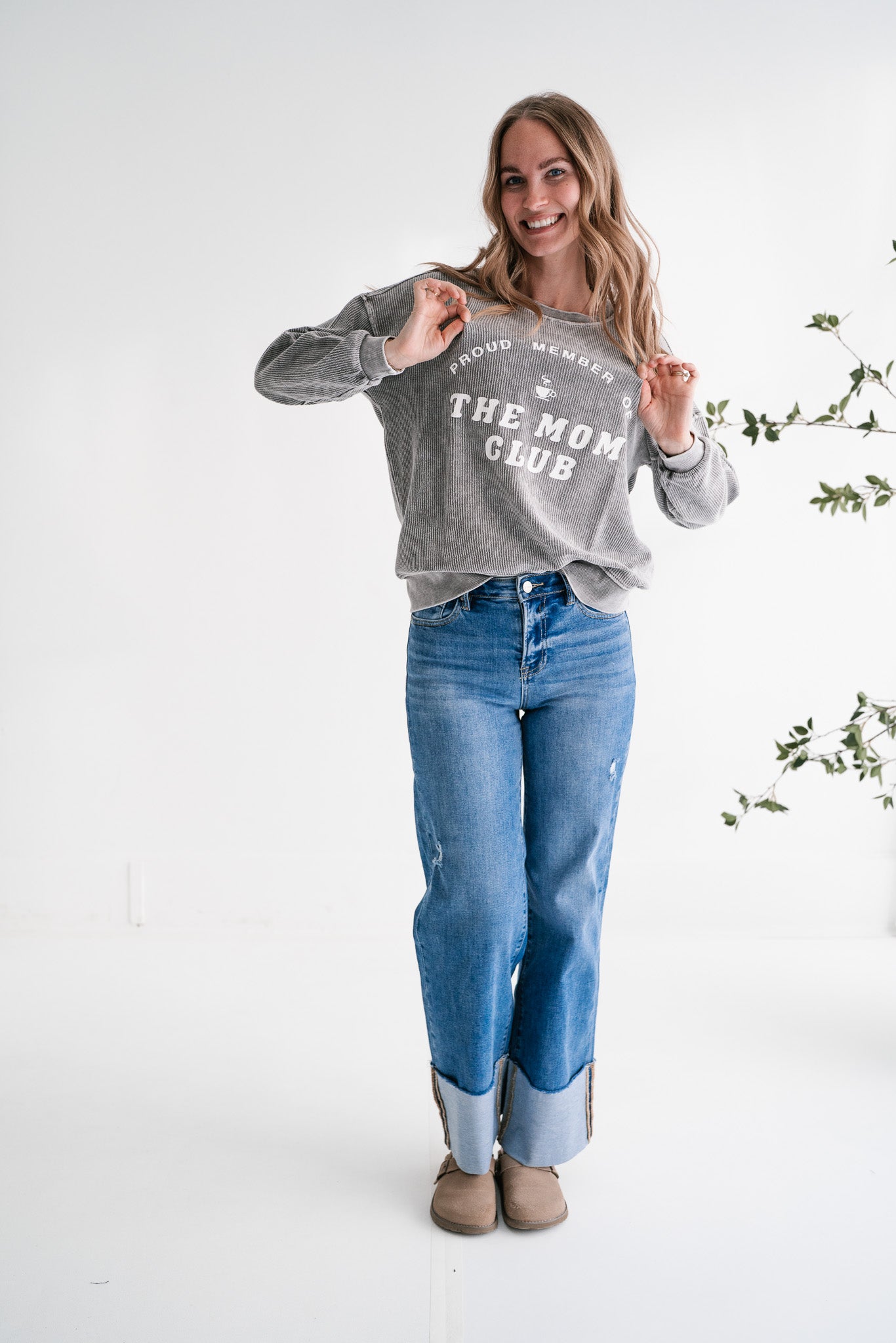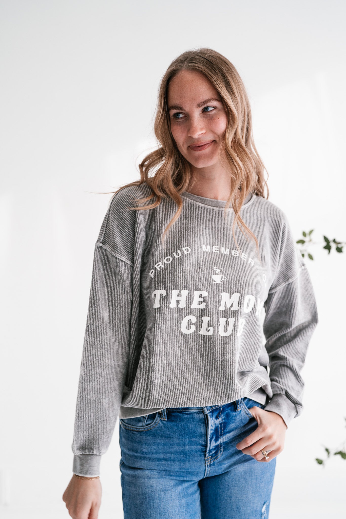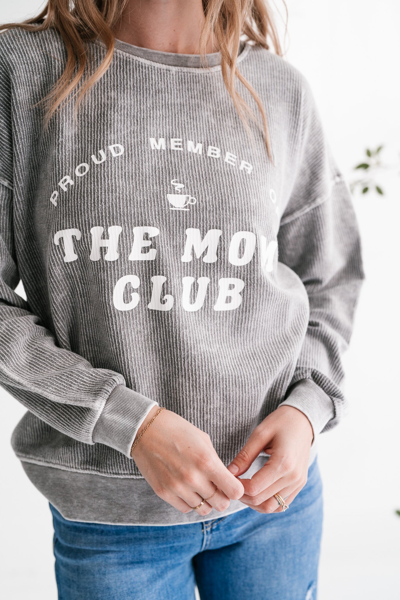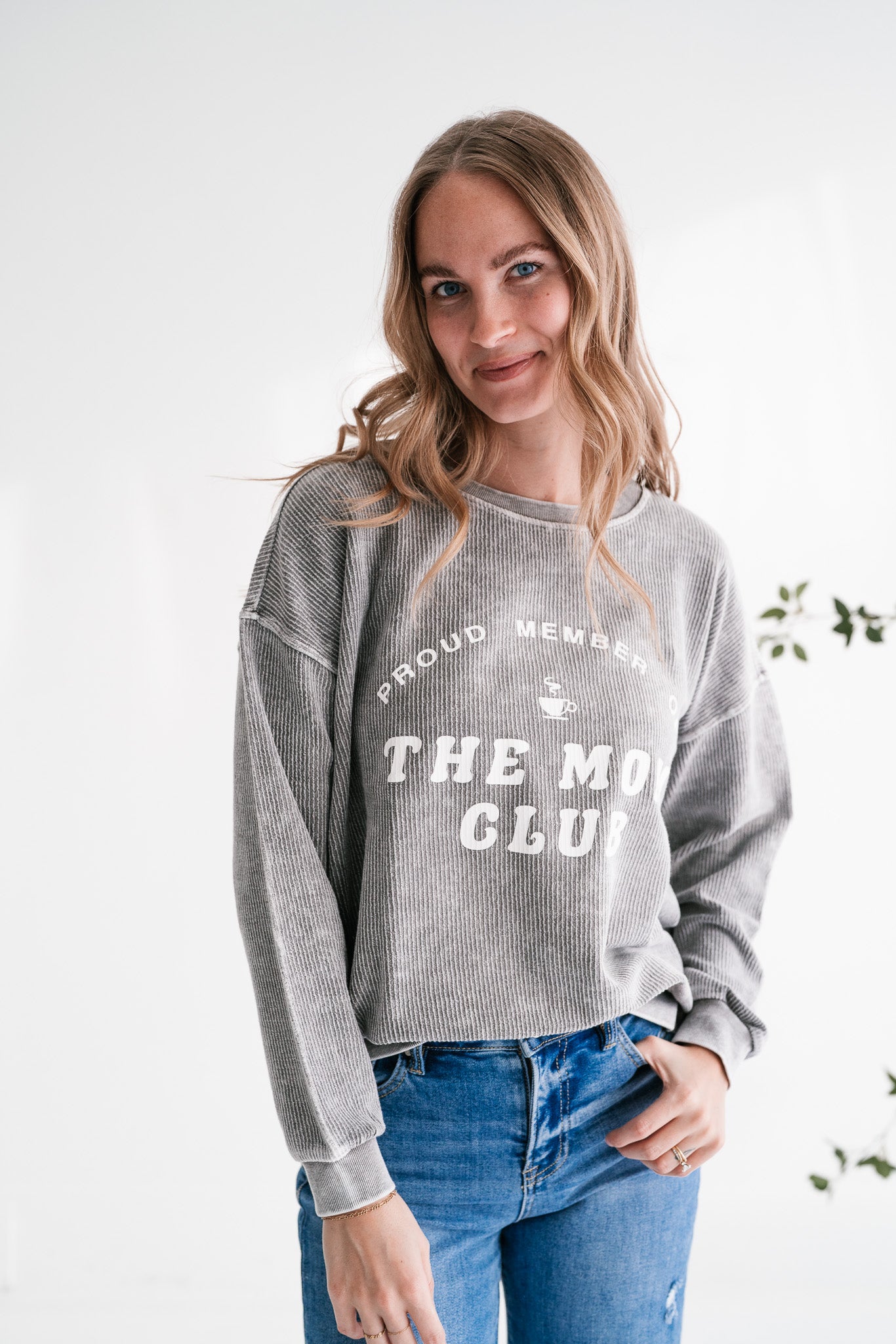 Mom Club Graphic Ribbed Crewneck | Washed Grey