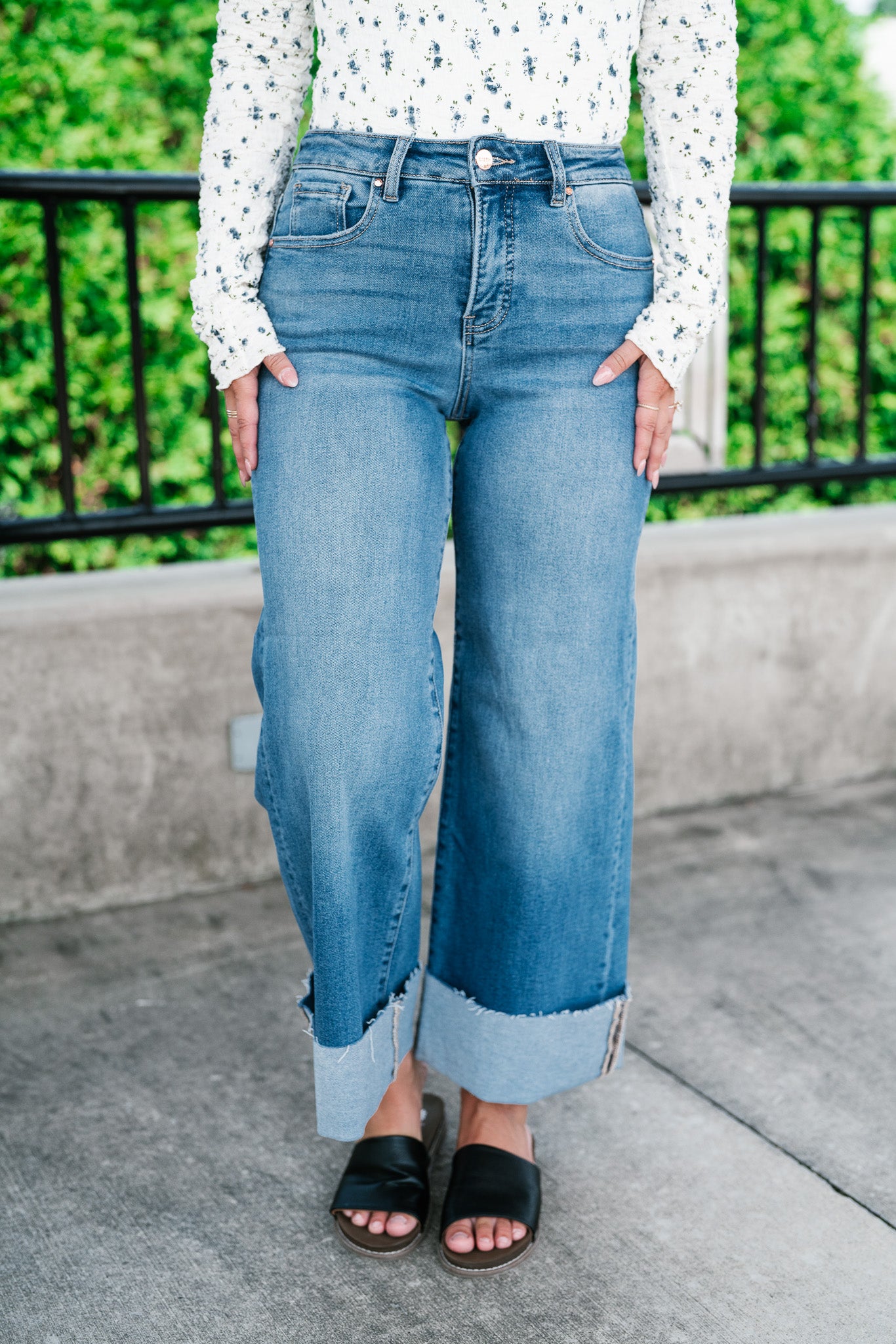 Elevate your denim game with the Risen Rivera High Rise Crop Wide Cuff Jean — the perfect balance of modern edge and classic comfort. Designed to flatter with a high-rise fit, this jean features a relaxed straight leg and statement wide cuff hem that brings effortless style to every step. The cropped length pairs seamlessly with everything from sneakers to ankle boots, while the medium wash adds just the right touch of vintage-inspired charm. Made for the modern woman on the go, these jeans are your new go-to for dressing up or down with ease.