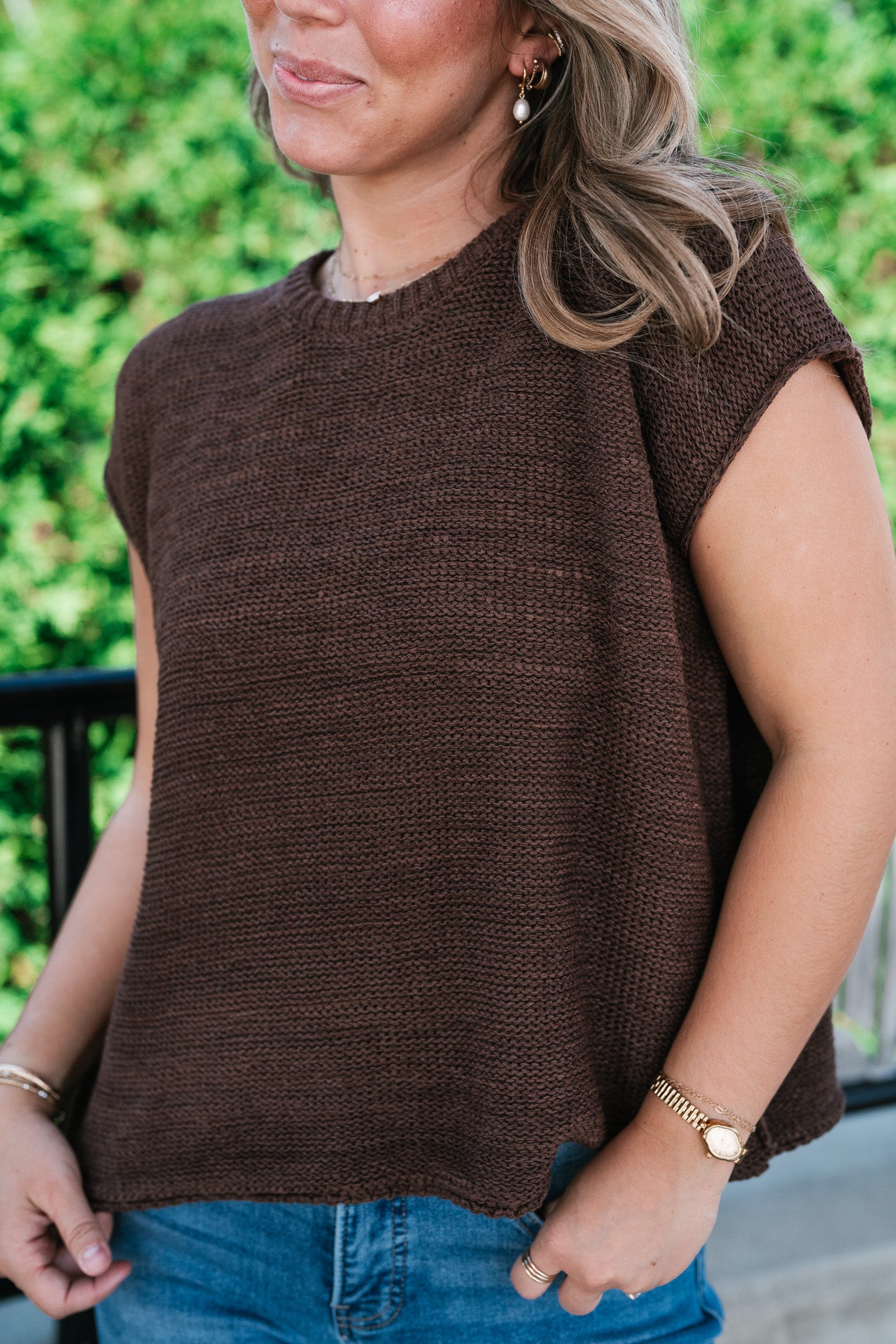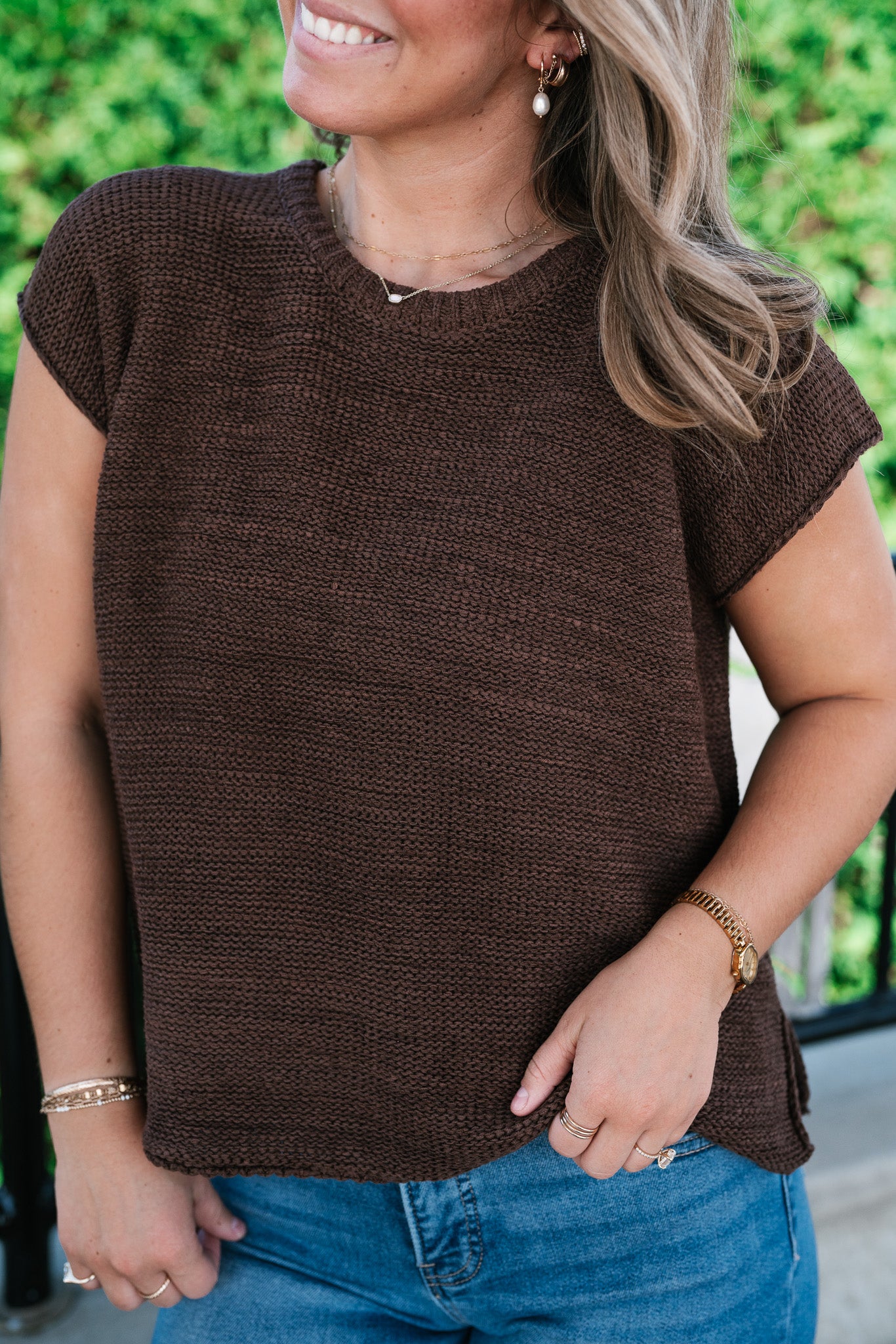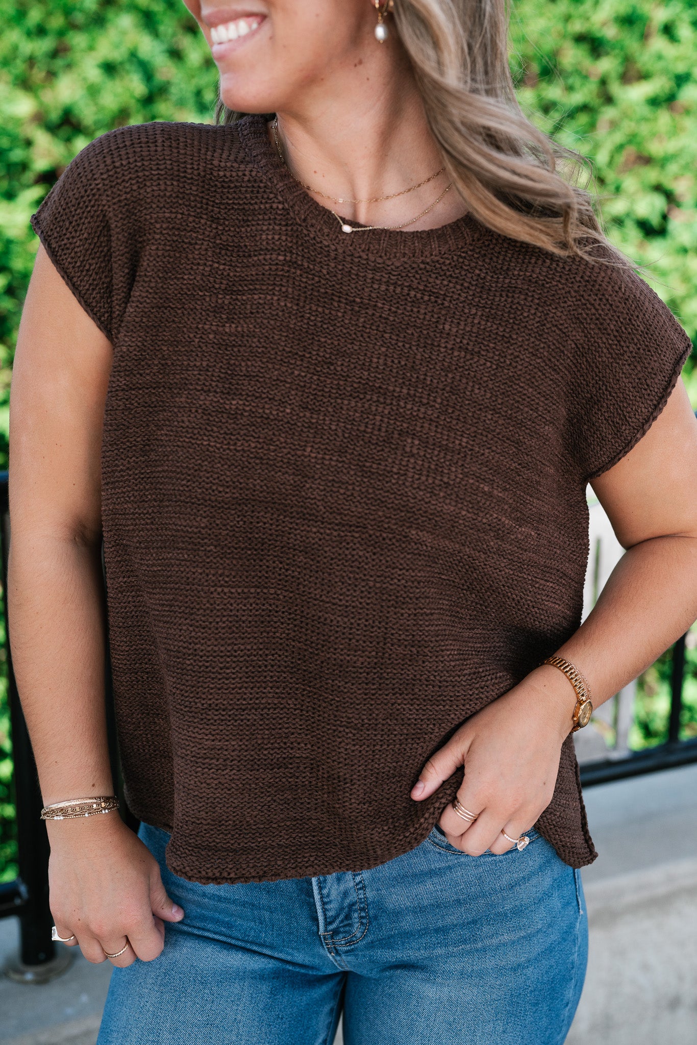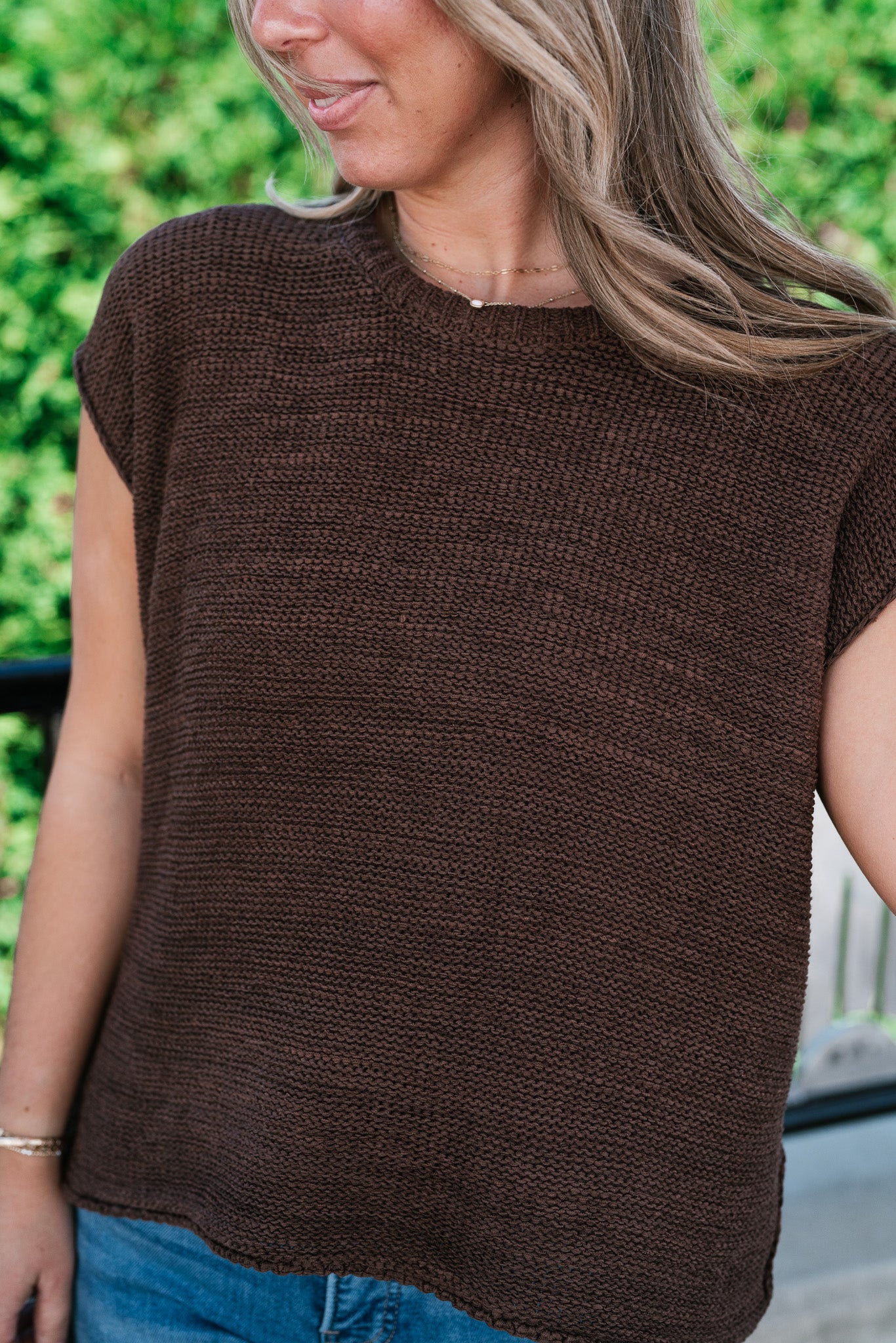 Everyday Ease Crew Neck Sweater Tank - Brown elevates your essentials.
