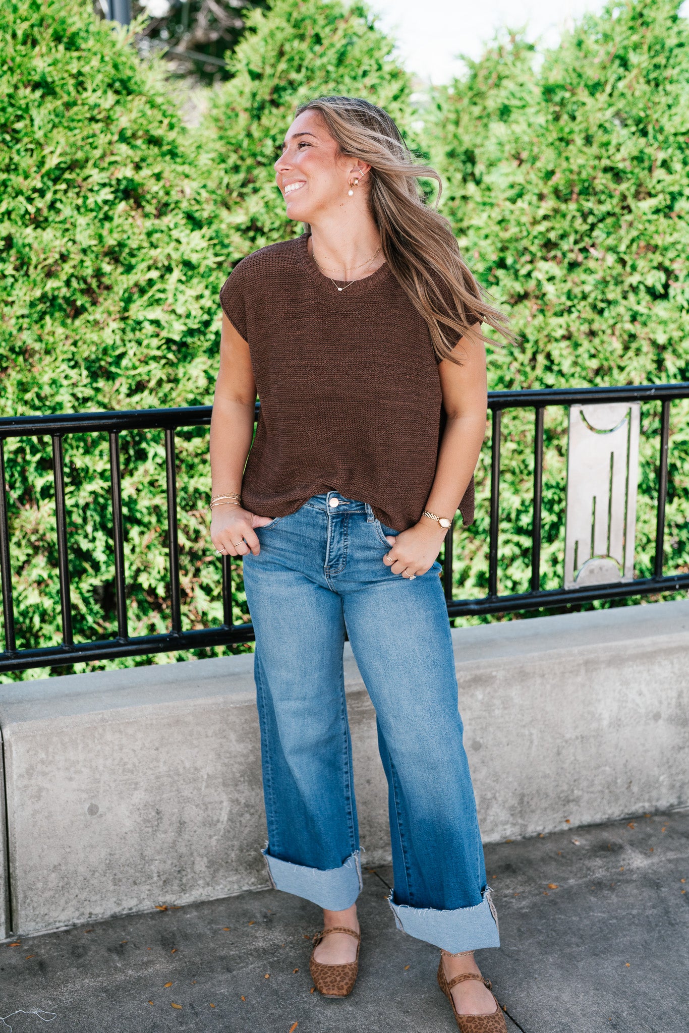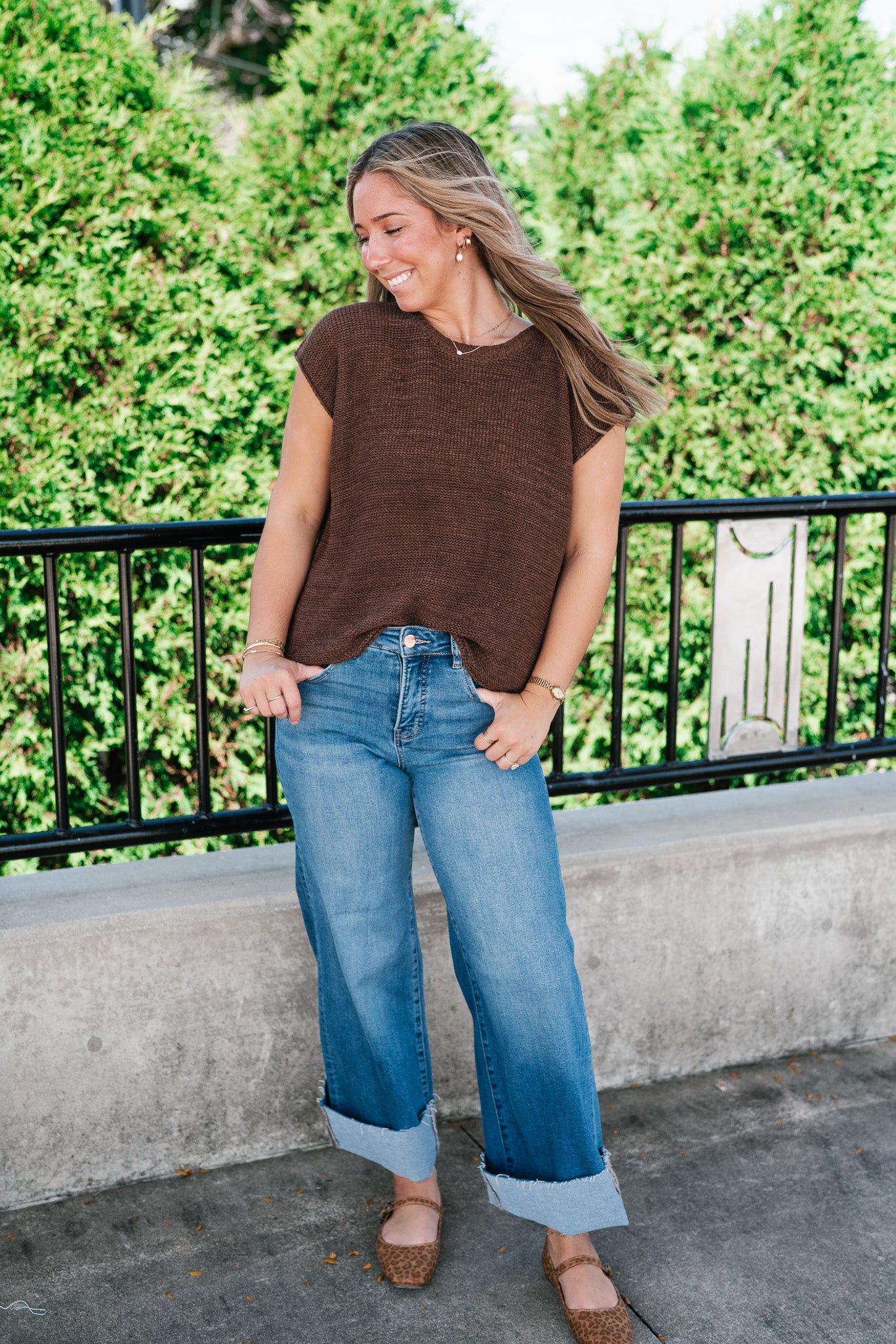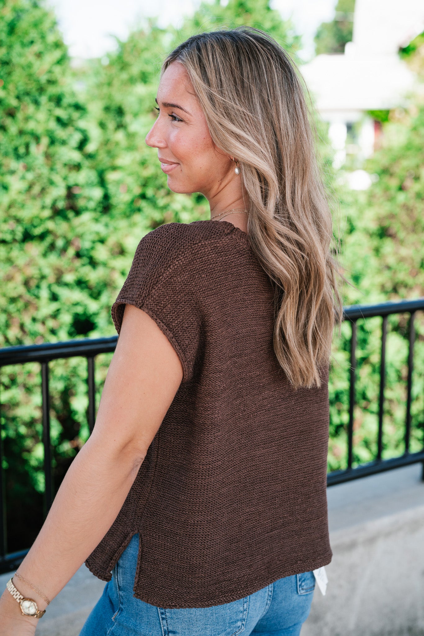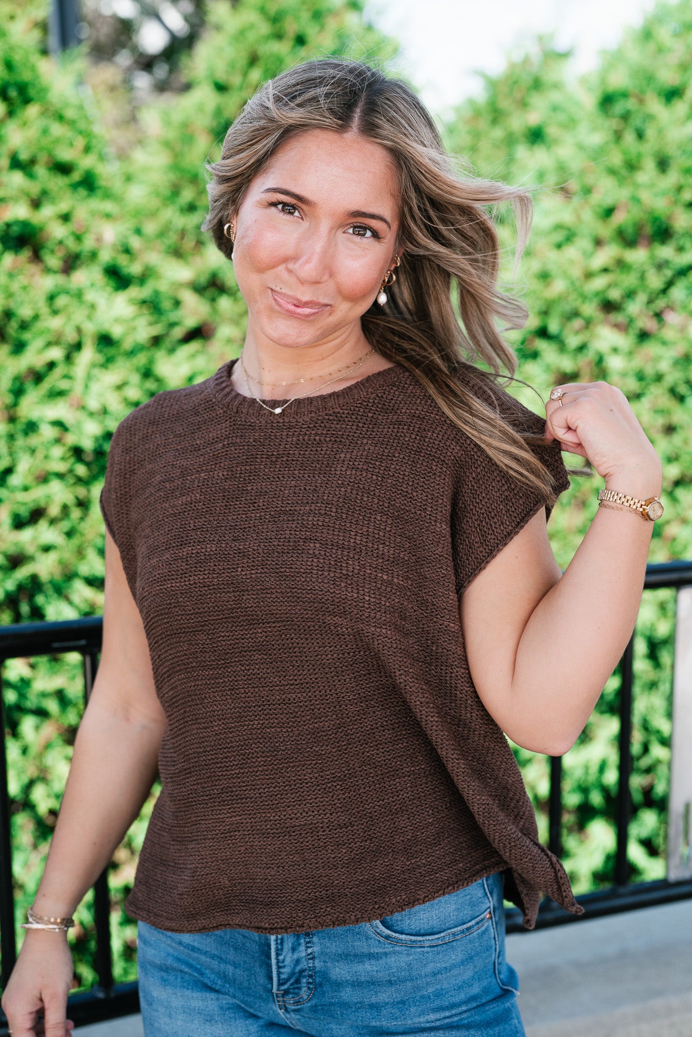 Everyday Ease Crew Neck Sweater Tank - Brown elevates your essentials.