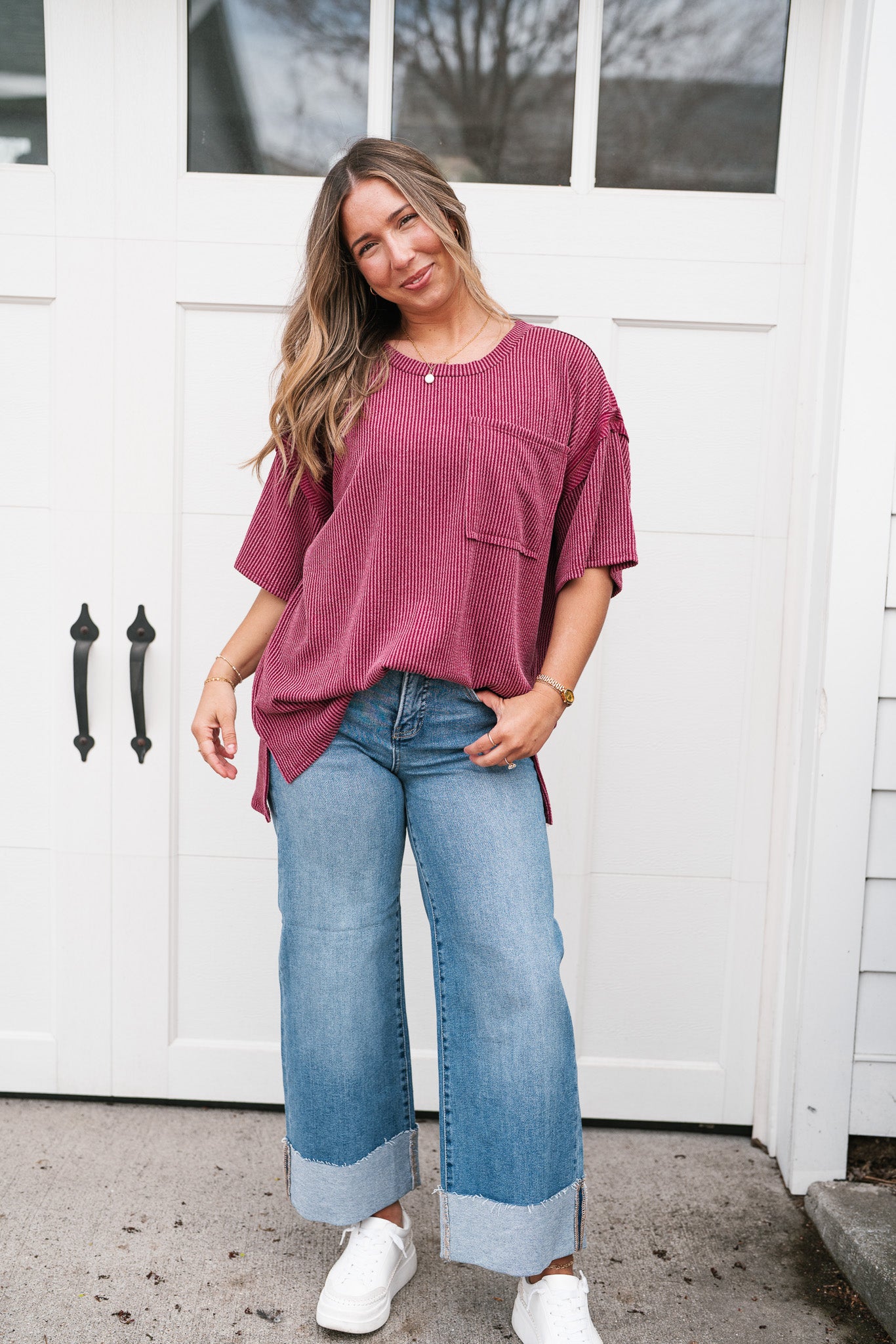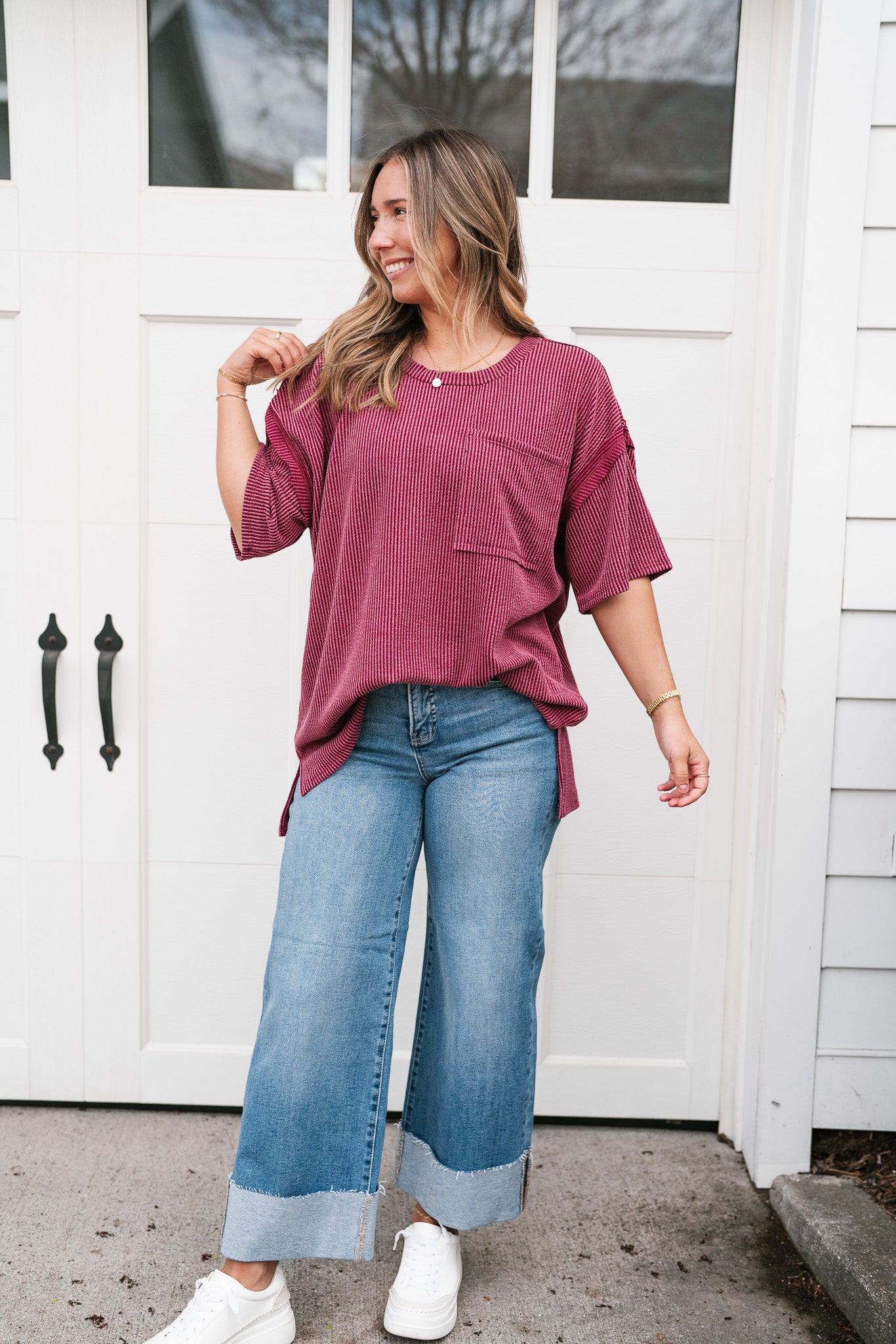 Forever Timeless Relaxed Ribbed Top- Burgundy – Birch & Bell Boutique