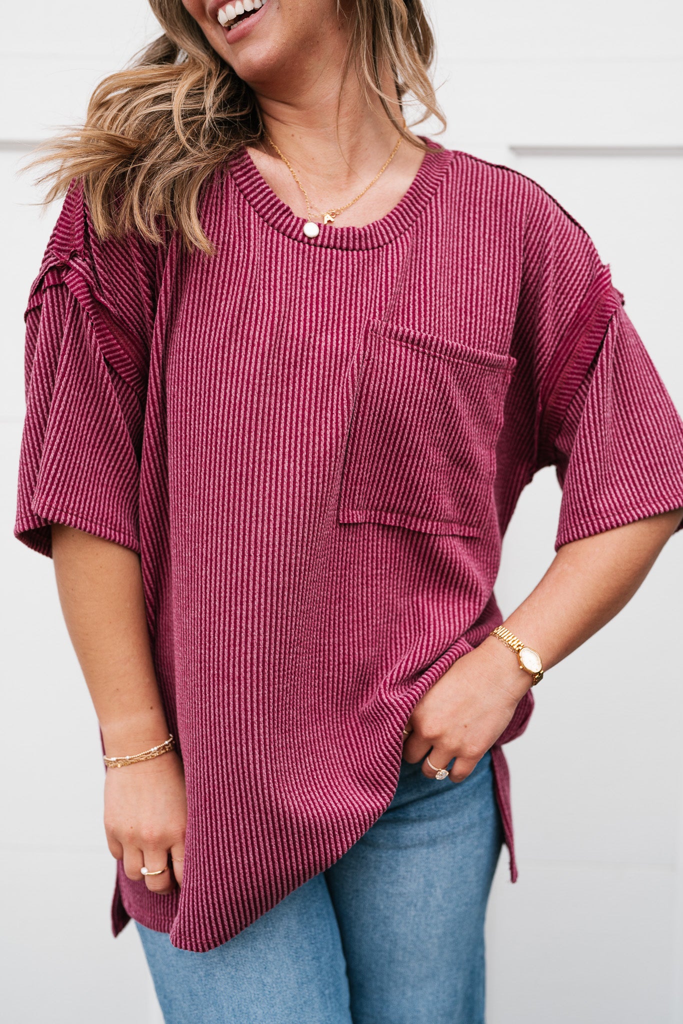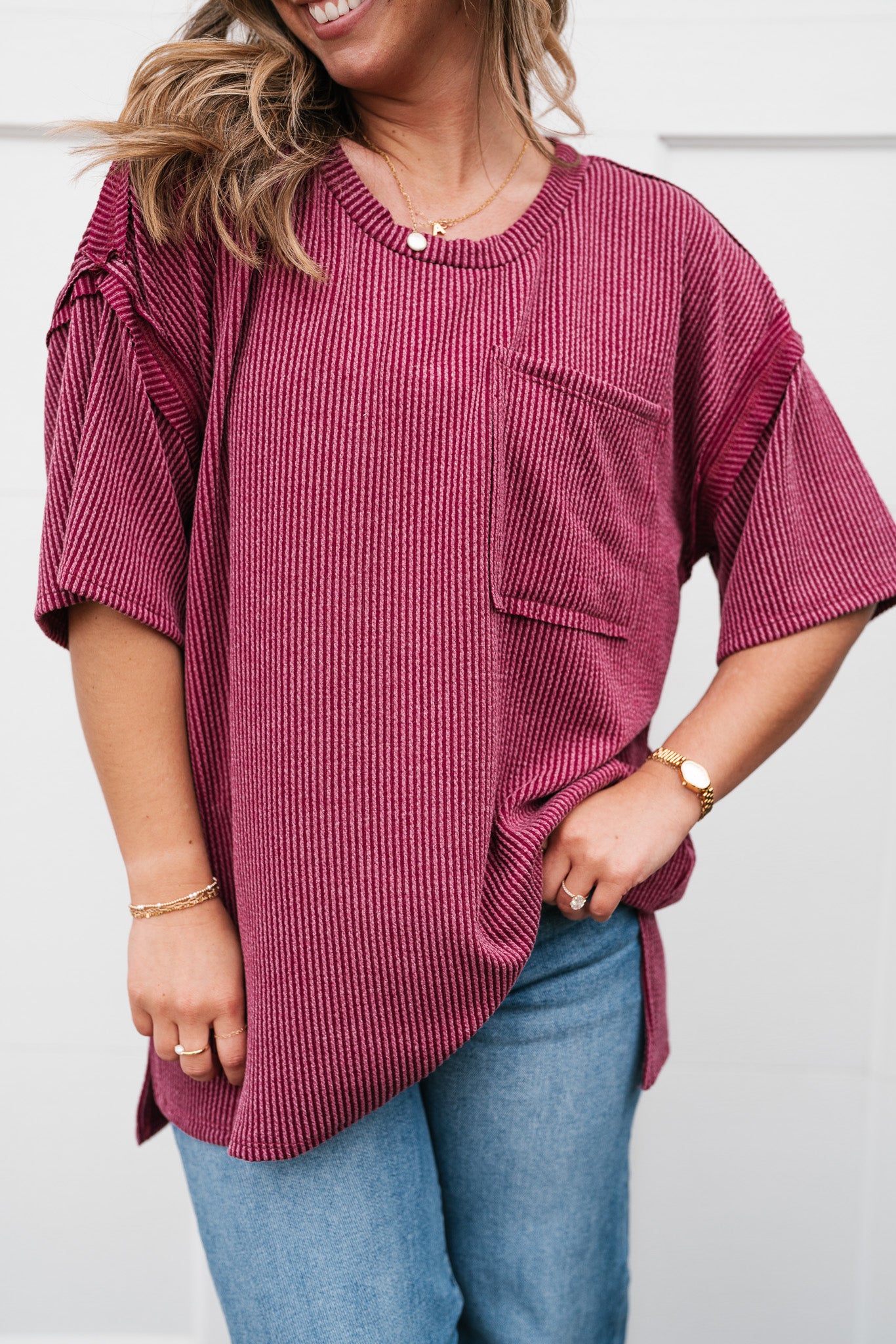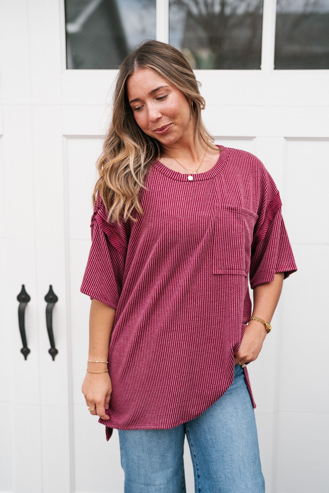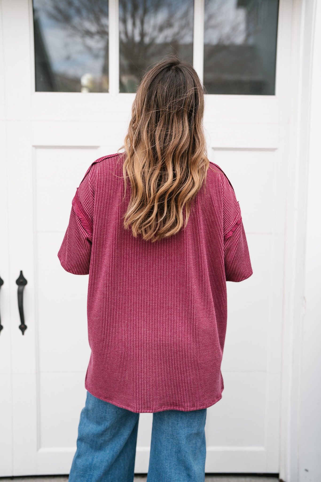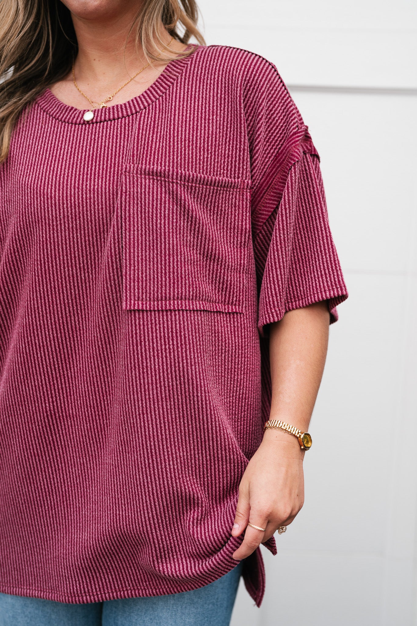 Forever Timeless Relaxed Ribbed Top- Burgundy