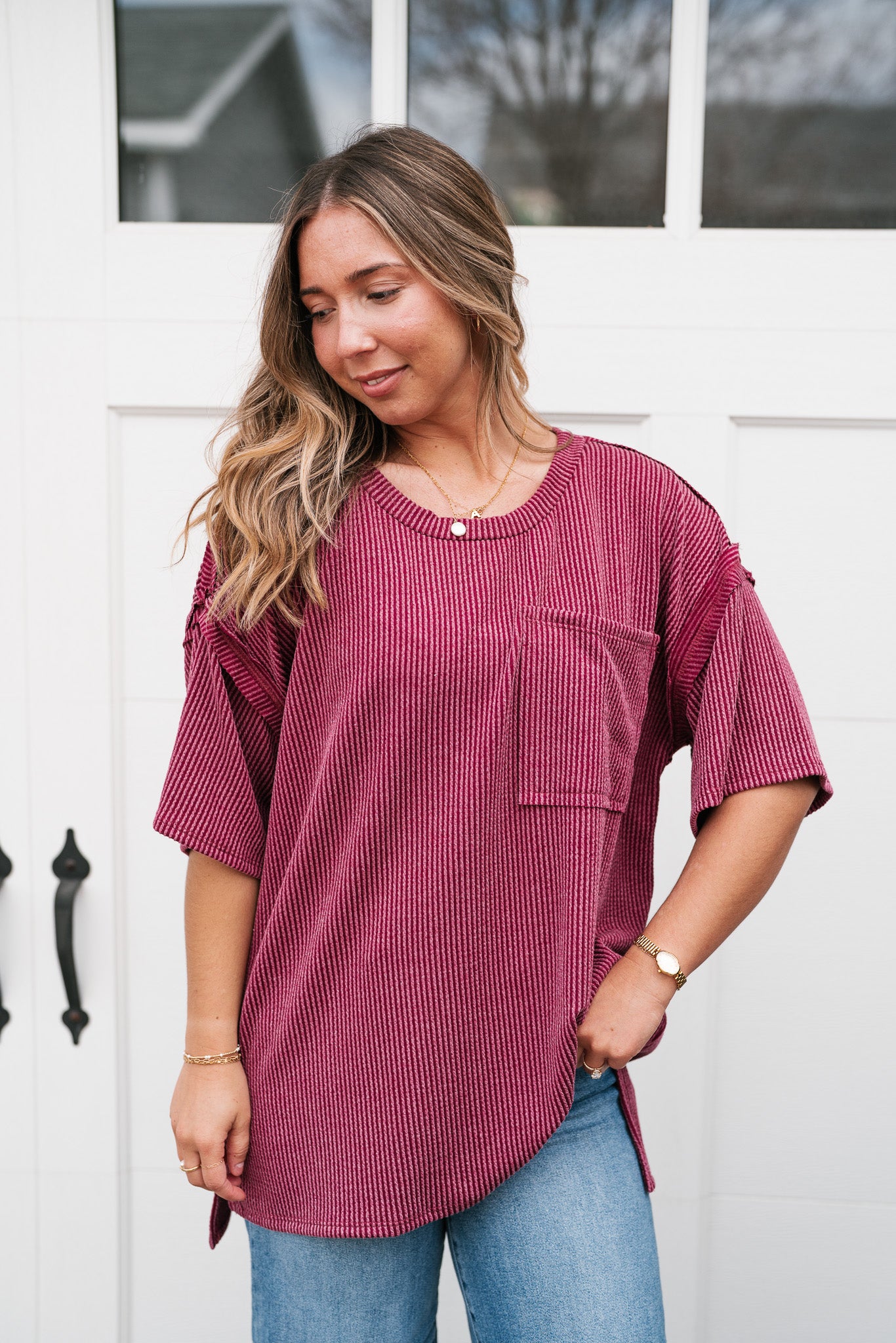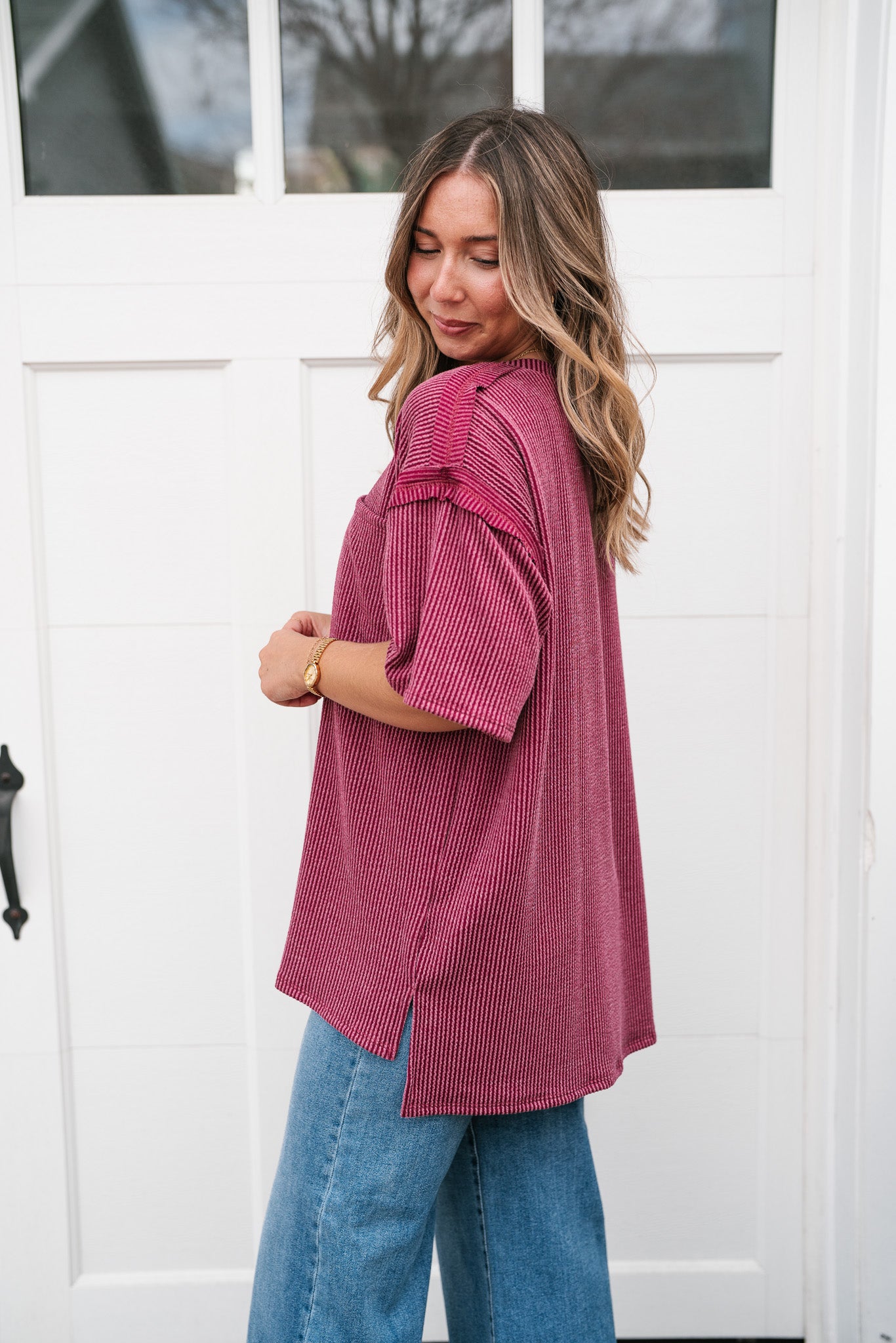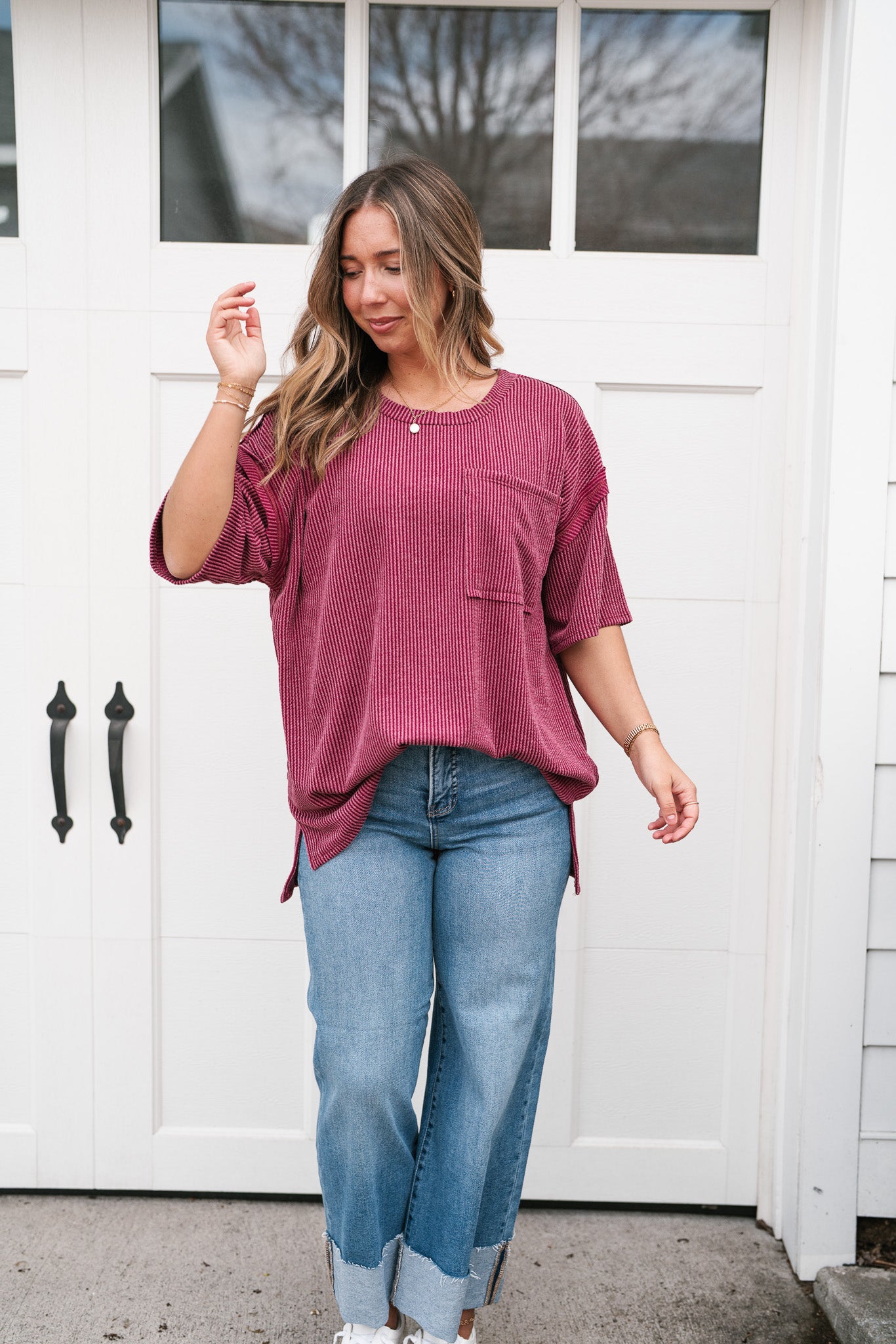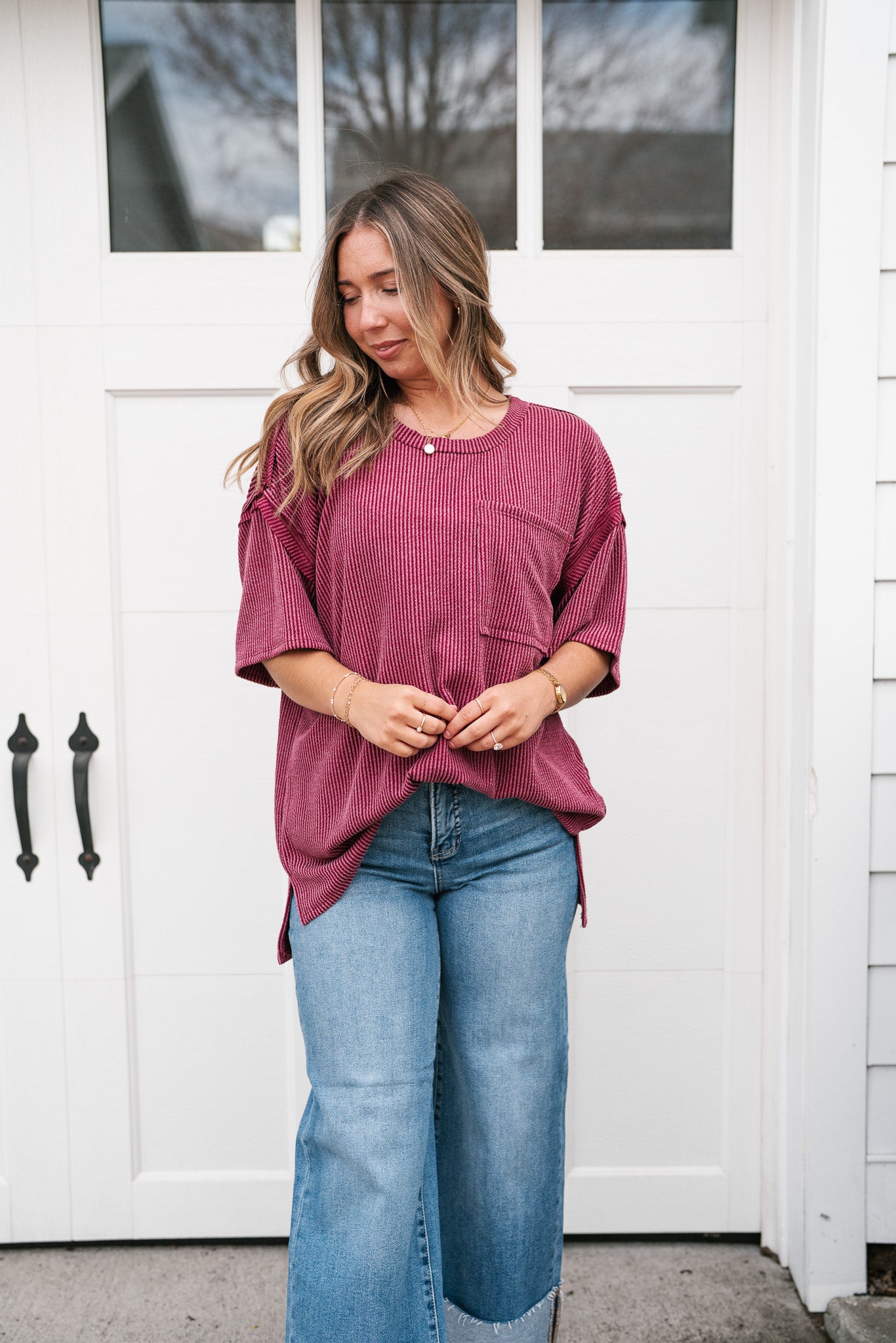 Forever Timeless Relaxed Ribbed Top- Burgundy