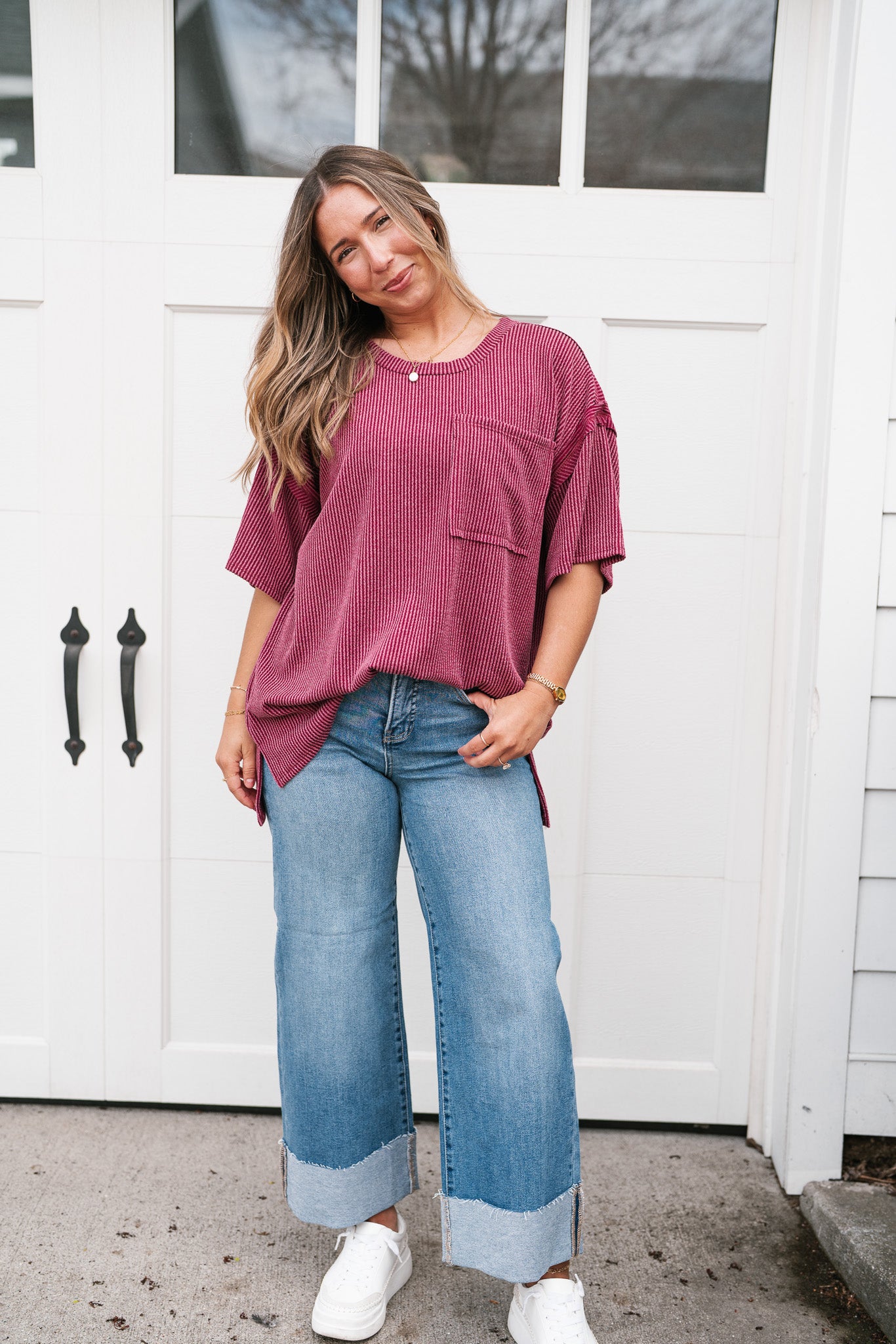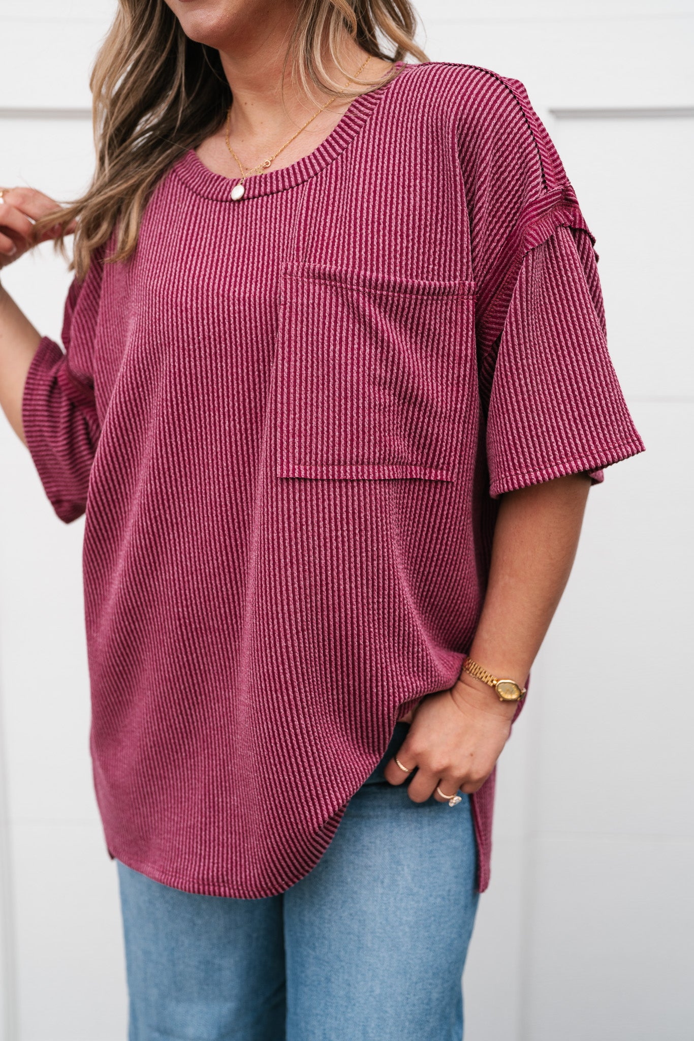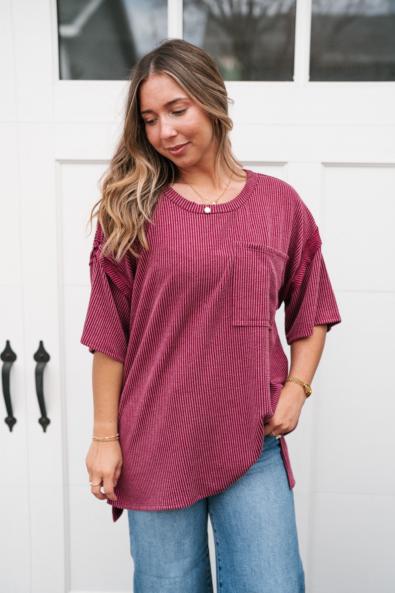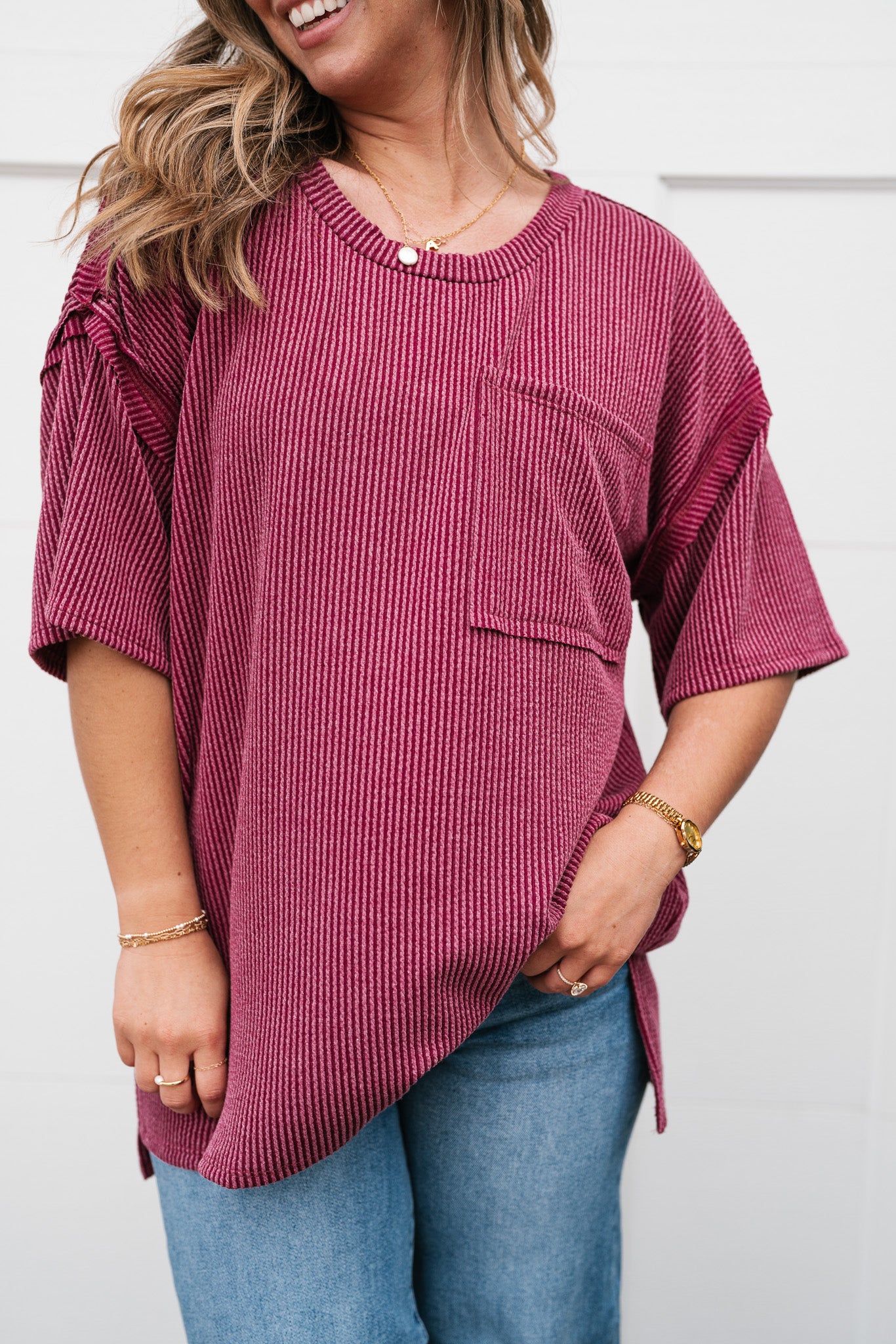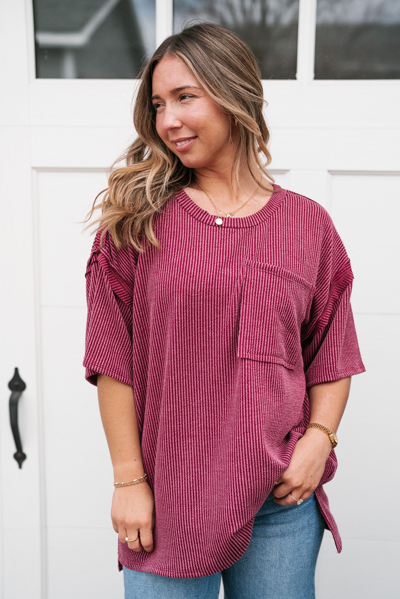 Forever Timeless Relaxed Ribbed Top- Burgundy