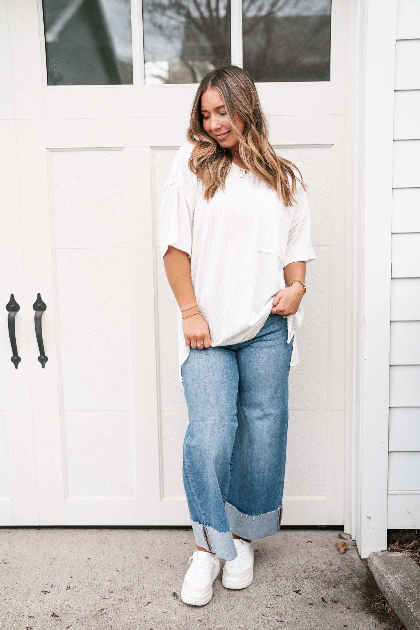 Forever Timeless Relaxed Ribbed Top- White – Birch & Bell Boutique