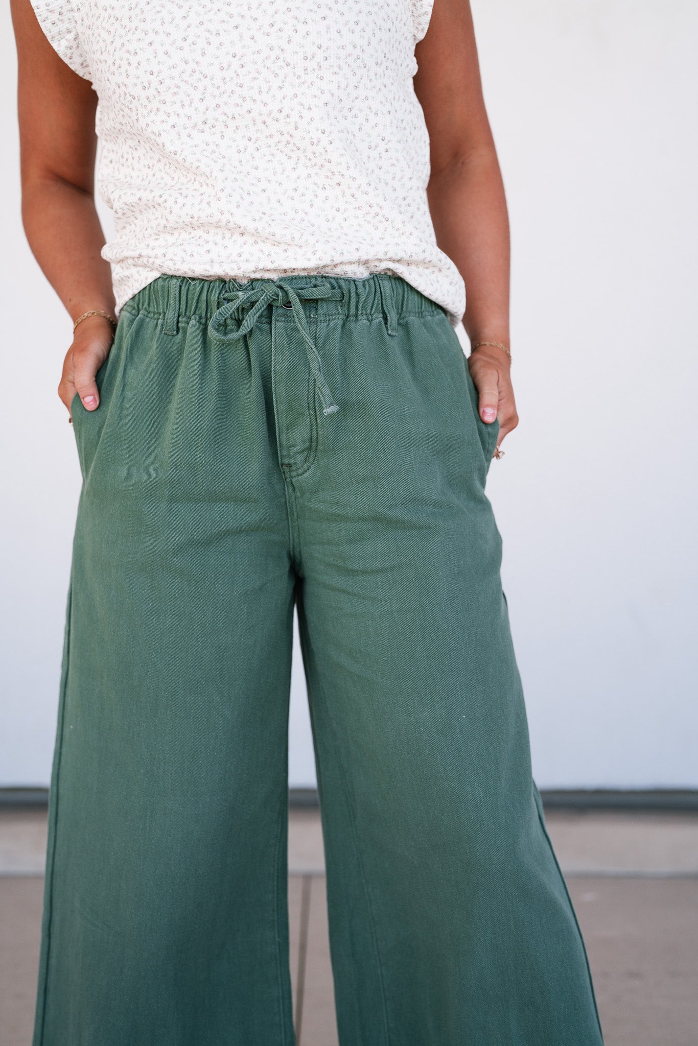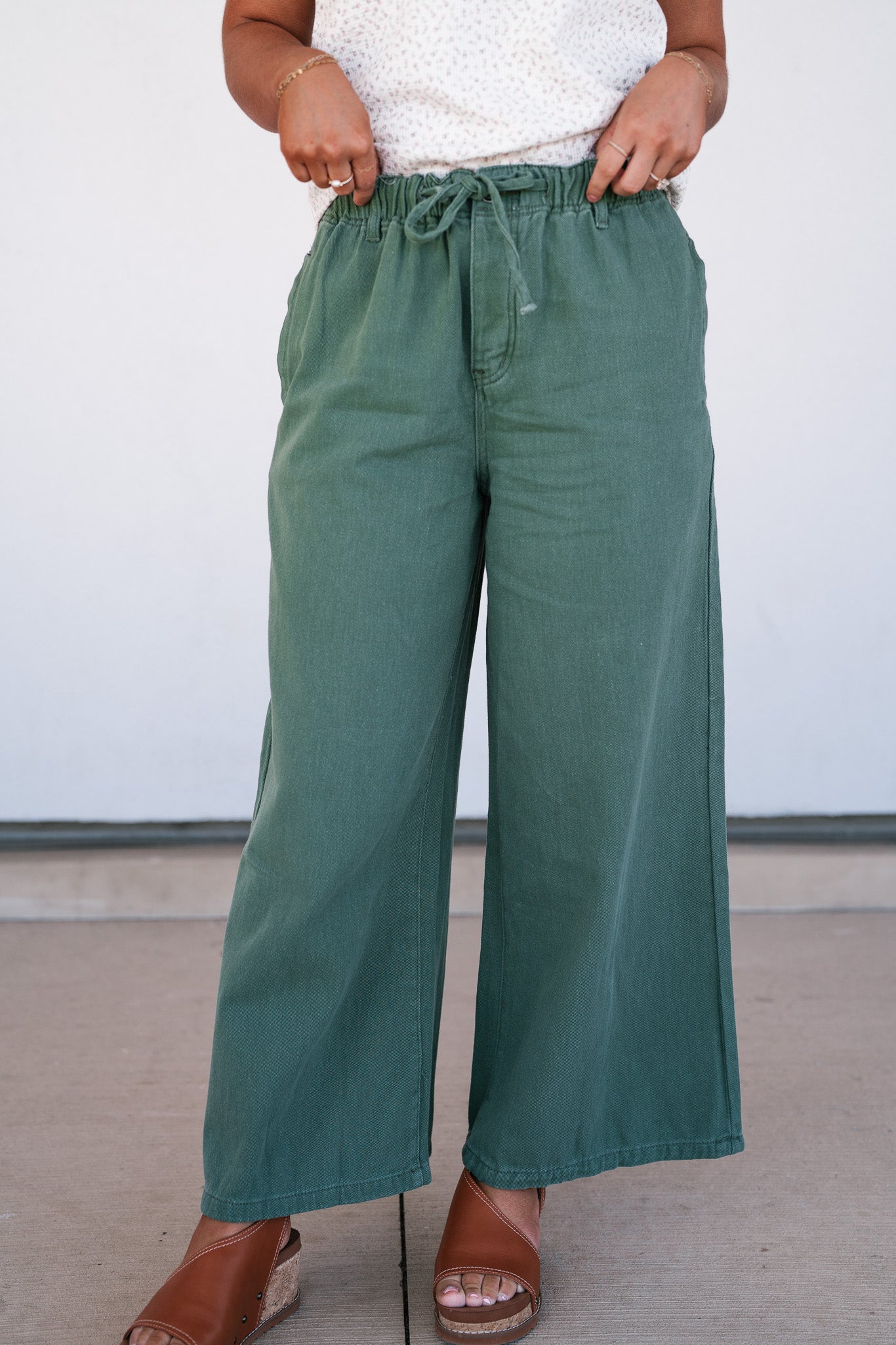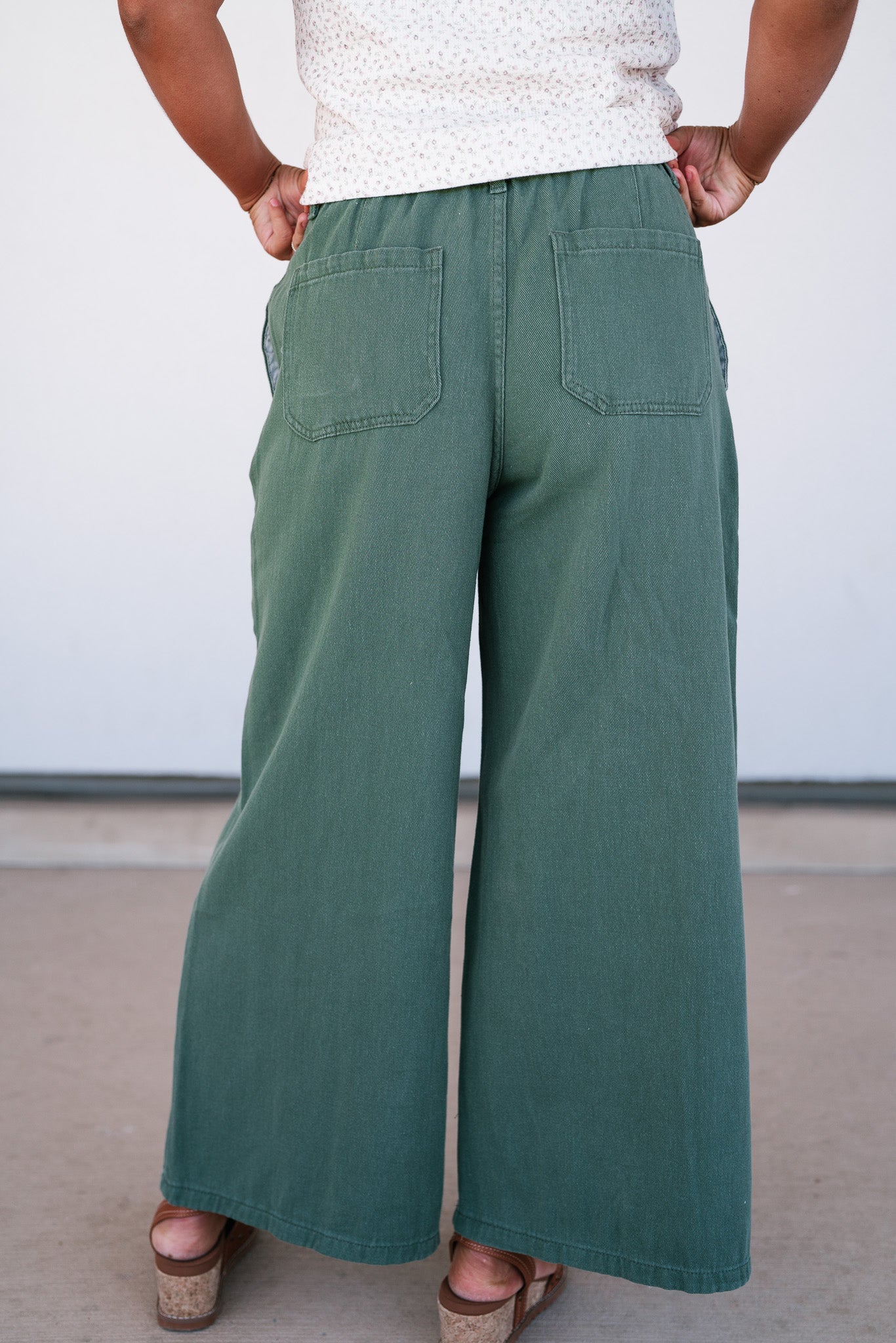 The Wander Free Twill Wide Leg Pants are the perfect blend of comfort and effortless style. Designed with a relaxed, wide-leg silhouette, these pants offer a breezy, free-flowing fit that moves with you. Crafted from soft yet durable twill fabric, they provide a structured look without compromising on ease. Featuring a high-rise waist for a flattering fit, side pockets for convenience, and a versatile design that pairs well with anything from casual tees to dressy blouses, these pants are a must-have for any wardrobe. Whether you're exploring the city or lounging in style, the Wander Free Twill Wide Leg Pants are your go-to for chic, all-day wear.