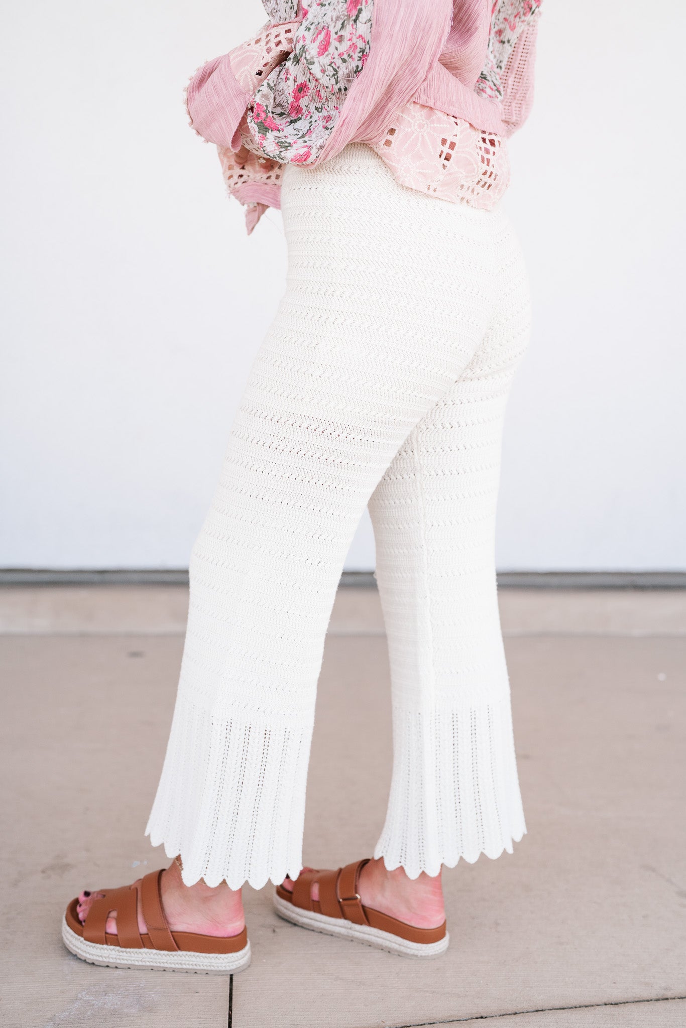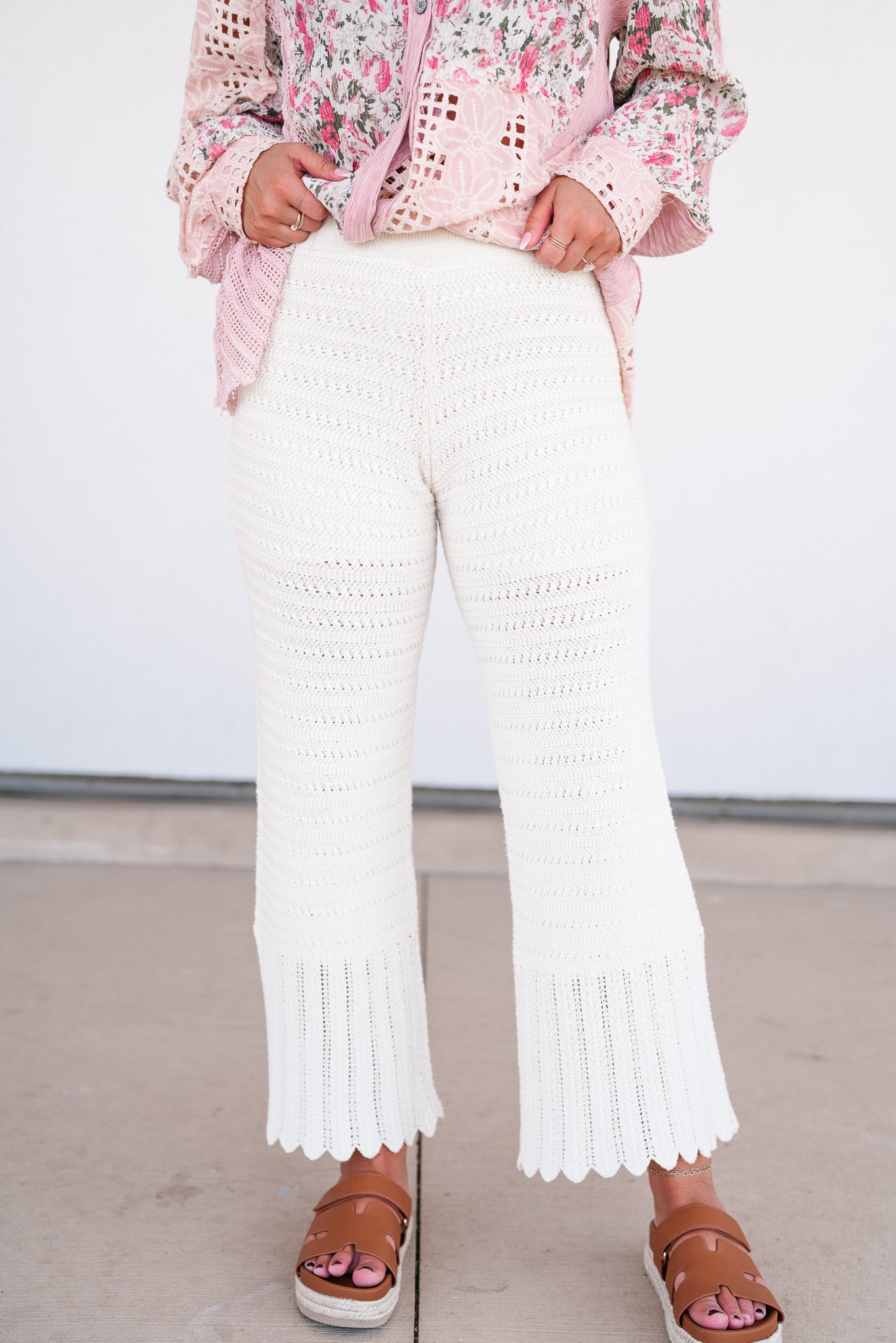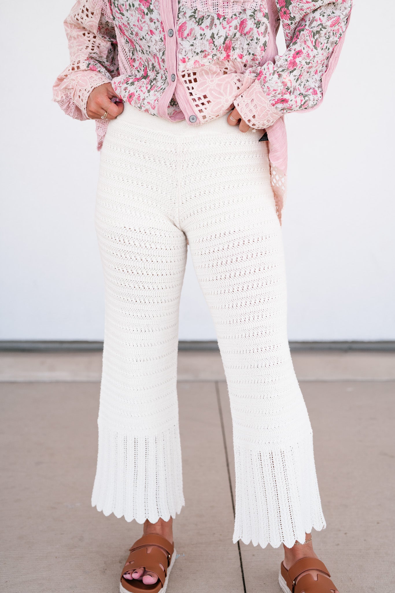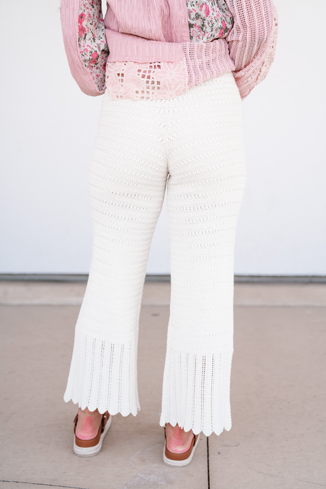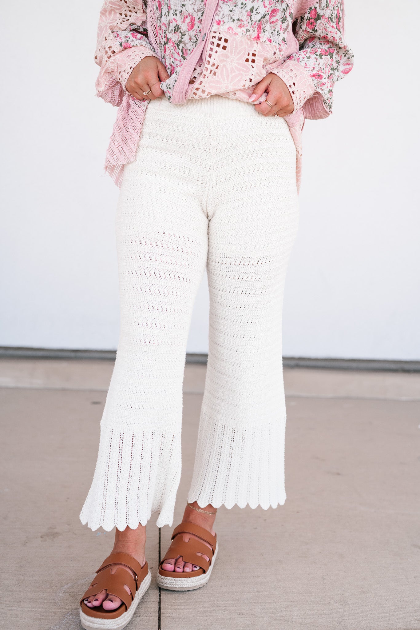 Elevate your loungewear look with the Weekend Retreat Crochet Flare Wide-Leg Pants—where comfort meets effortless style. These beautifully textured pants feature a luxe crochet-inspired knit pattern, a flattering high-rise fit, and a soft, elastic waistband for all-day comfort. The wide leg silhouette offers graceful movement and a relaxed, airy feel that's perfect for both lounging at home and casual outings. Style them with a fitted tank, an oversized button-up, or the matching knit top for a chic, coordinated set you'll want to live in.