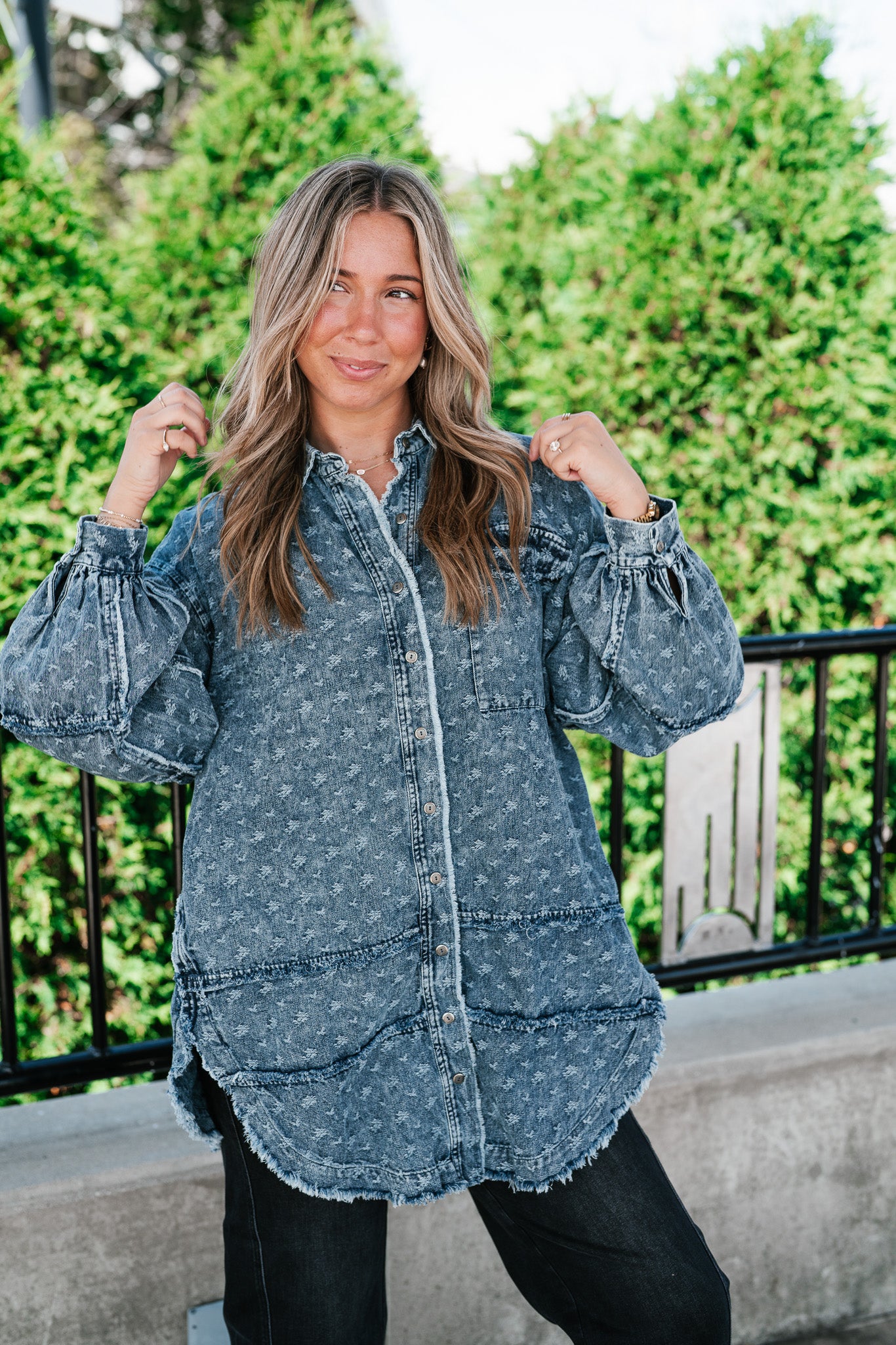 Western Skies Oversized Denim Shacket brings effortless cool to your wardrobe.