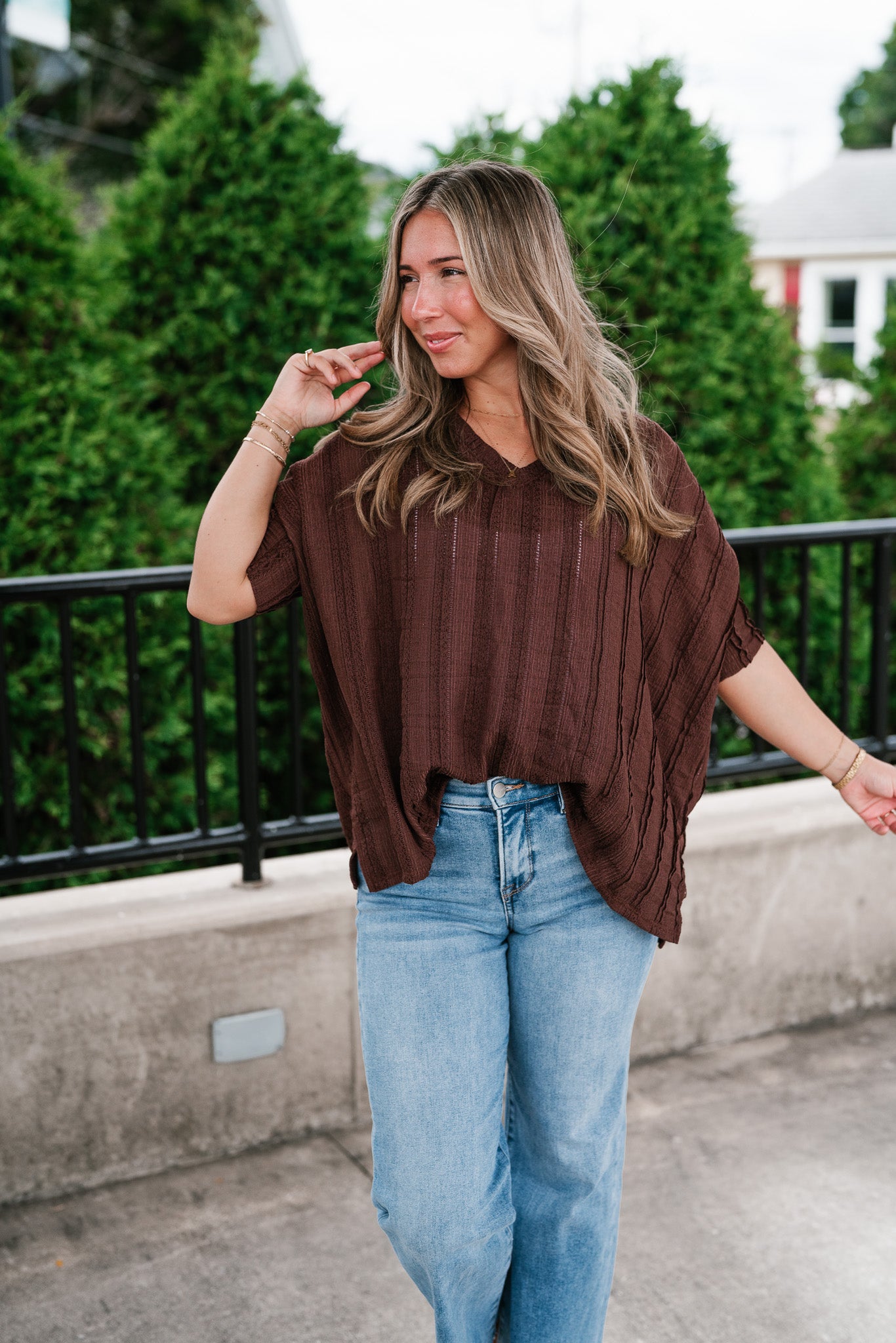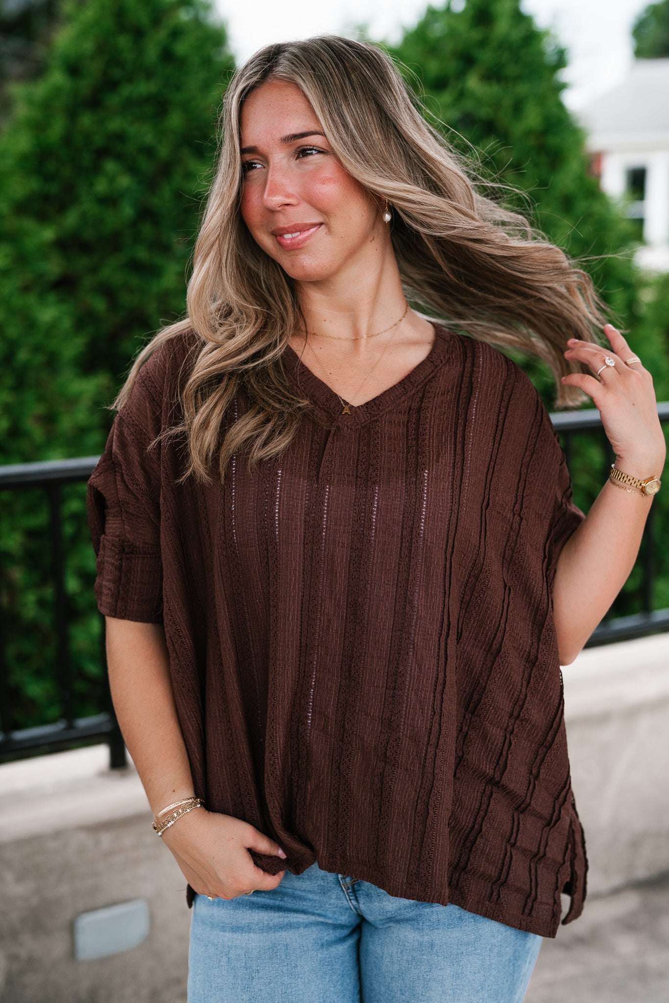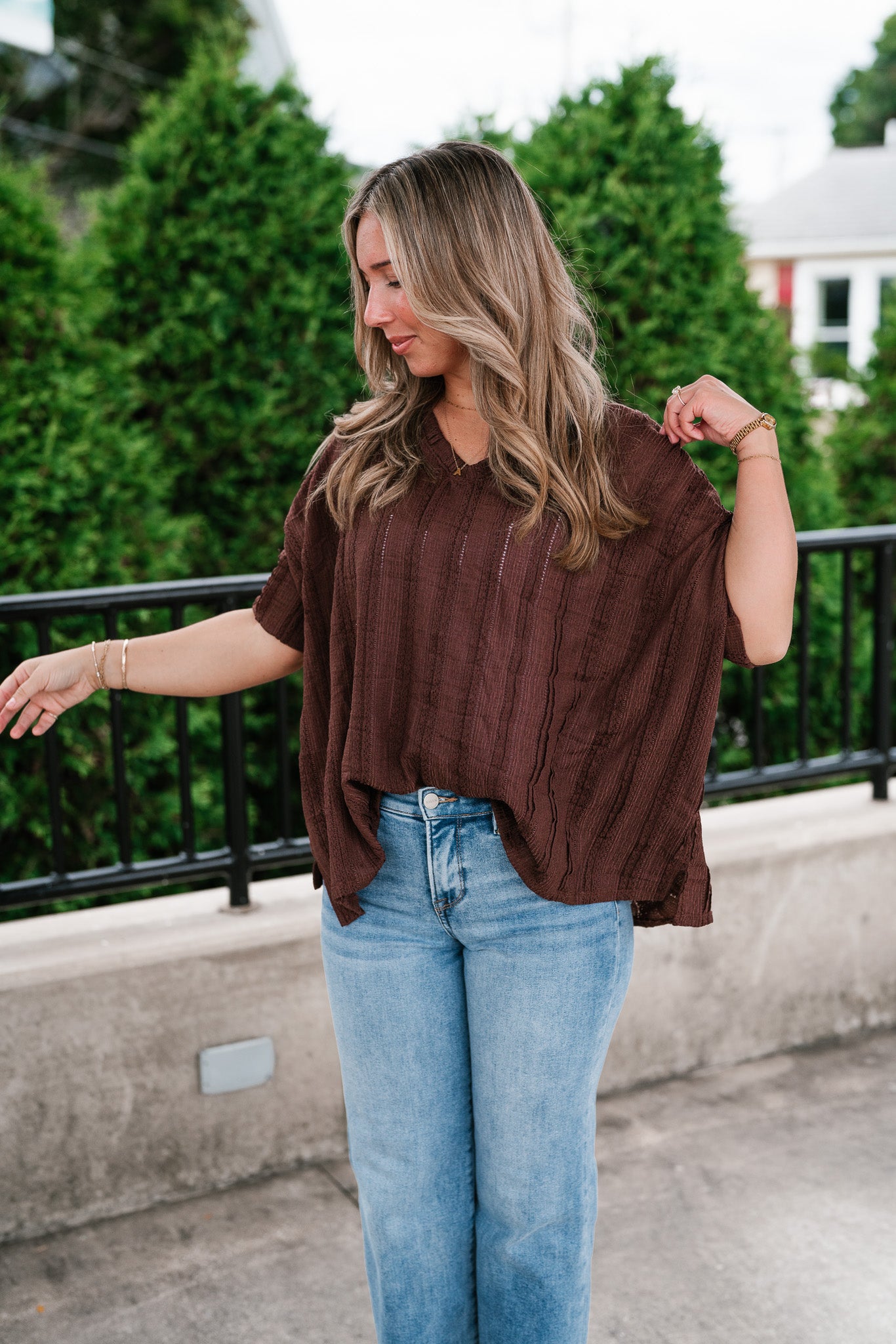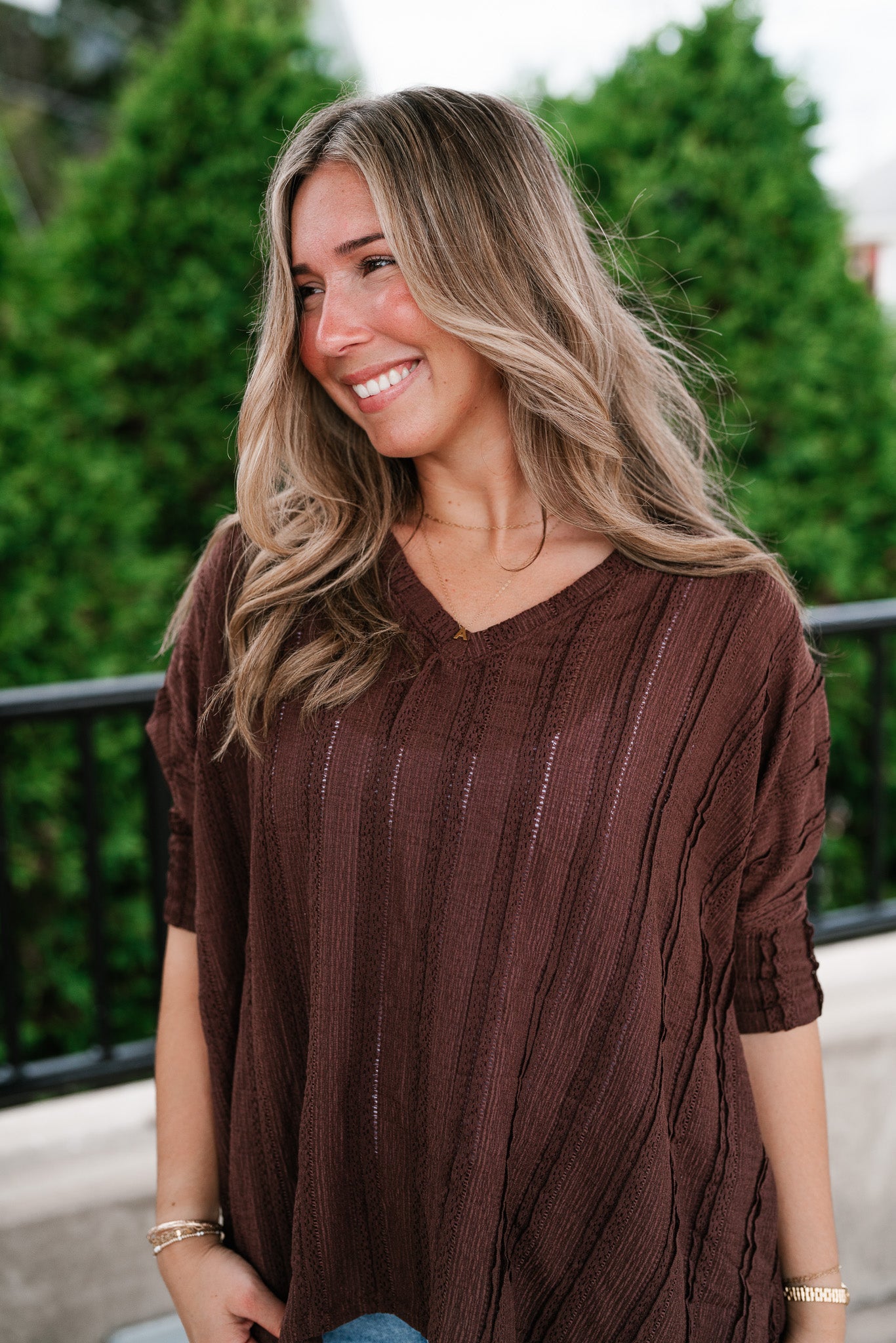 Experience effortless comfort and subtle style with the Willows Textures Relaxed Top. Crafted from a soft, textured fabric, this relaxed-fit top drapes beautifully for a laid-back yet polished look. Featuring a v-neckline and short sleeves, it’s perfect for layering or wearing on its own. The chocolate tone and tactile texture adds depth to your everyday wardrobe, making it easy to pair with jeans, skirts, or tailored pants. Whether you’re lounging at home or stepping out for casual errands, the Willows Top delivers cozy sophistication with a modern edge.
