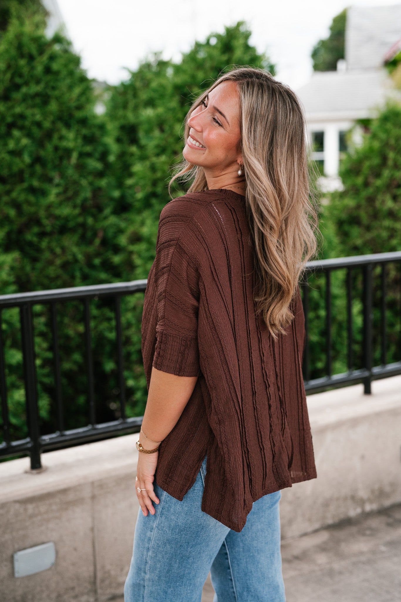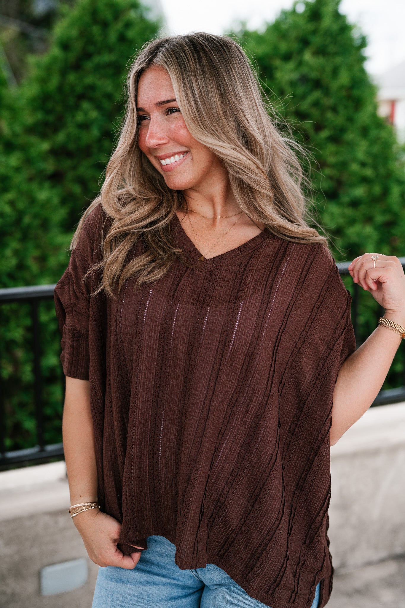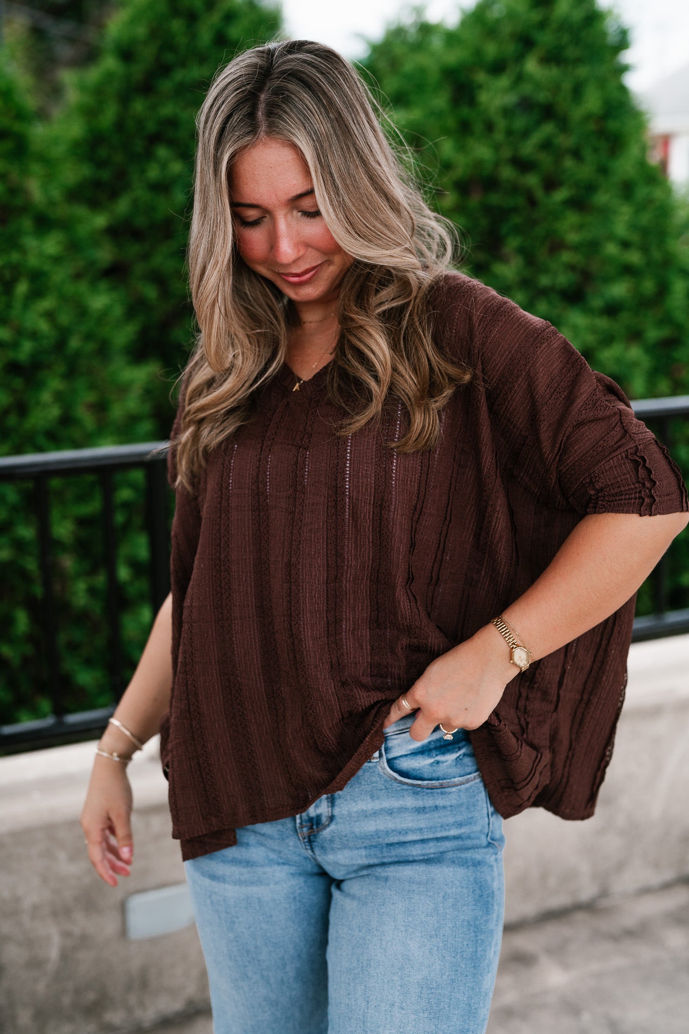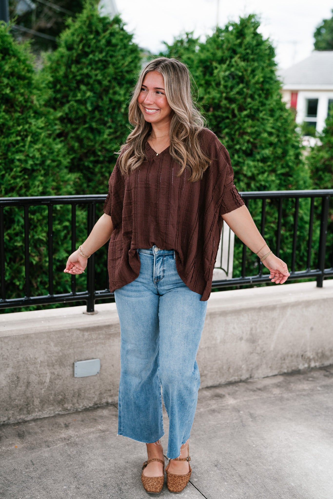 Experience effortless comfort and subtle style with the Willows Textures Relaxed Top. Crafted from a soft, textured fabric, this relaxed-fit top drapes beautifully for a laid-back yet polished look. Featuring a v-neckline and short sleeves, it’s perfect for layering or wearing on its own. The chocolate tone and tactile texture adds depth to your everyday wardrobe, making it easy to pair with jeans, skirts, or tailored pants. Whether you’re lounging at home or stepping out for casual errands, the Willows Top delivers cozy sophistication with a modern edge.