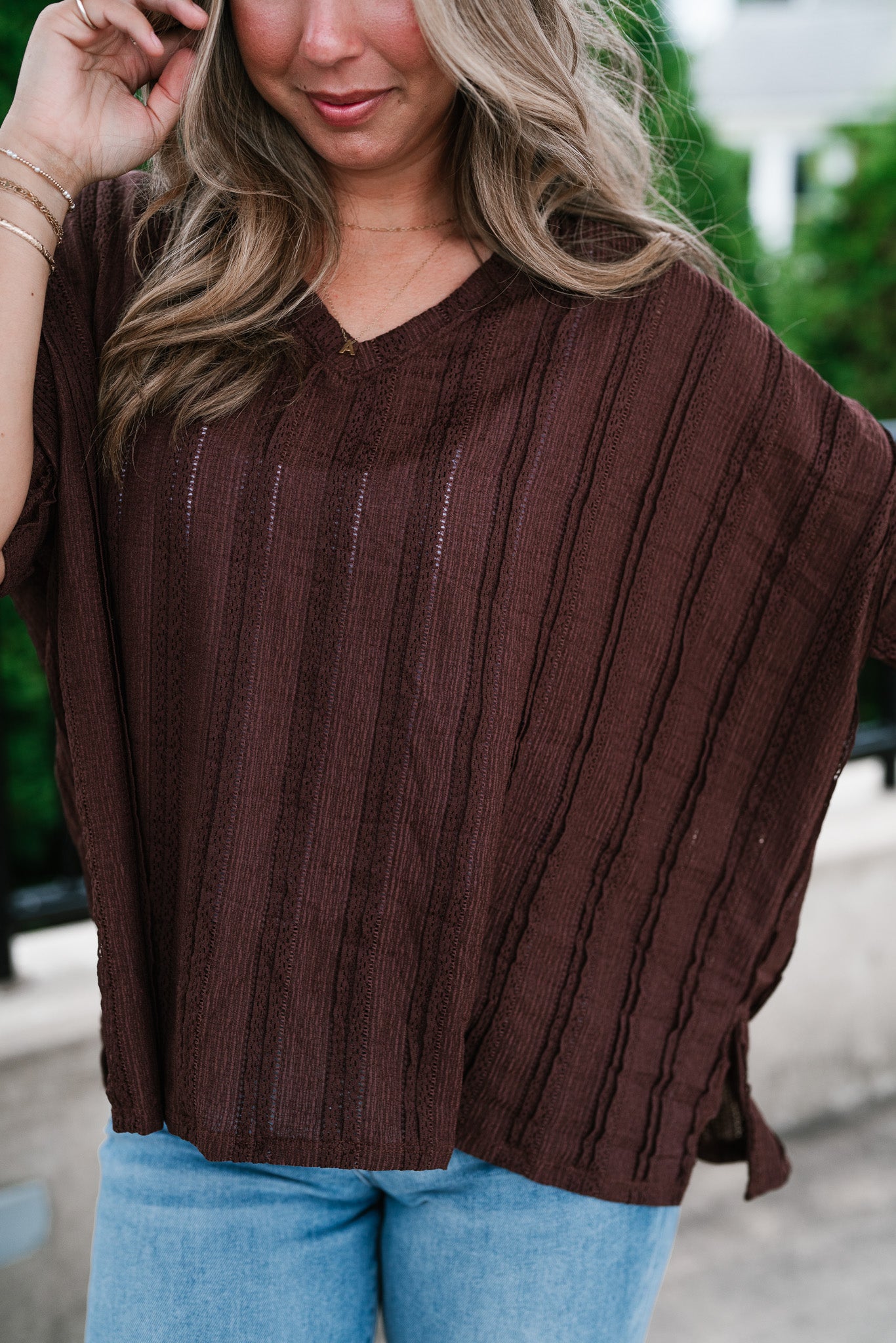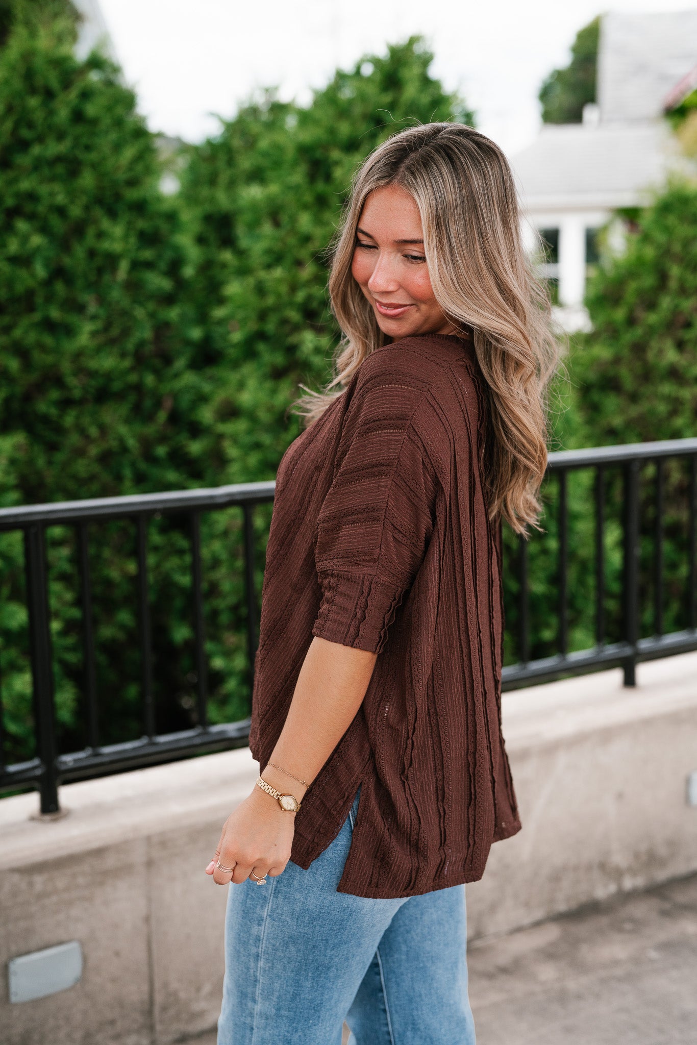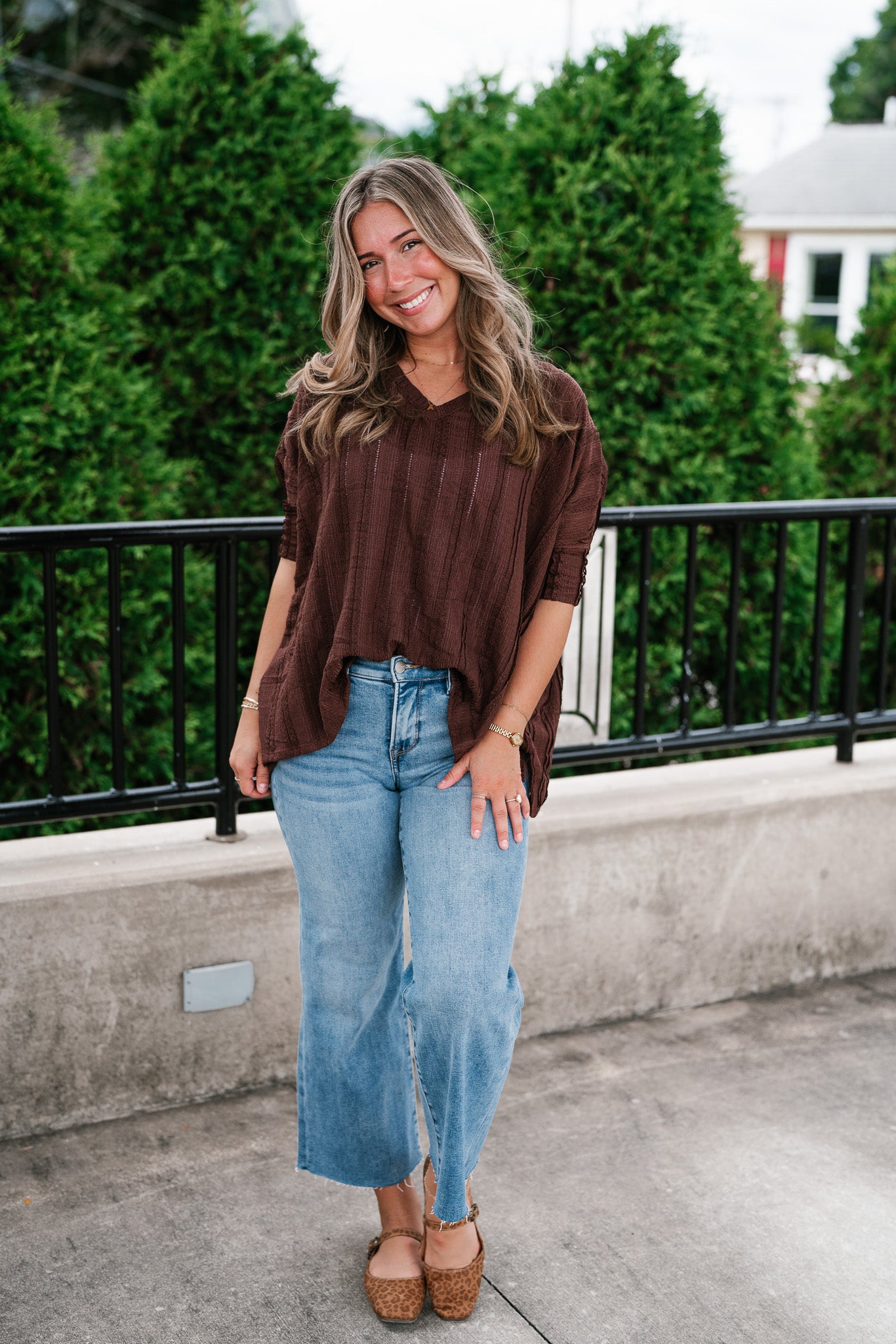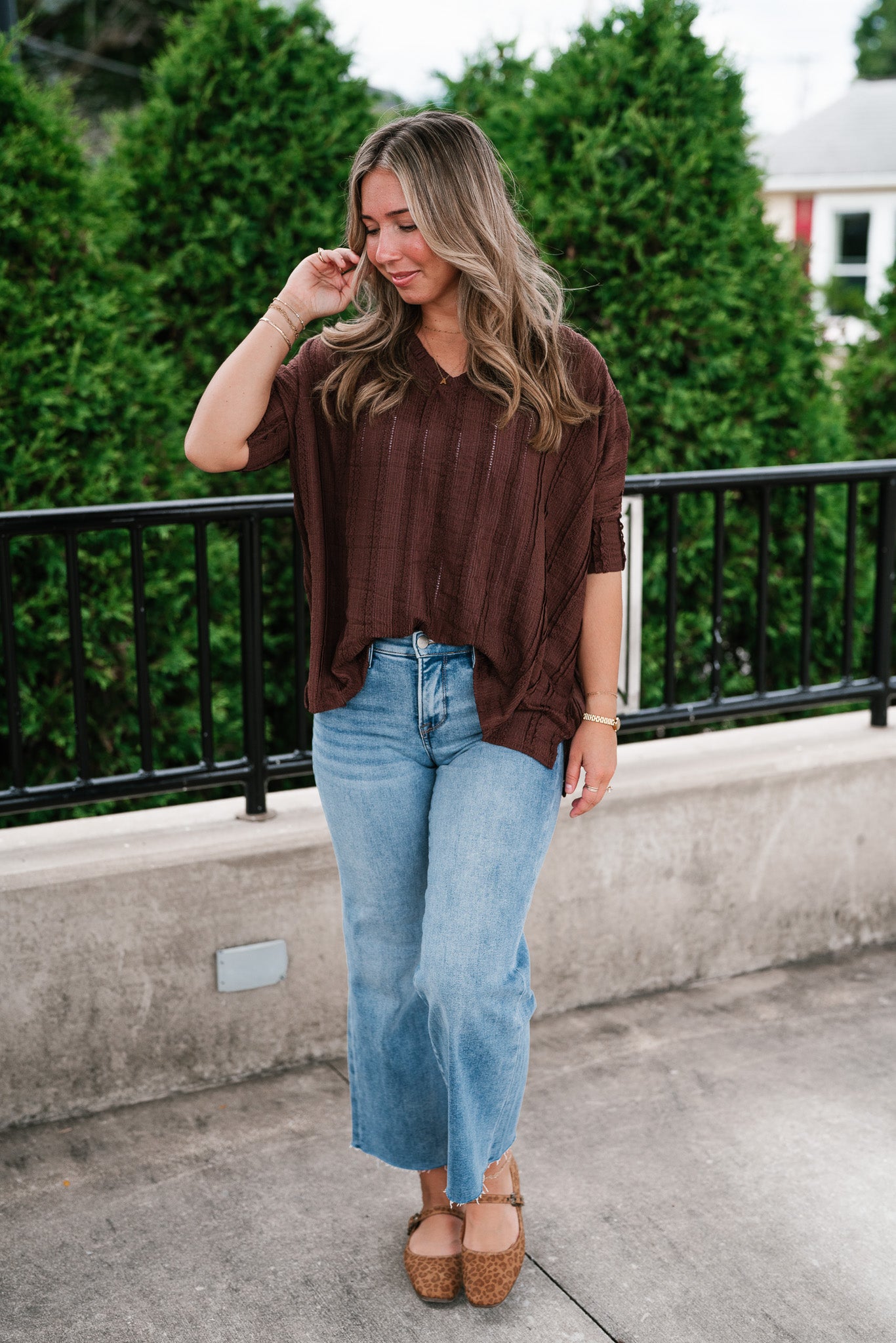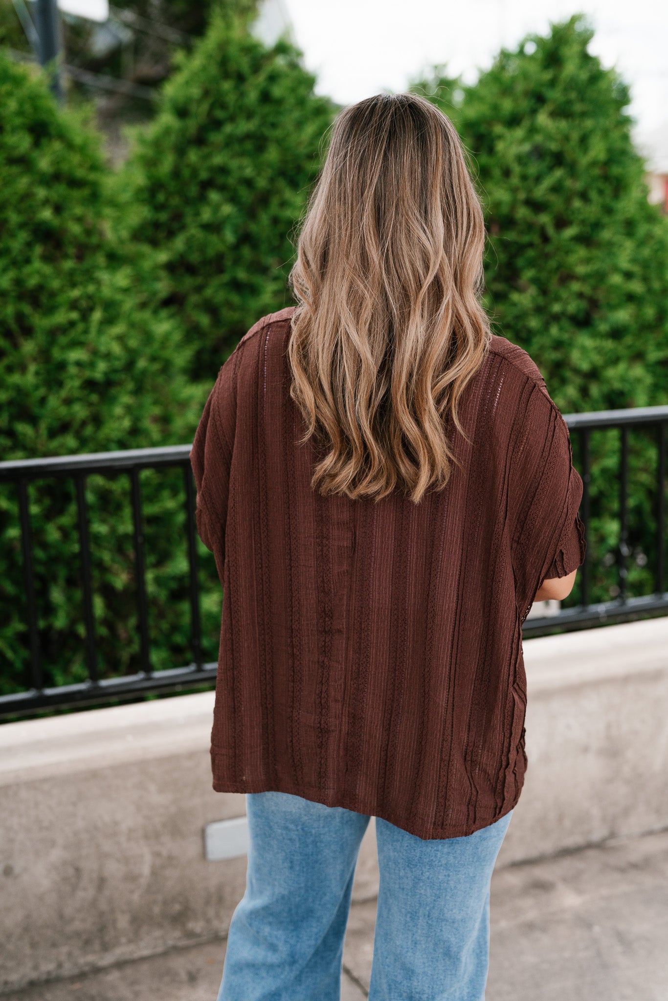 Experience effortless comfort and subtle style with the Willows Textures Relaxed Top. Crafted from a soft, textured fabric, this relaxed-fit top drapes beautifully for a laid-back yet polished look. Featuring a v-neckline and short sleeves, it’s perfect for layering or wearing on its own. The chocolate tone and tactile texture adds depth to your everyday wardrobe, making it easy to pair with jeans, skirts, or tailored pants. Whether you’re lounging at home or stepping out for casual errands, the Willows Top delivers cozy sophistication with a modern edge.