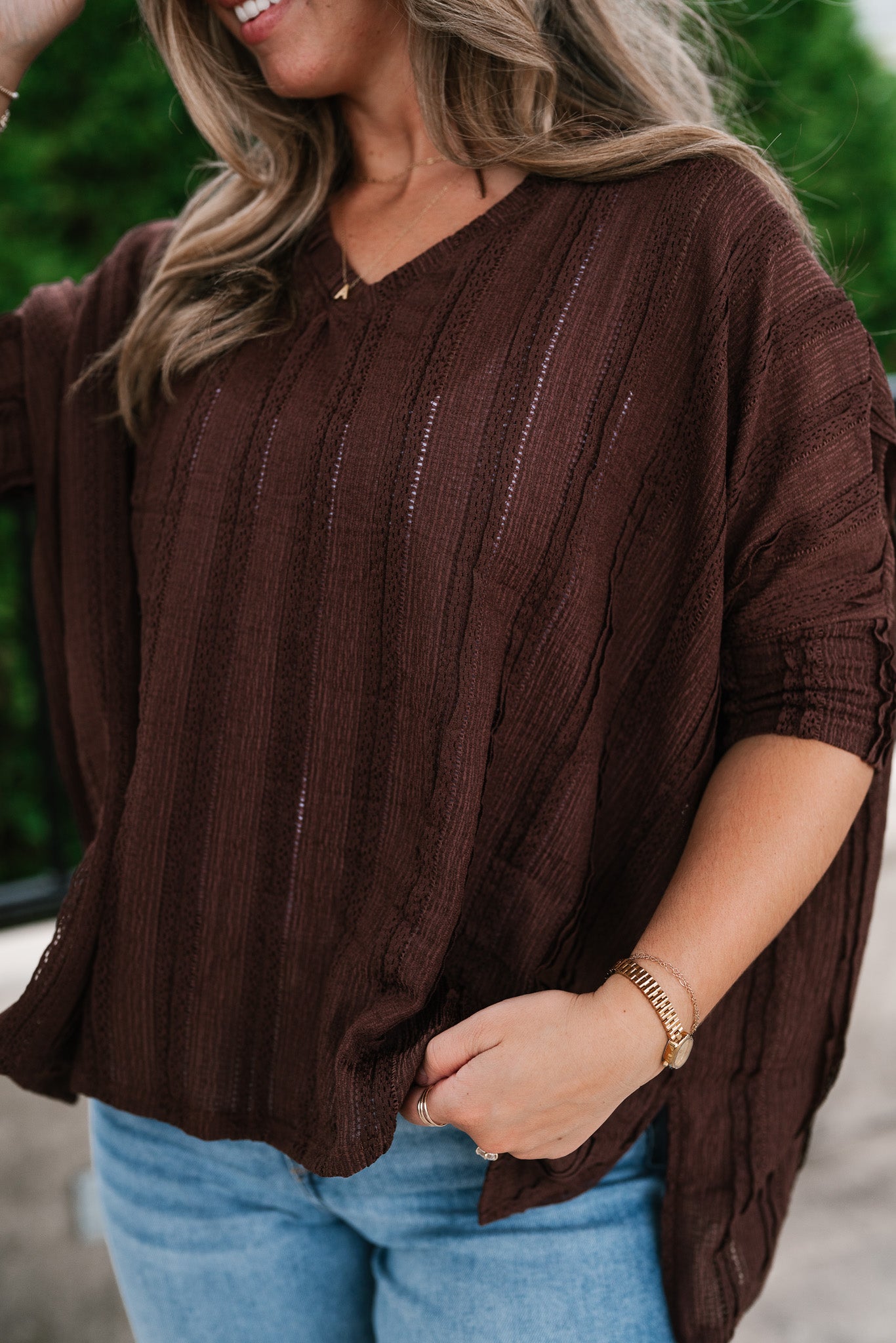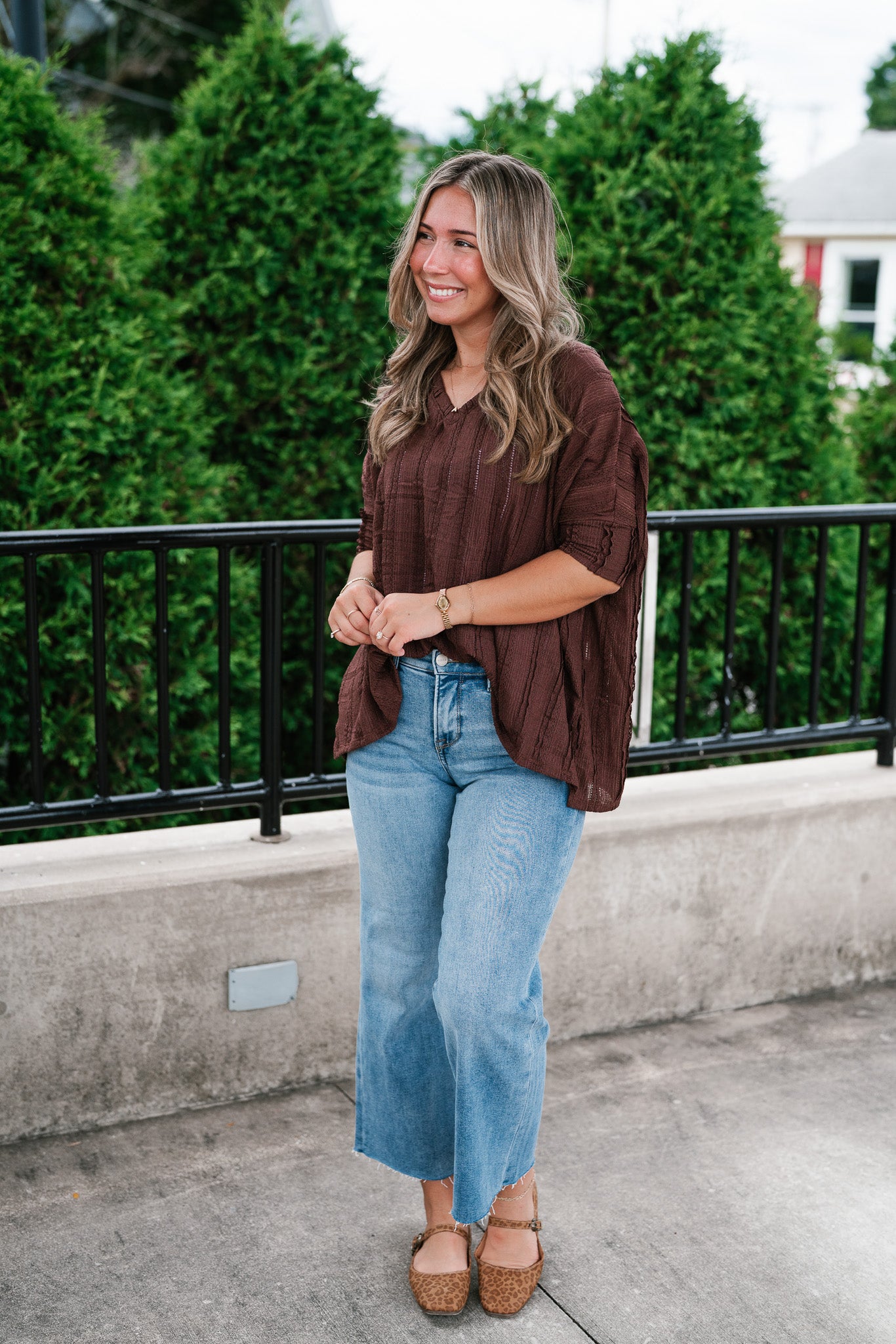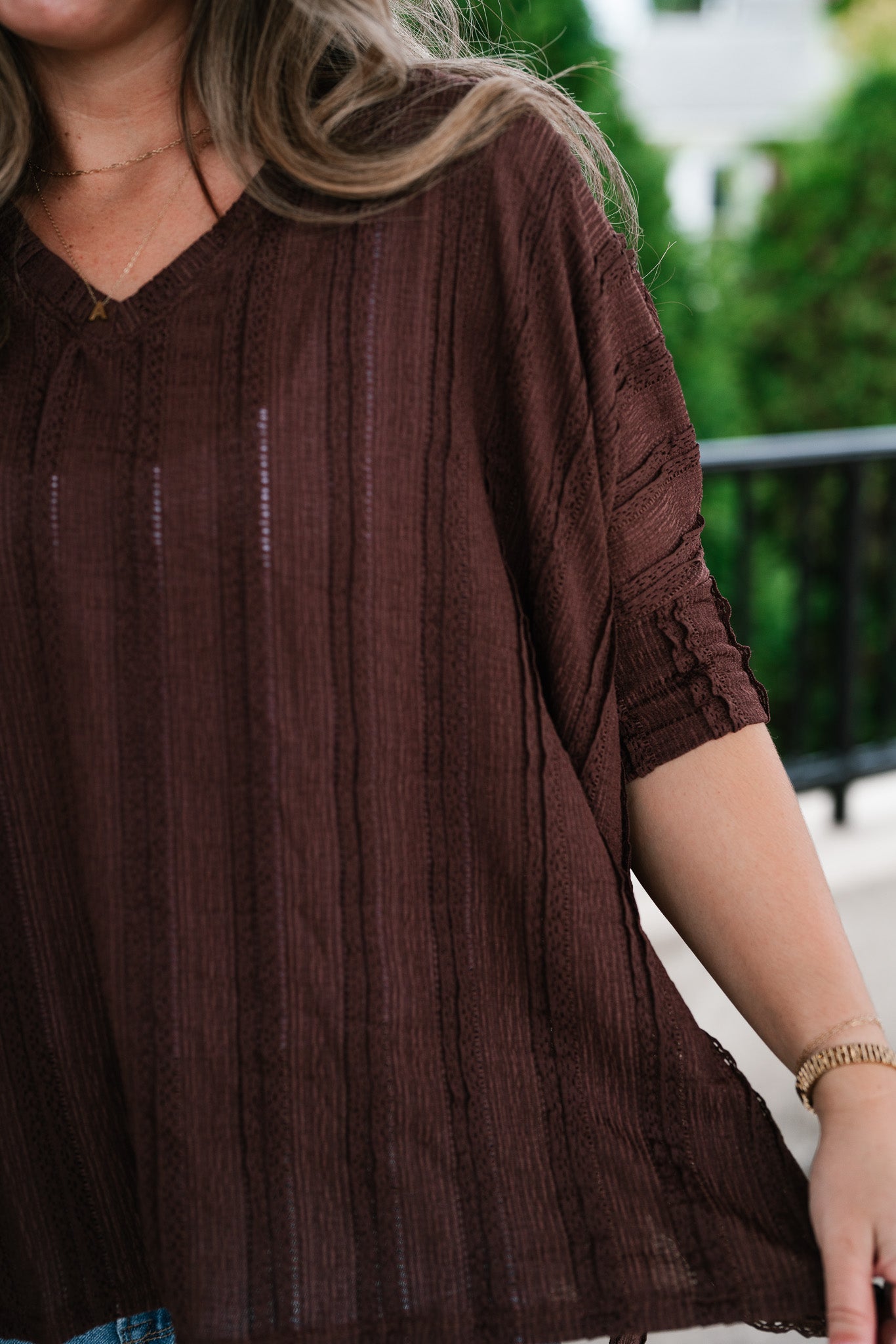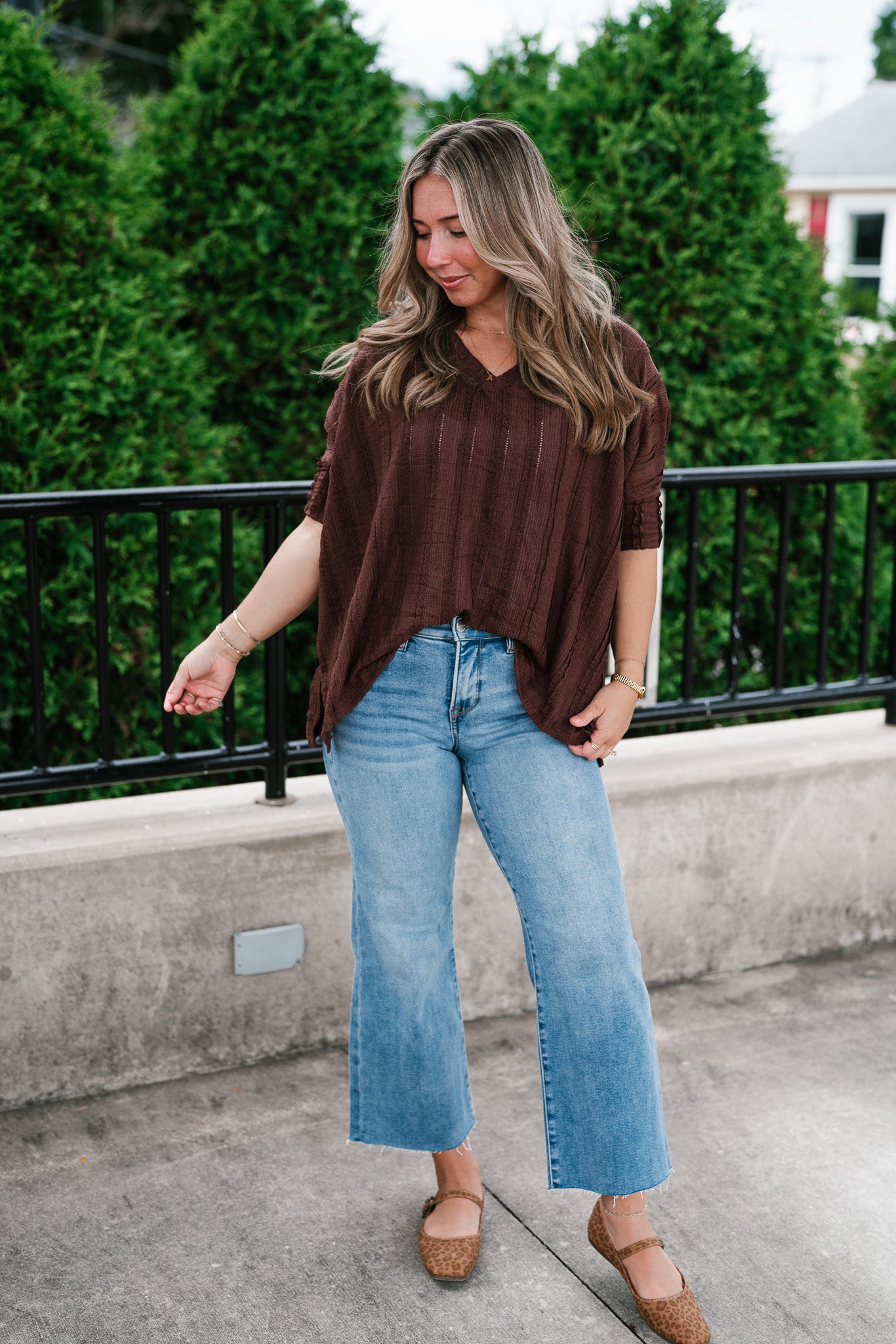 Experience effortless comfort and subtle style with the Willows Textures Relaxed Top. Crafted from a soft, textured fabric, this relaxed-fit top drapes beautifully for a laid-back yet polished look. Featuring a v-neckline and short sleeves, it’s perfect for layering or wearing on its own. The chocolate tone and tactile texture adds depth to your everyday wardrobe, making it easy to pair with jeans, skirts, or tailored pants. Whether you’re lounging at home or stepping out for casual errands, the Willows Top delivers cozy sophistication with a modern edge.